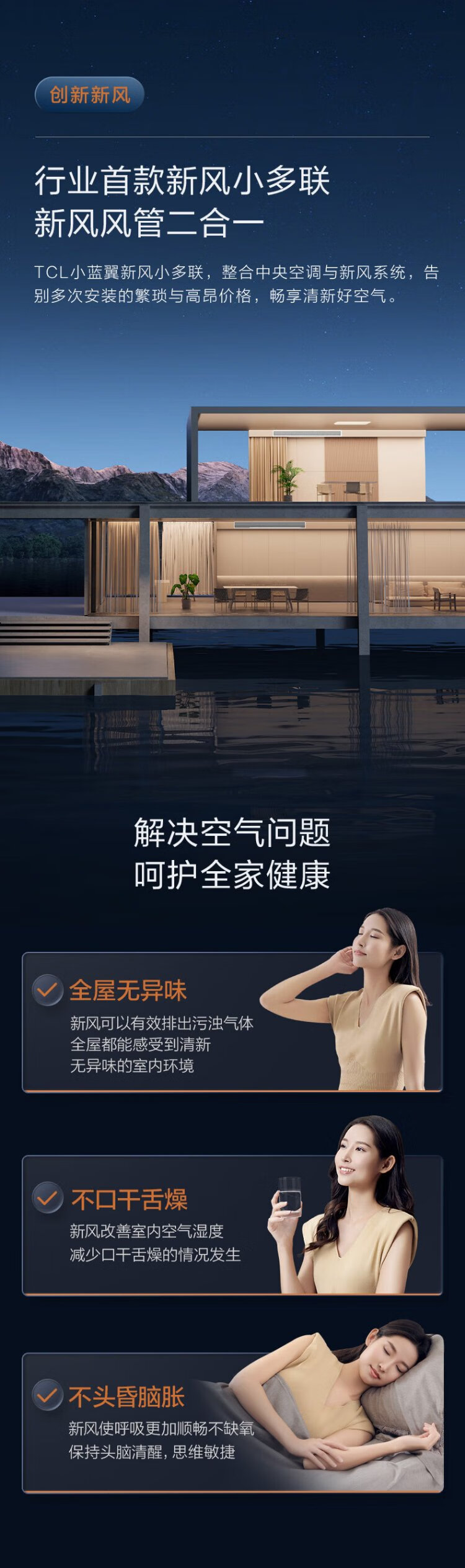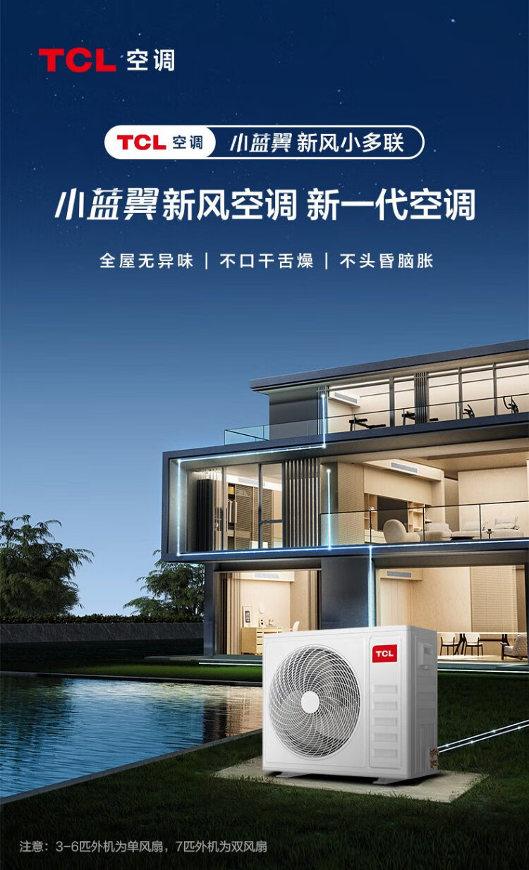 TCL Xiaolanyi fresh air central air conditioner household one to four one to three one to five one to six DC variable frequency heating and cooling multi-split two rooms, three rooms, one living room, three rooms, four rooms and two living rooms 5 HP, one to three, whole house fresh air + air conditioner multi-split