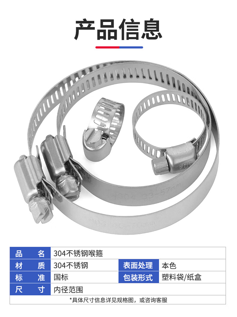 Jinggong (JINGGONG) 304 stainless steel pipe clamp hose hoop water pipe hoop fixed tight hoop buckle cable hose fixed adjustable 27-51mm (inner diameter) 5 pieces for 1.2 inch pipe
