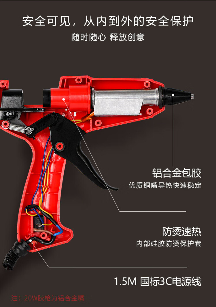Delixi Electric hot melt glue gun household hot melt glue gun professional grade high power 100W adjustable temperature 140~220