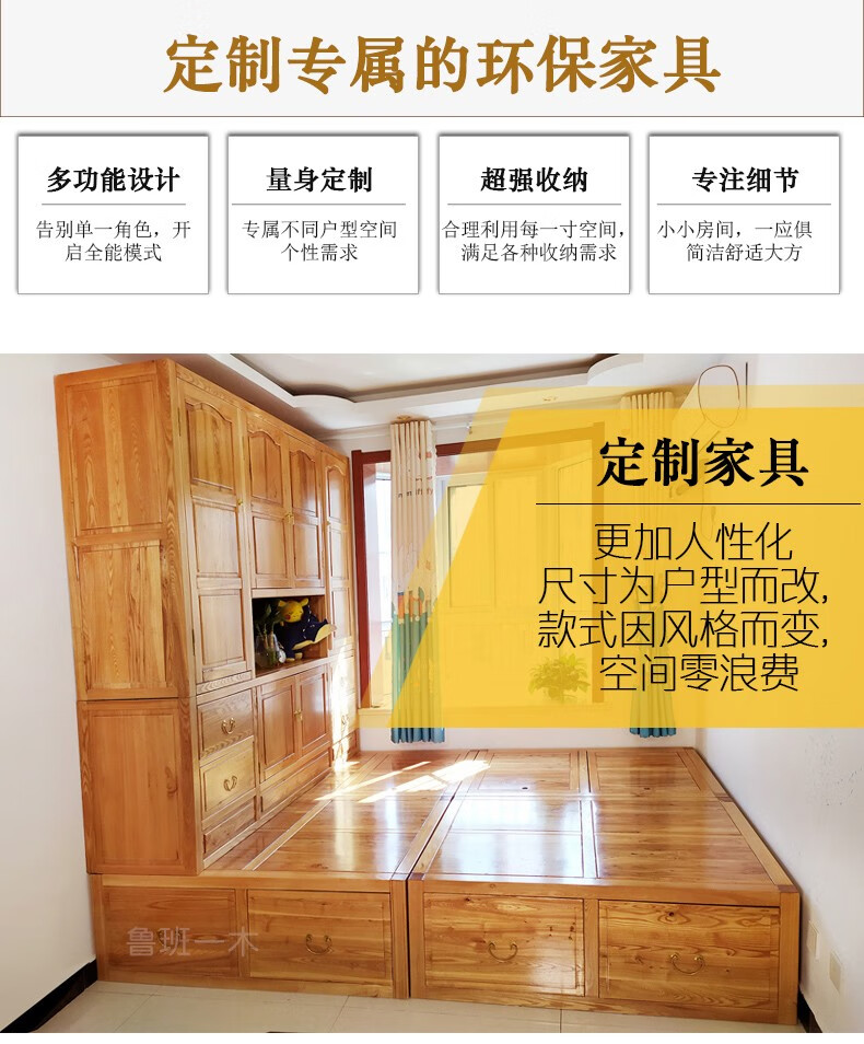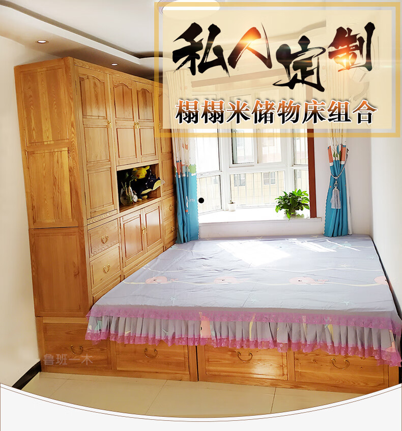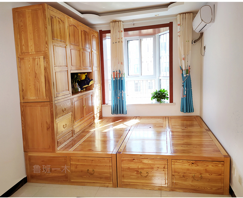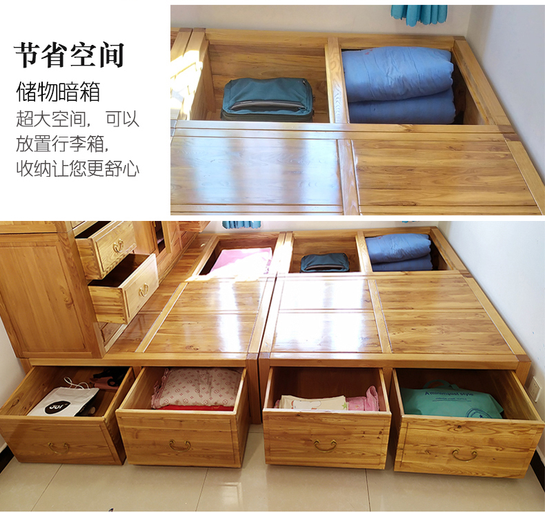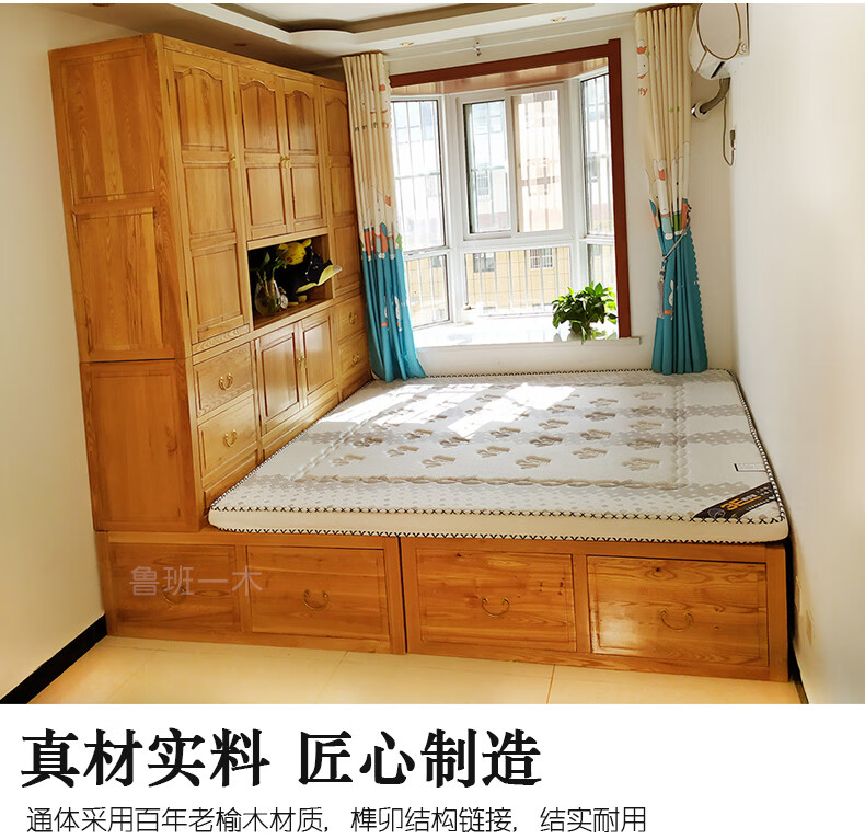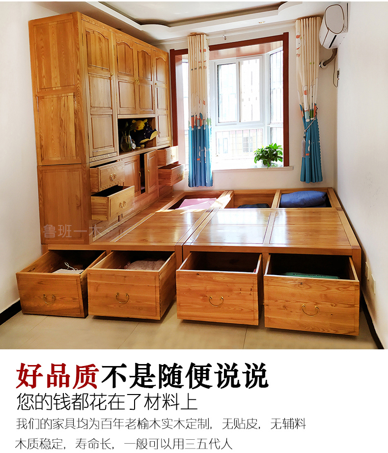 Luban Yimu Tatami Bed Elm All Solid Wood Tatami Customized Box Bed Wardrobe Box Bed Customized Bedroom Furniture High Box Bed/Per Square