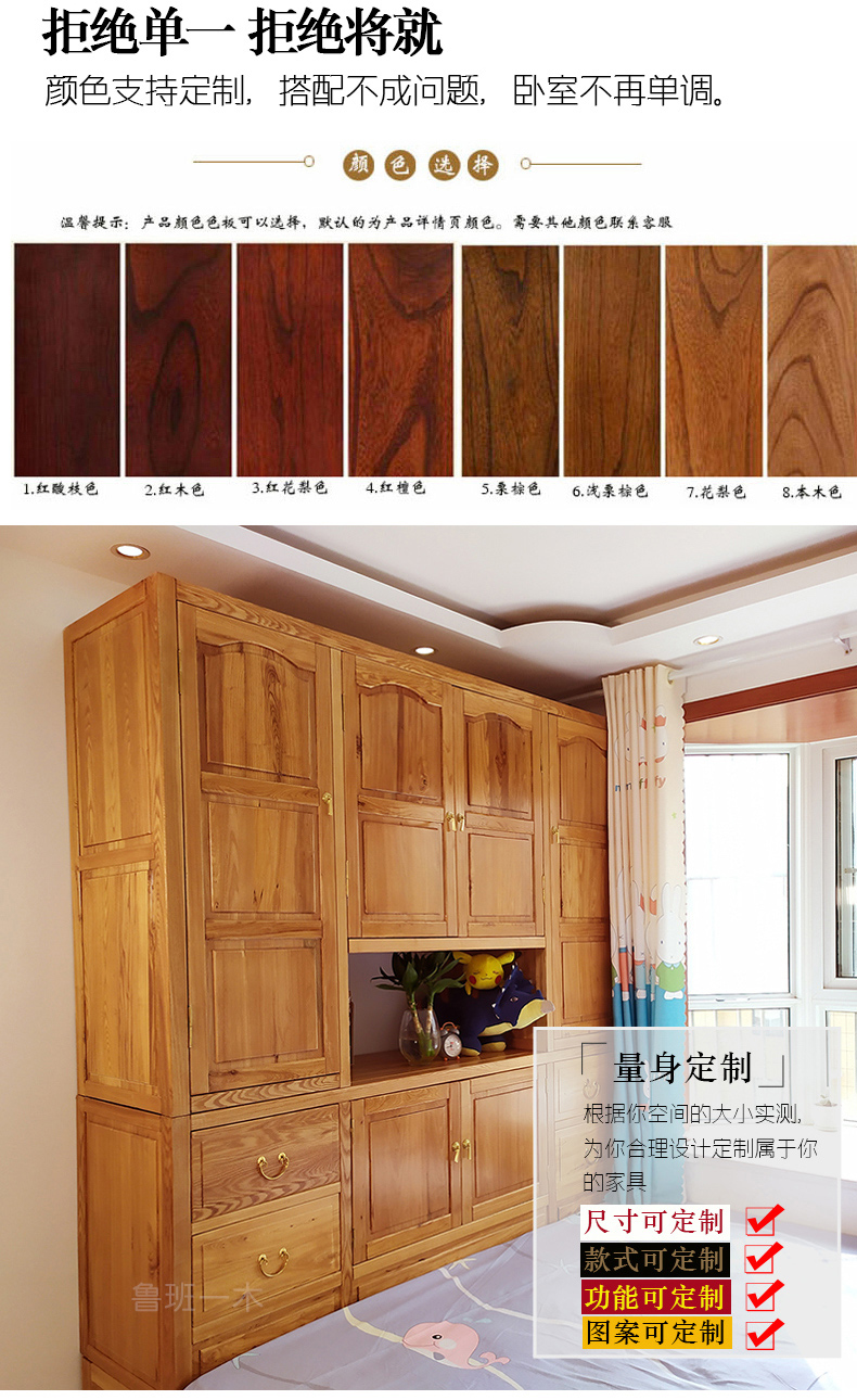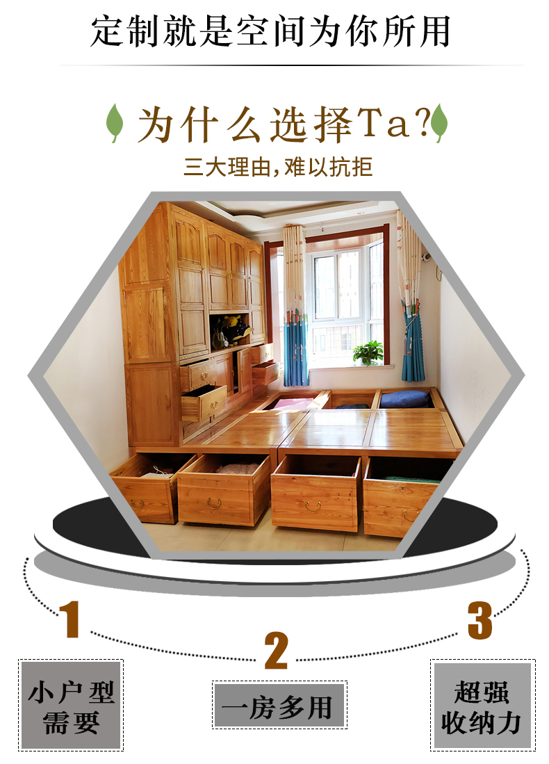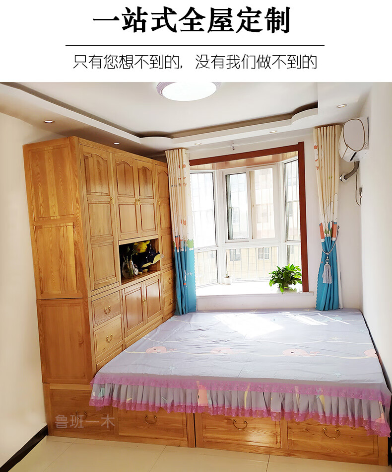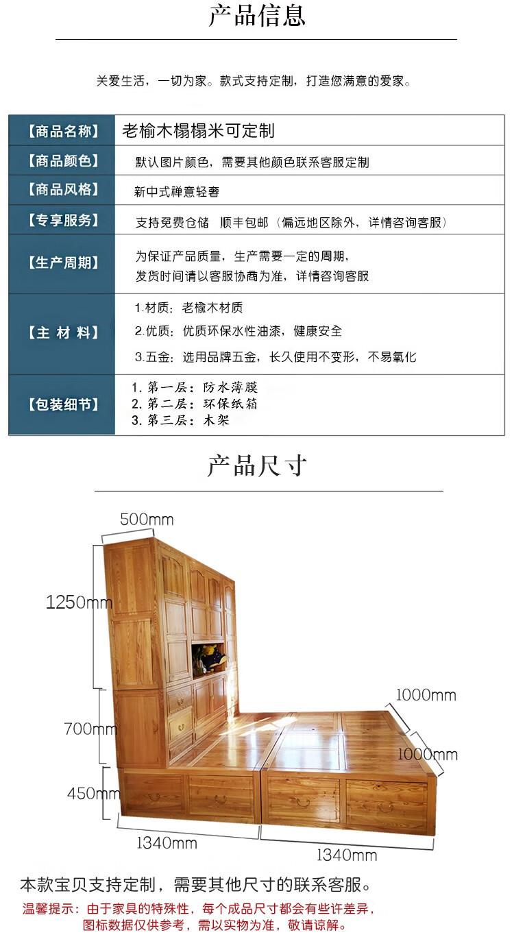Luban Yimu Tatami Bed Elm All Solid Wood Tatami Customized Box Bed Wardrobe Box Bed Customized Bedroom Furniture High Box Bed/Per Square