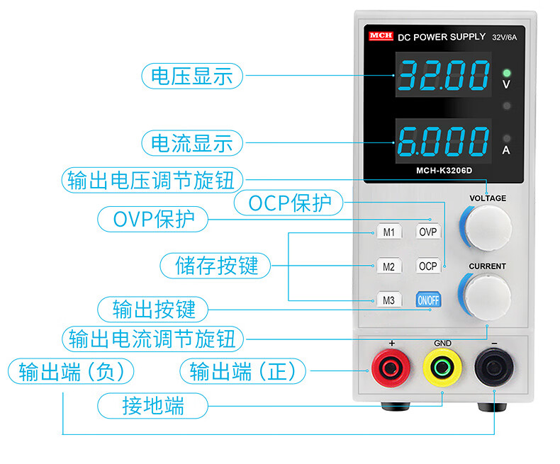 MCH adjustable power supply Meichuang MCH DC regulated power supply notebook mobile phone DC power supply switch linear power supply switch K3205D 32V5A