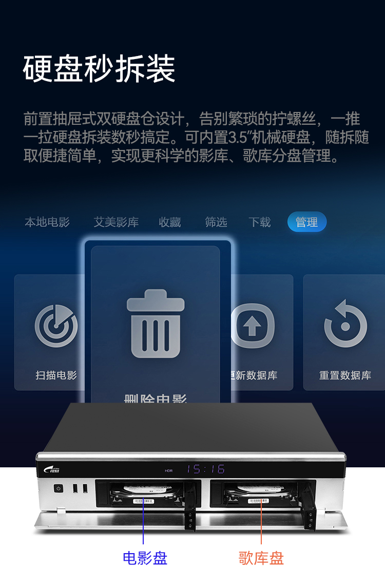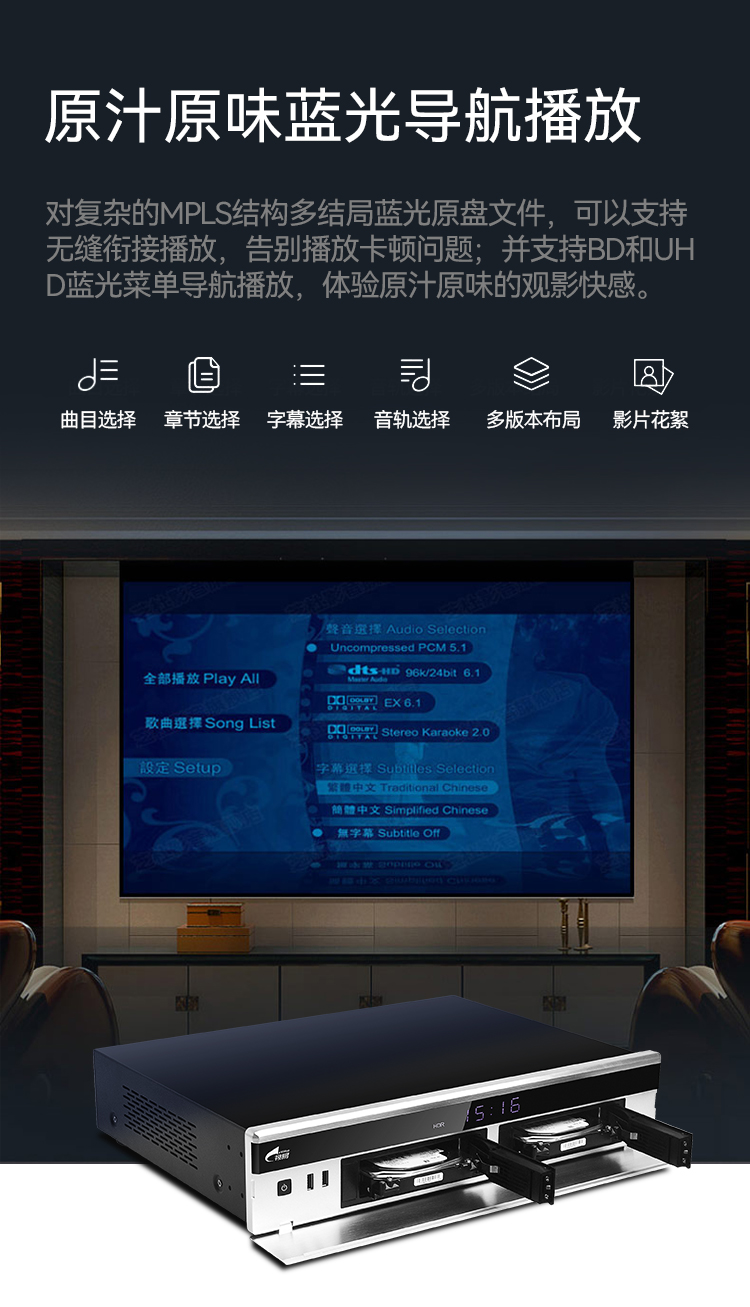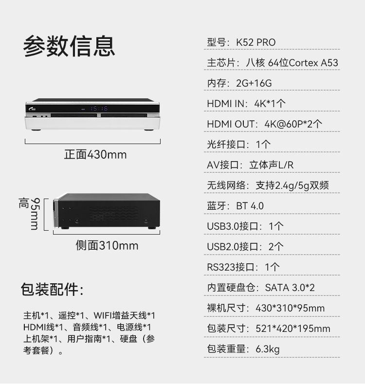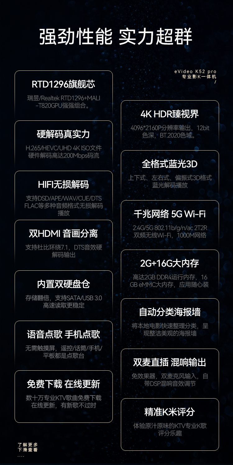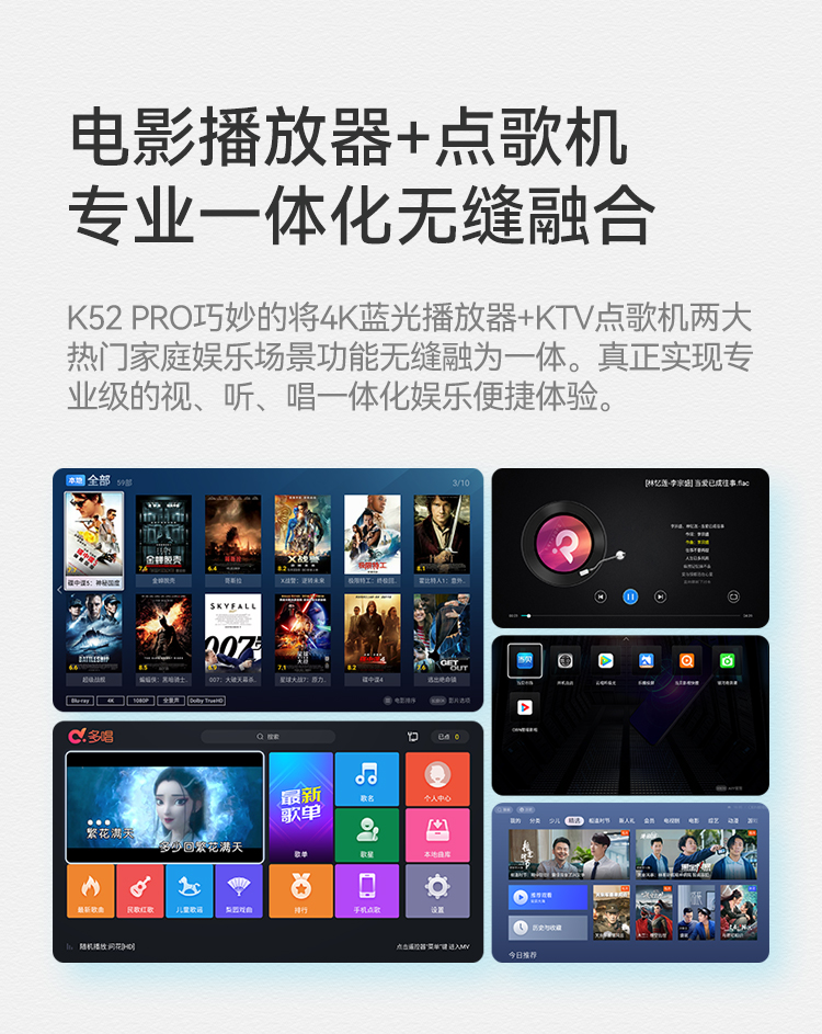 Shiyi K52 Pro hard disk player 4k Blu-ray original ISO home 5.1 channel high-definition player home KTV karaoke network home movie K all-in-one karaoke machine 2T hard drive (full of karaoke songs or 4K movies)