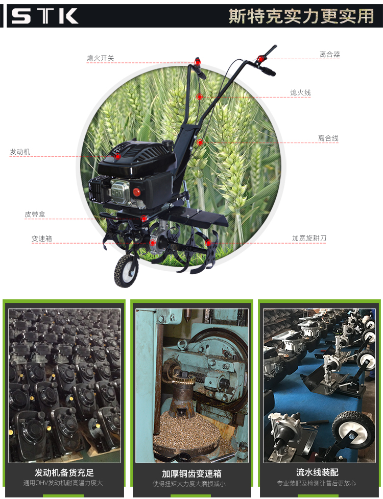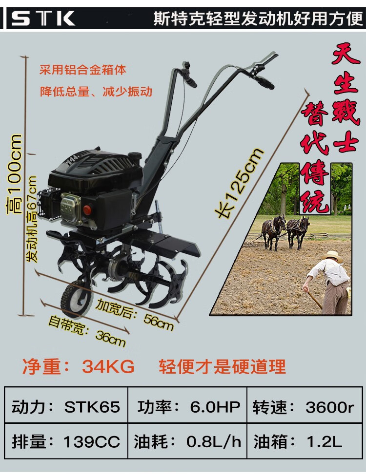 Sterk rotary tillage loose soil plowing multi-functional micro-tillage small agricultural hand-held weeding rake trenching gasoline plowing machine