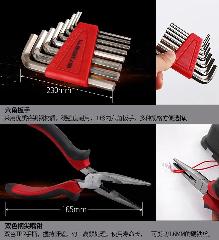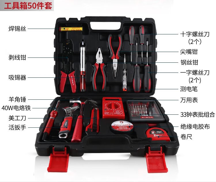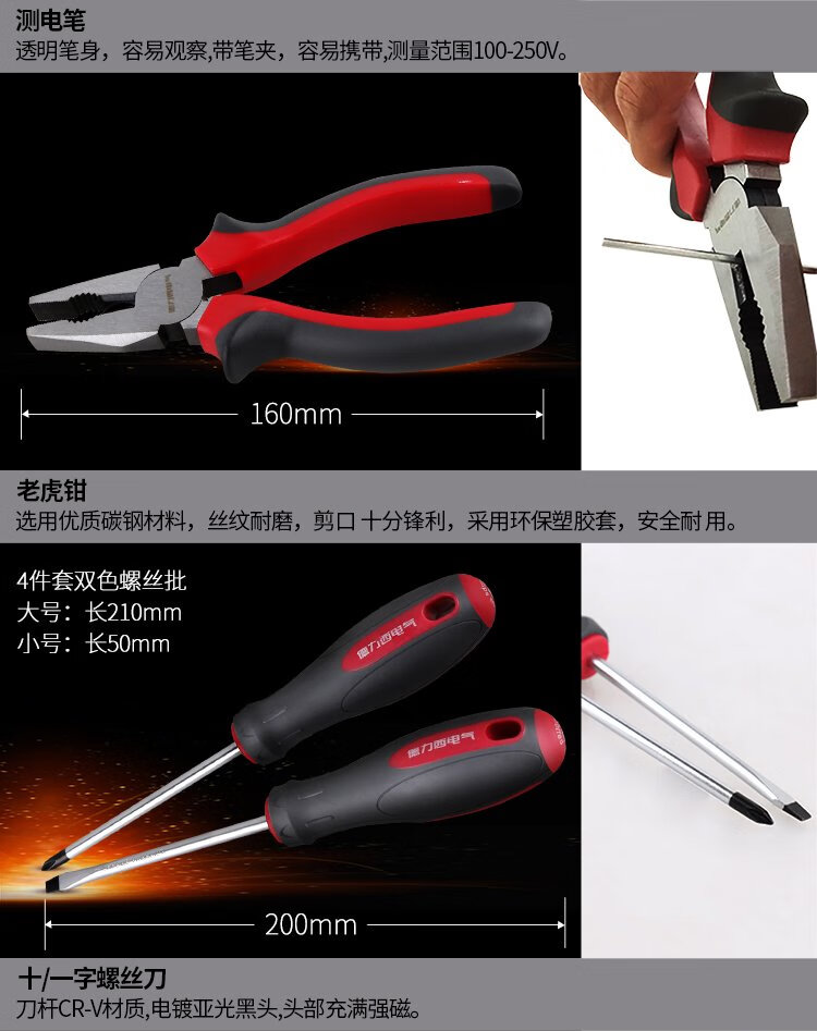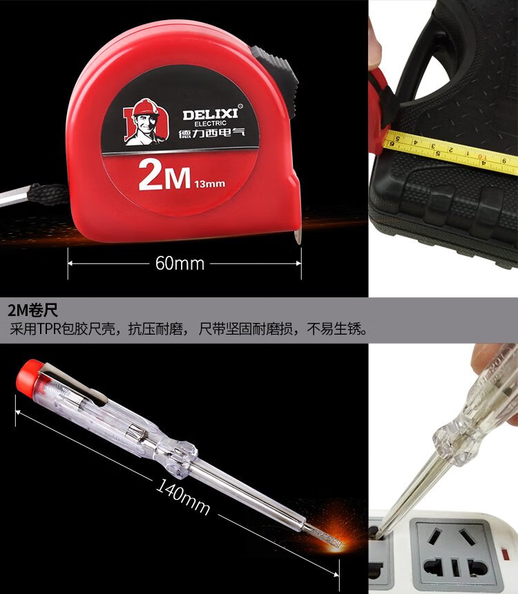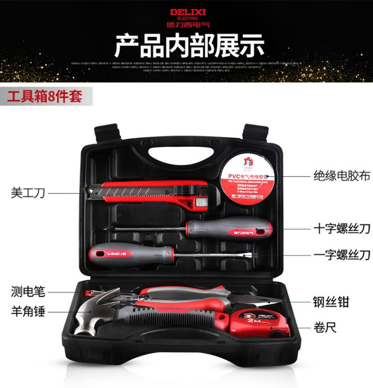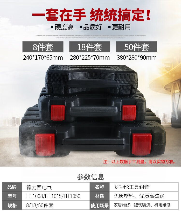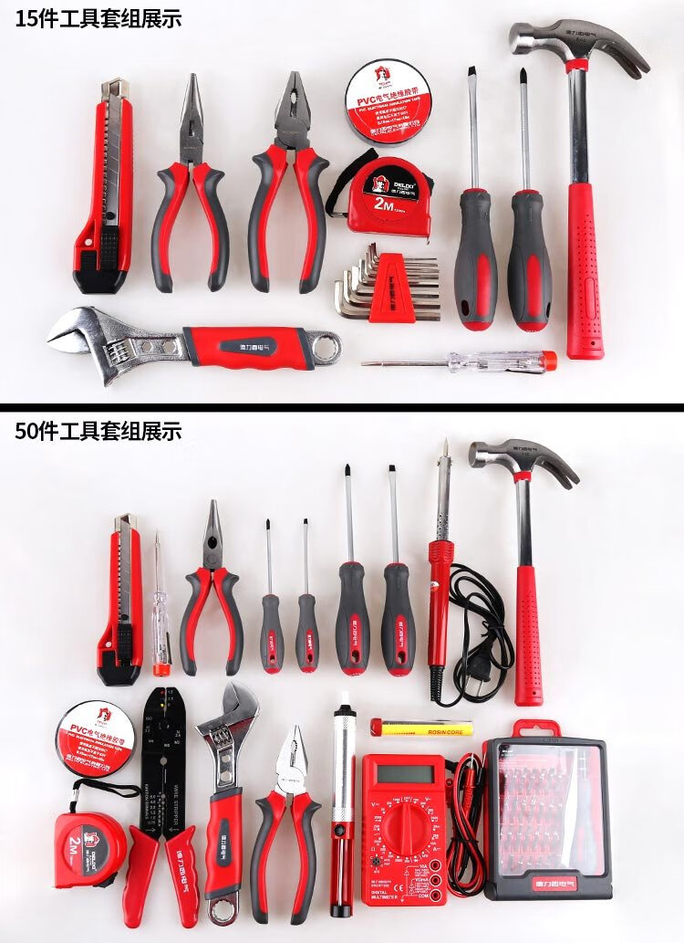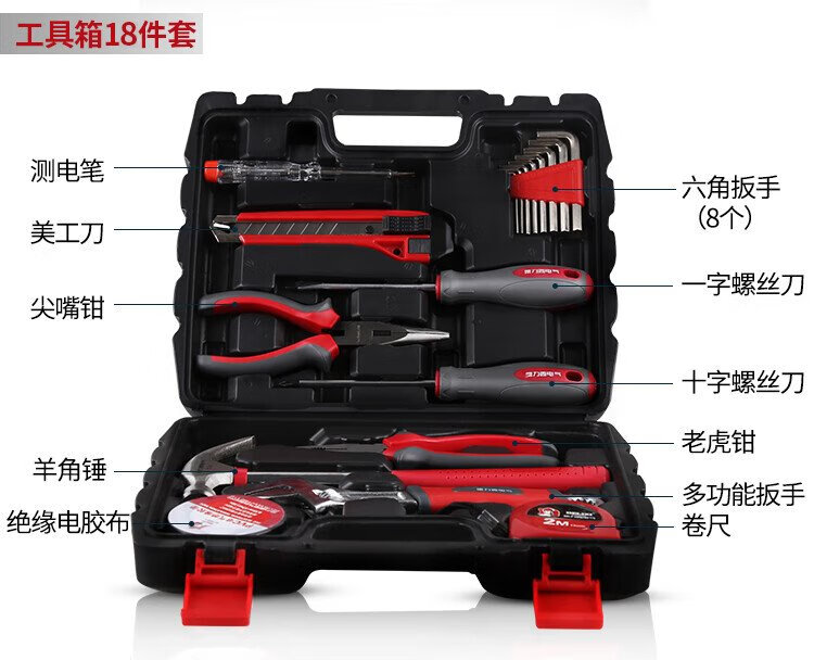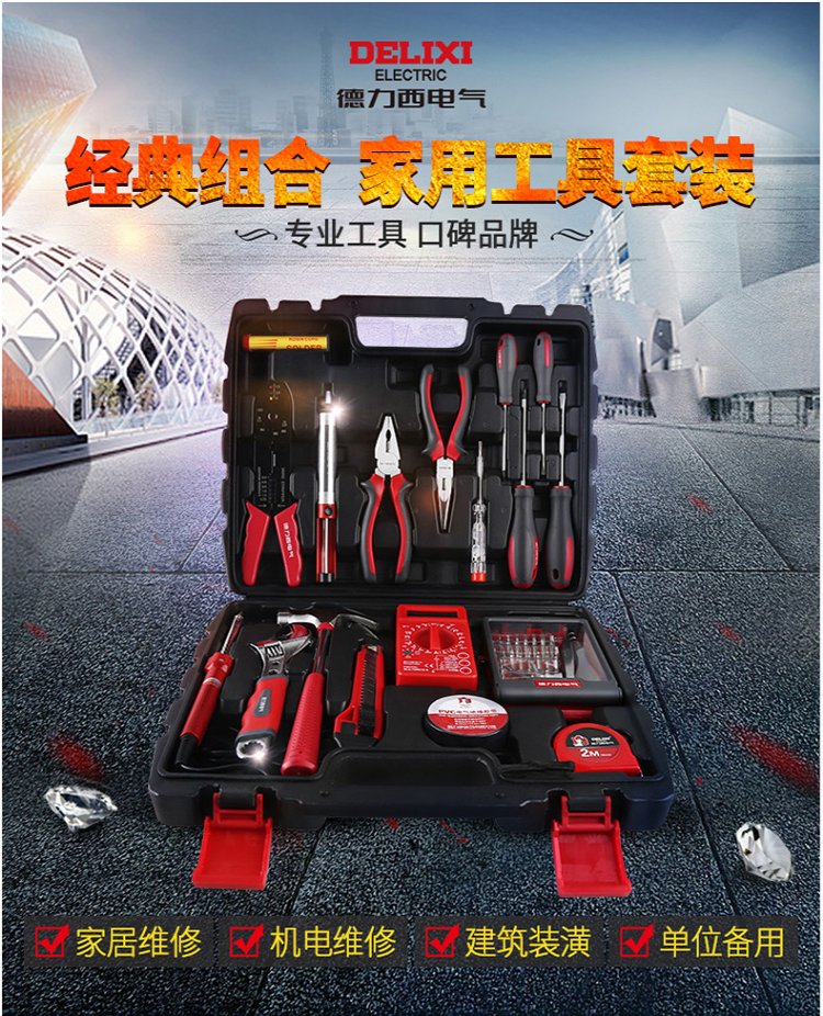 Delixi Electric 18-piece household tool set, electrician and woodworking multi-function repair tool set, machine repair tool box