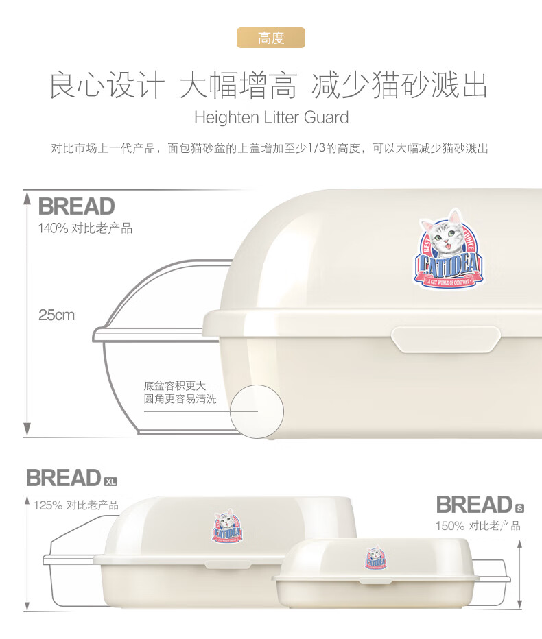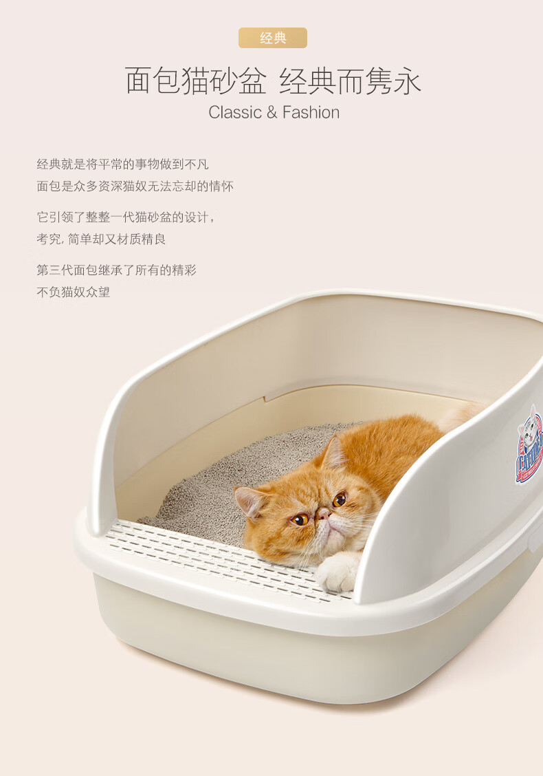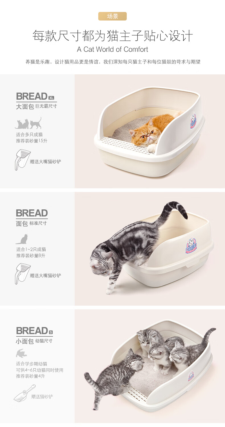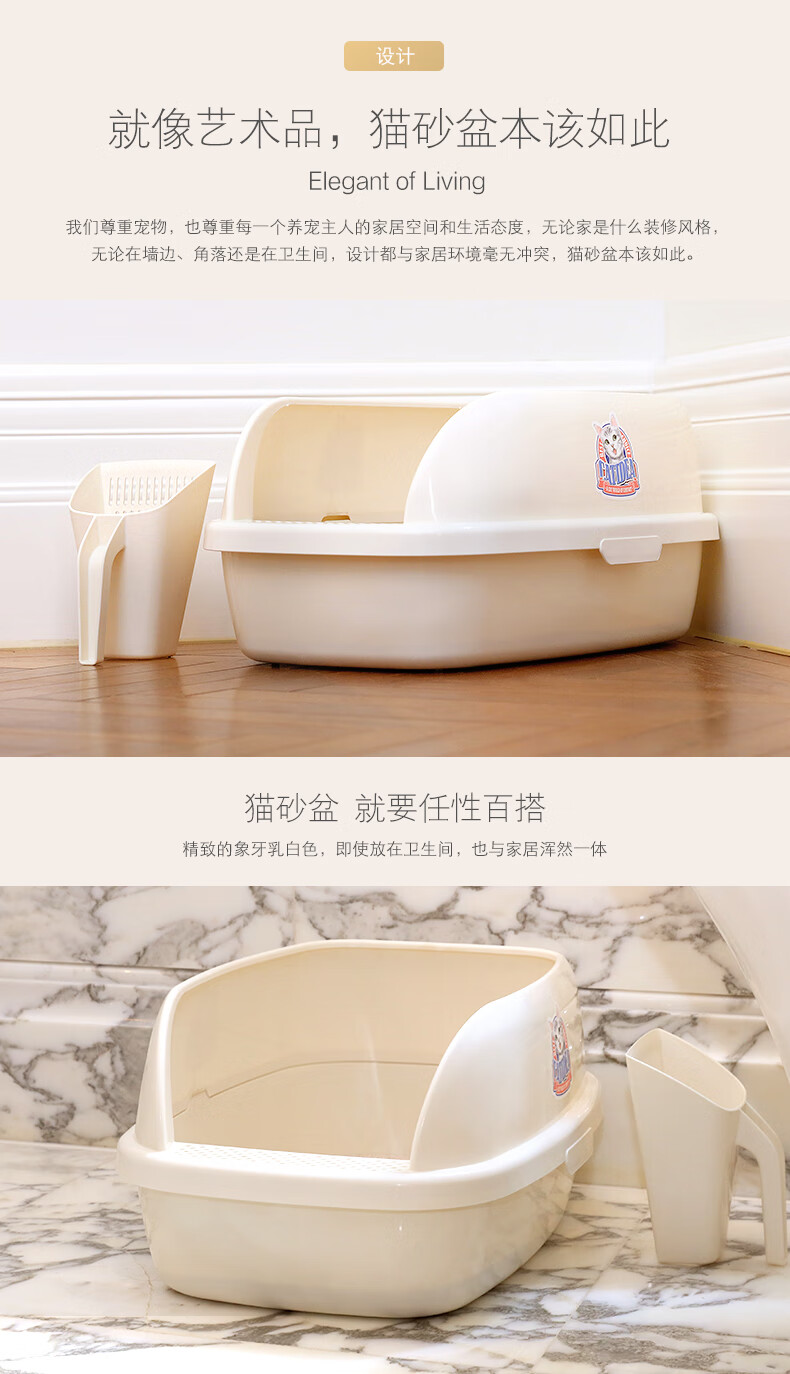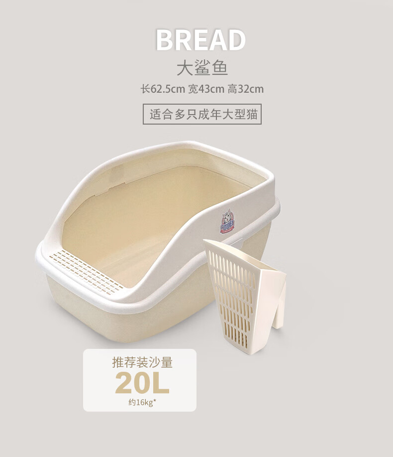 Catlux semi-closed litter box, splash-proof, odor-proof, easy to clean, large-capacity cat toilet, universal open litter box for adult and young cats, white large loaf 15L + shovel