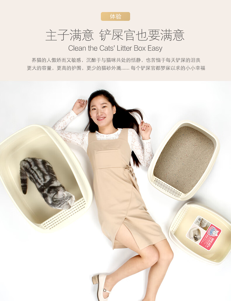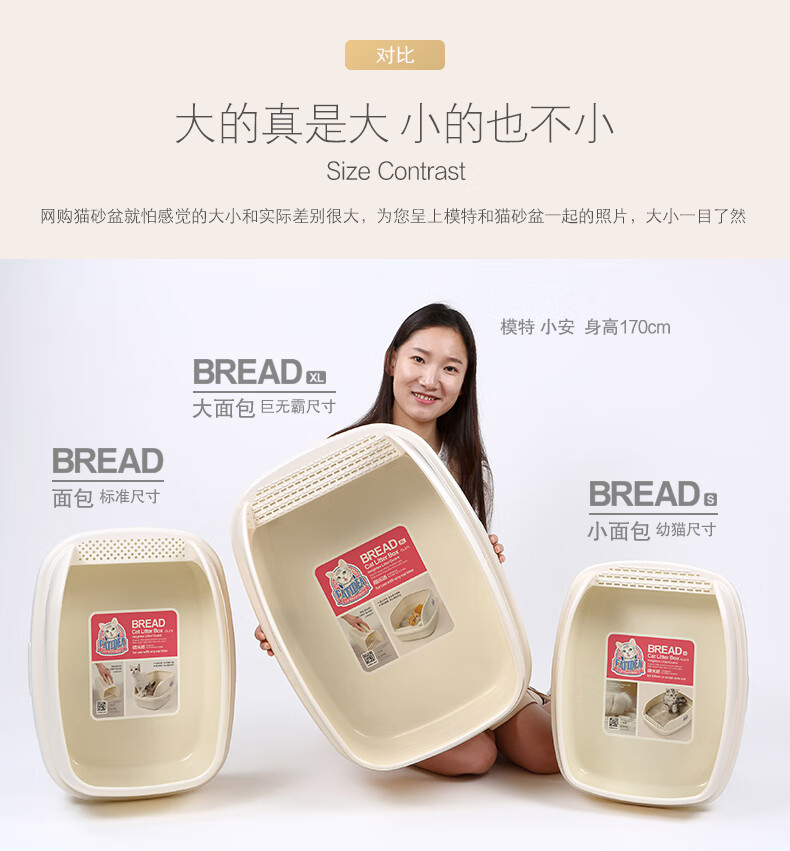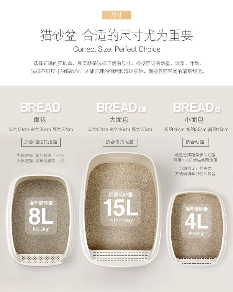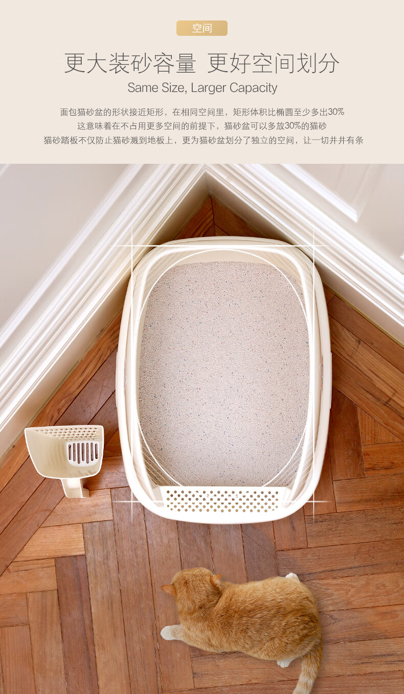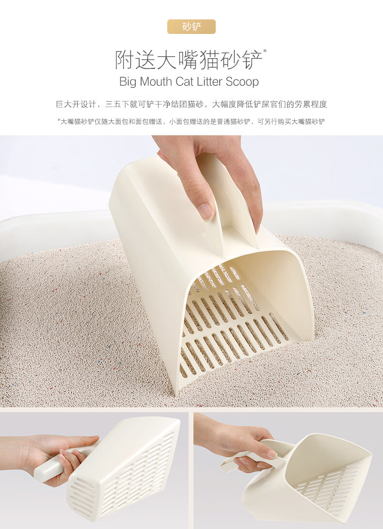 Catlux semi-closed litter box, splash-proof, odor-proof, easy to clean, large-capacity cat toilet, universal open litter box for adult and young cats, white large loaf 15L + shovel