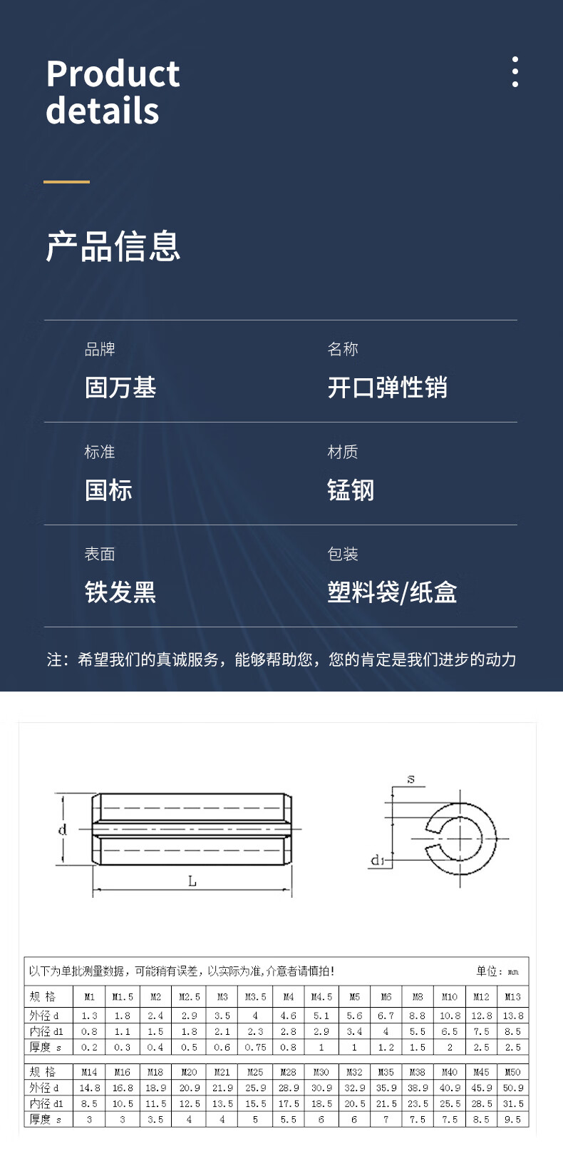GUWANJI iron black elastic pin split pin spring pin positioning pin cylindrical pin hollow pin pin shaft pin M5*40 (50 pieces)