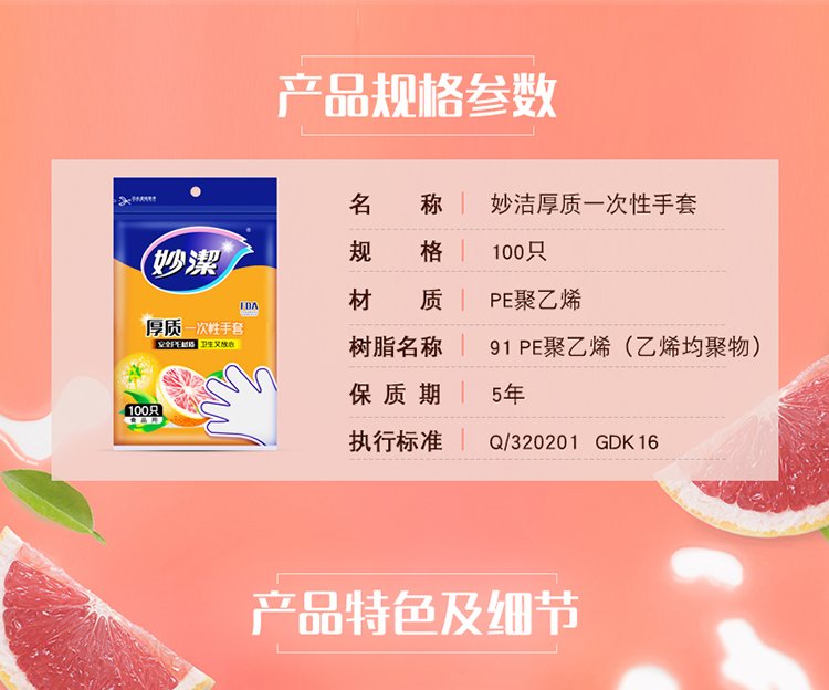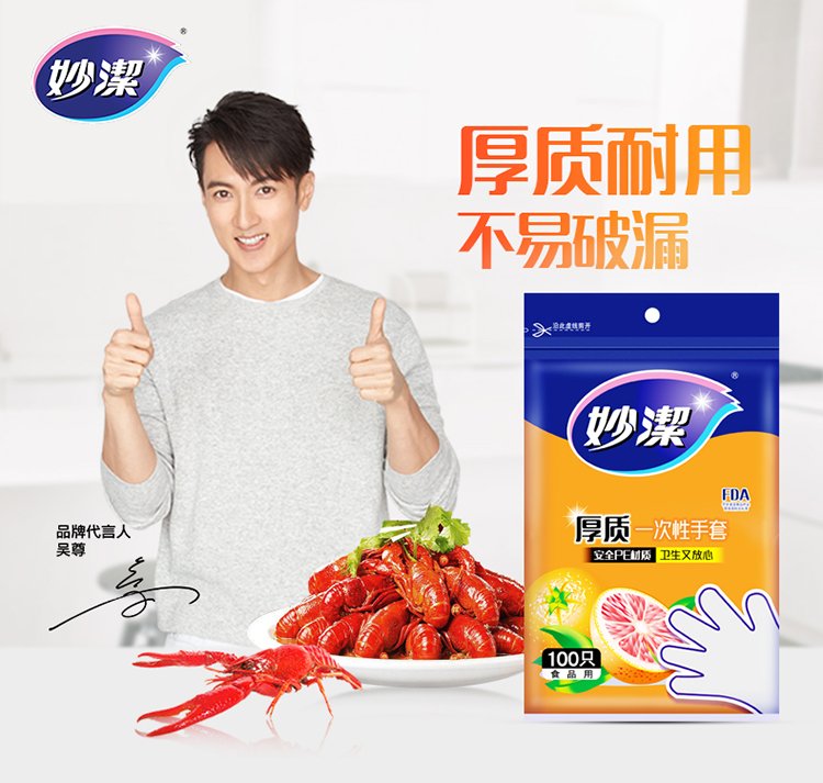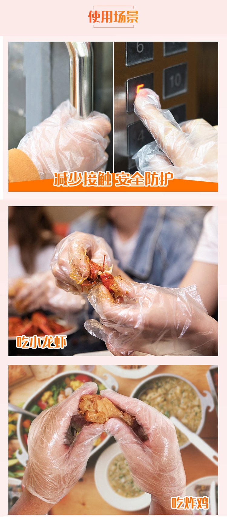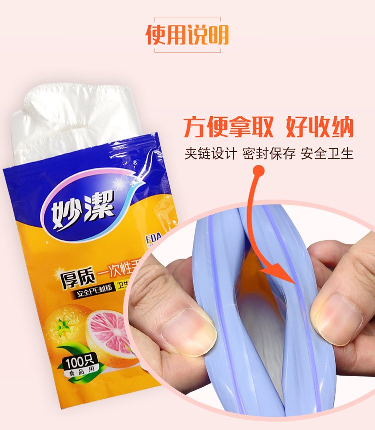 Miaojie disposable gloves food grade PE thickened plastic kitchen table picnic 100 pieces