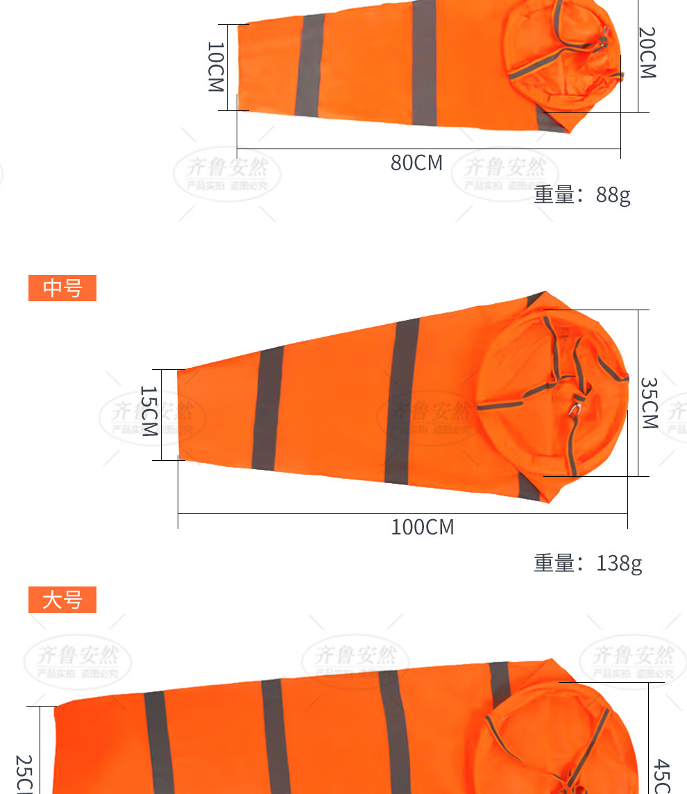 Qilu Anran Meteorological Wind Sock Reflective Wind Vane Thickened Oxford Cloth Chemical Factory Enterprise Wind Direction Detection Medium Size 100cm