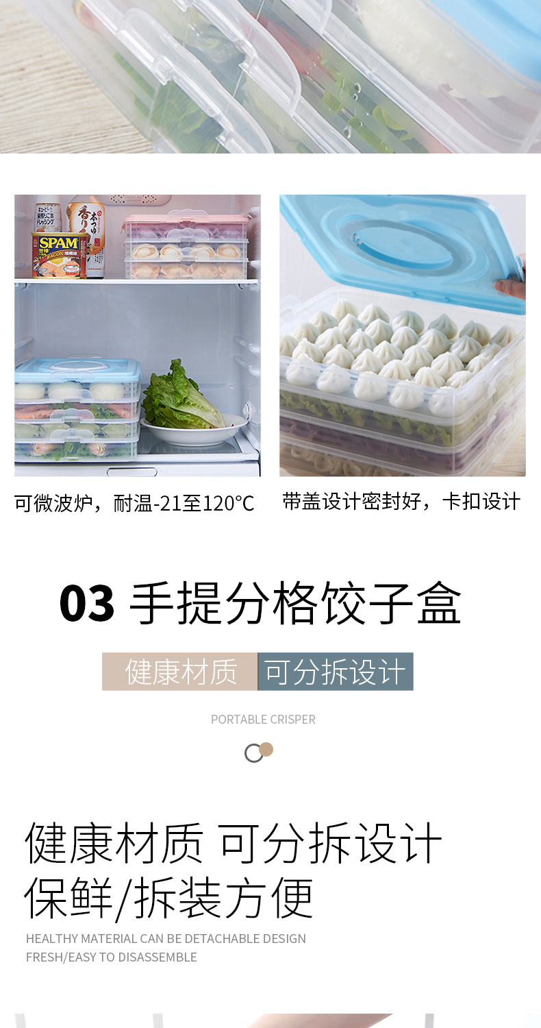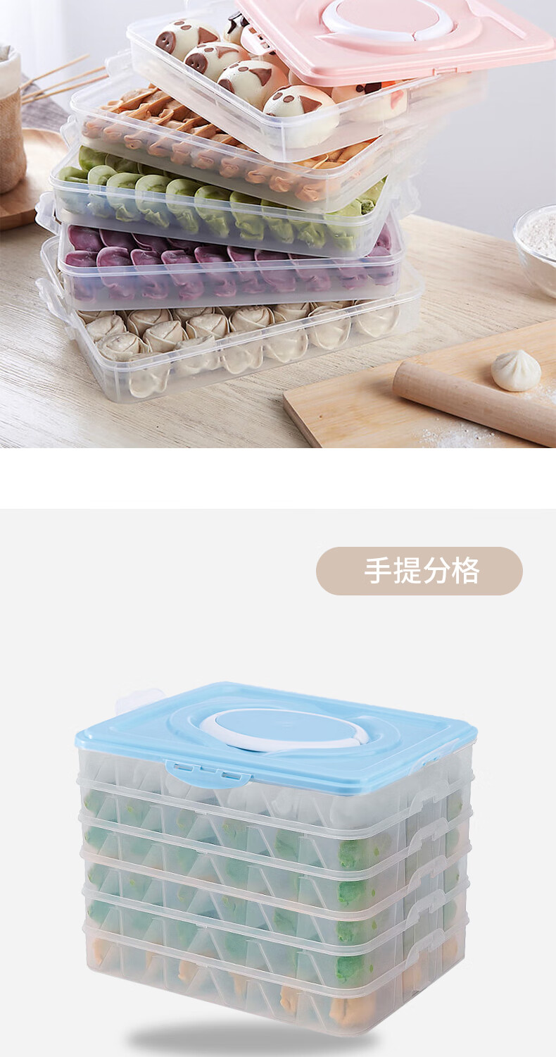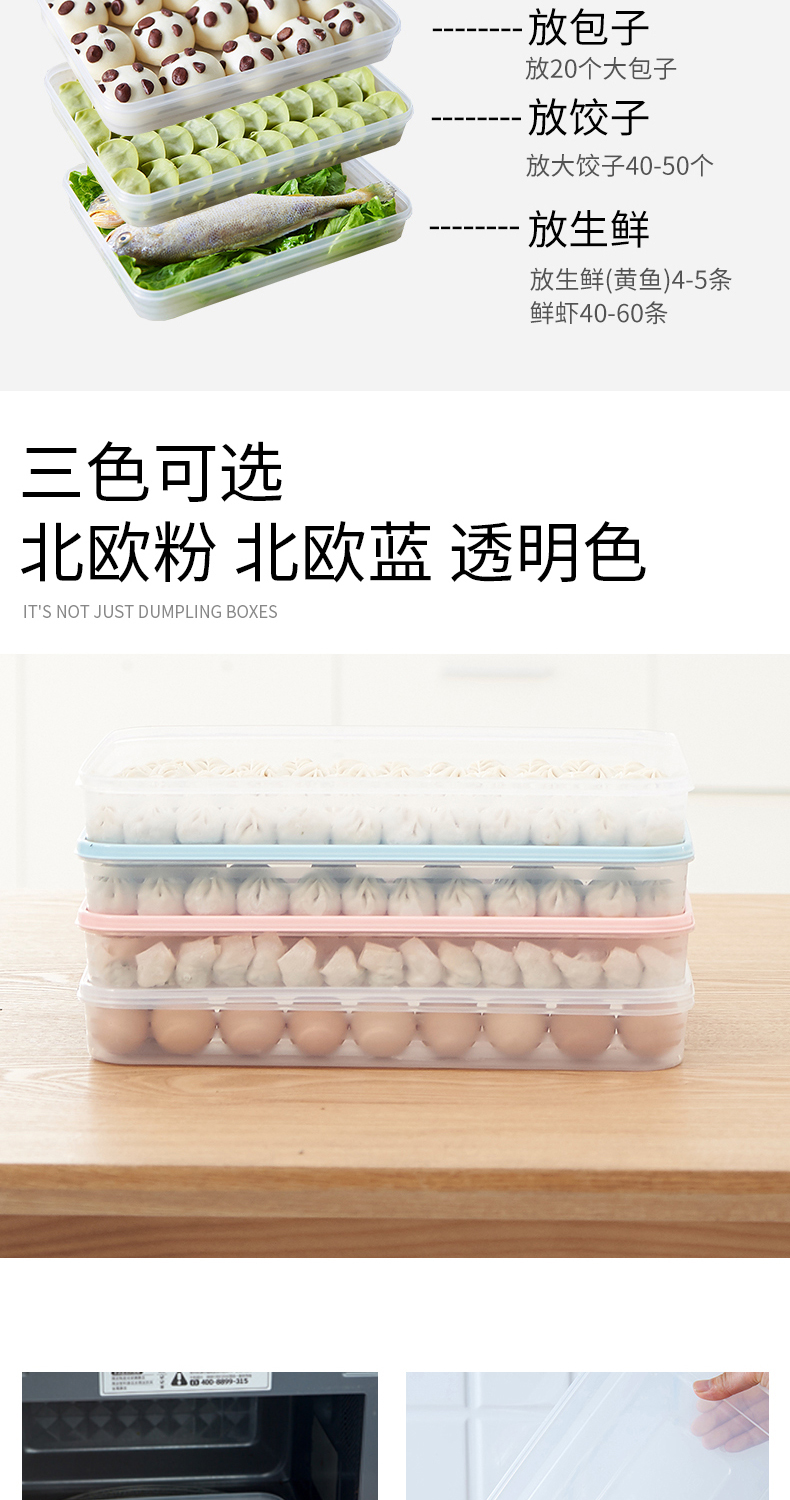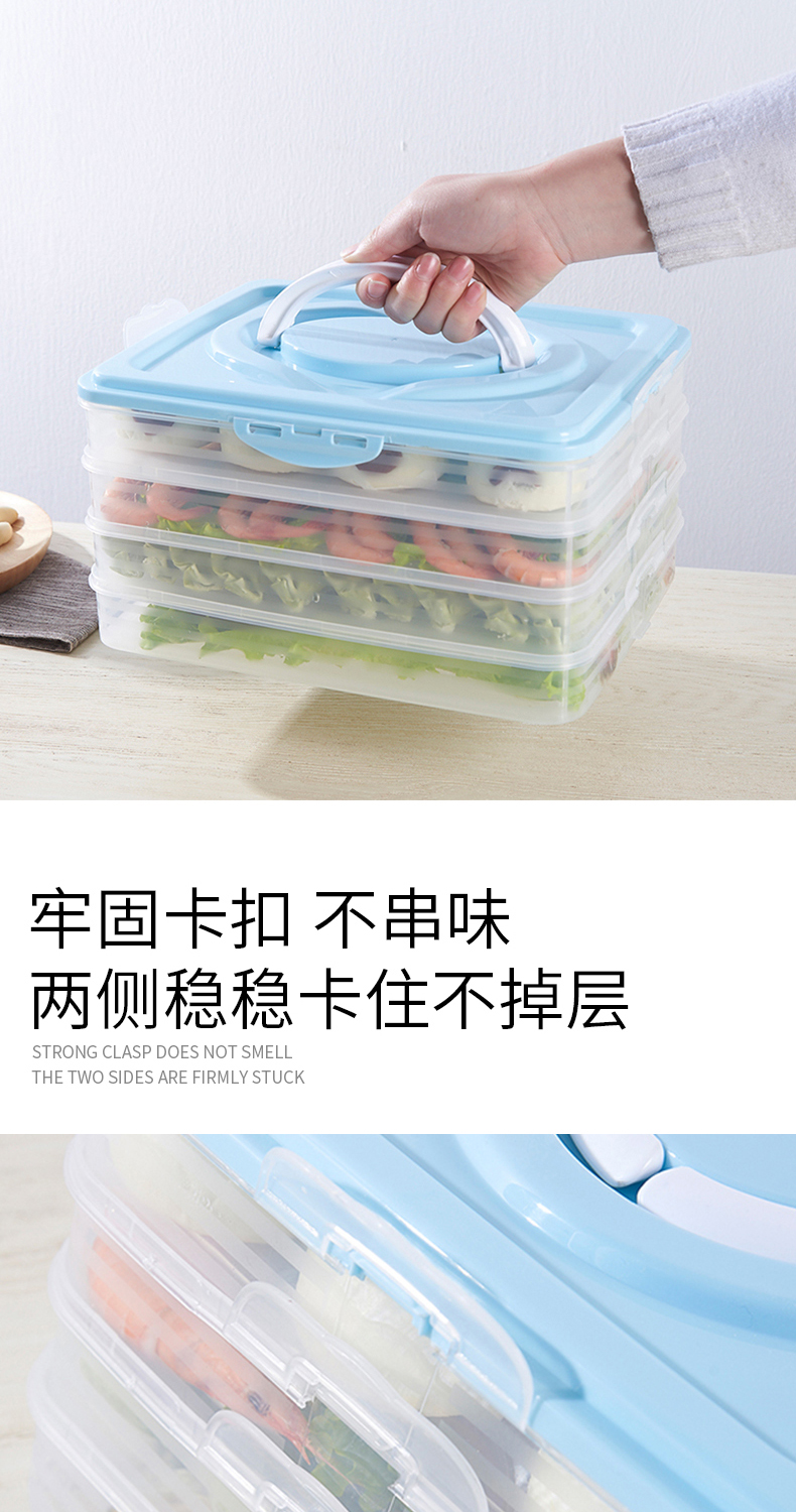 Dumpling box kitchen refrigerator crisper multi-layer quick-frozen dumpling storage box household tray egg box dumpling box Nordic blue large size 3 boxes 3 lids