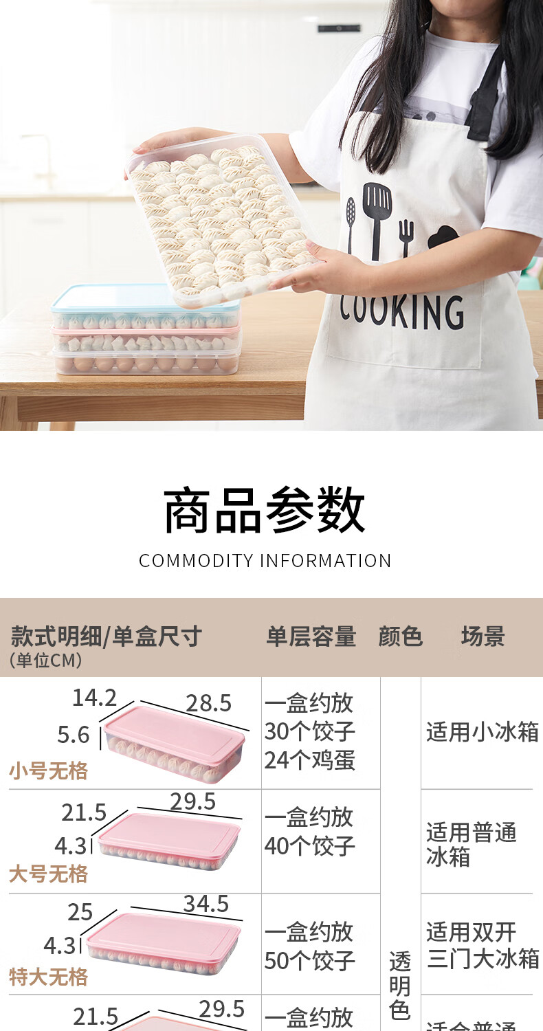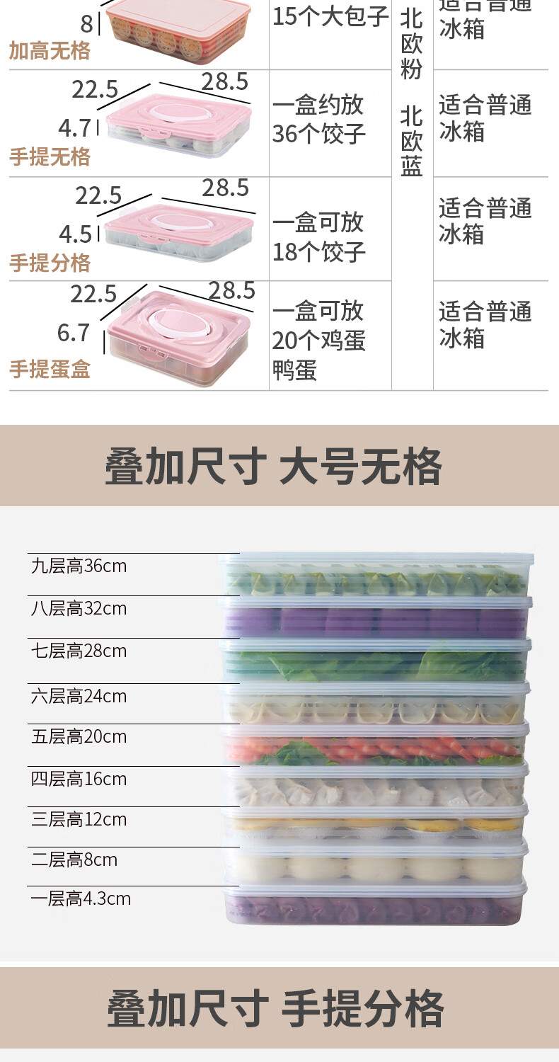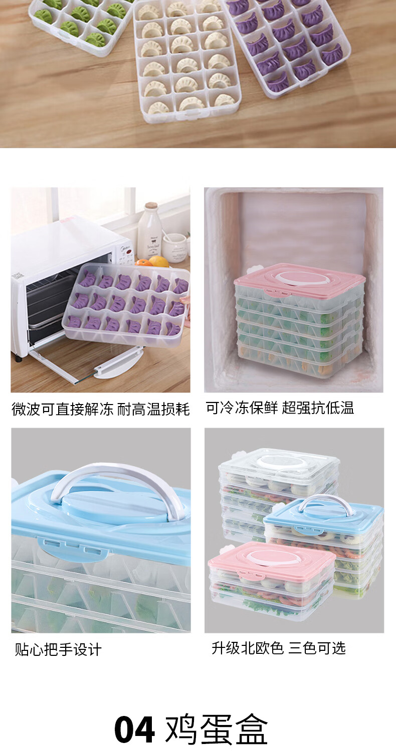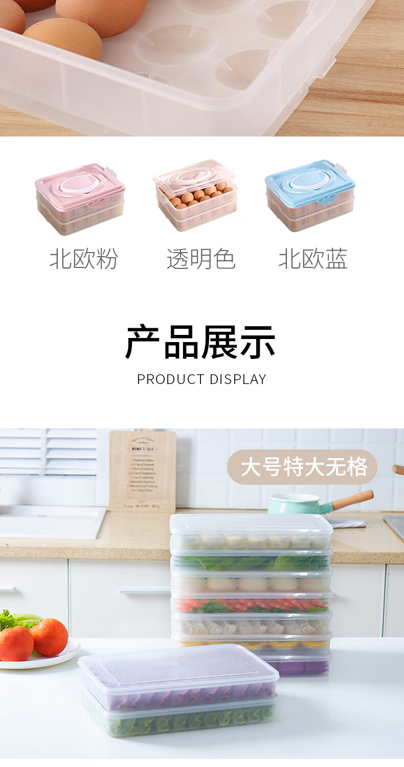 Dumpling box kitchen refrigerator crisper multi-layer quick-frozen dumpling storage box household tray egg box dumpling box Nordic blue large size 3 boxes 3 lids