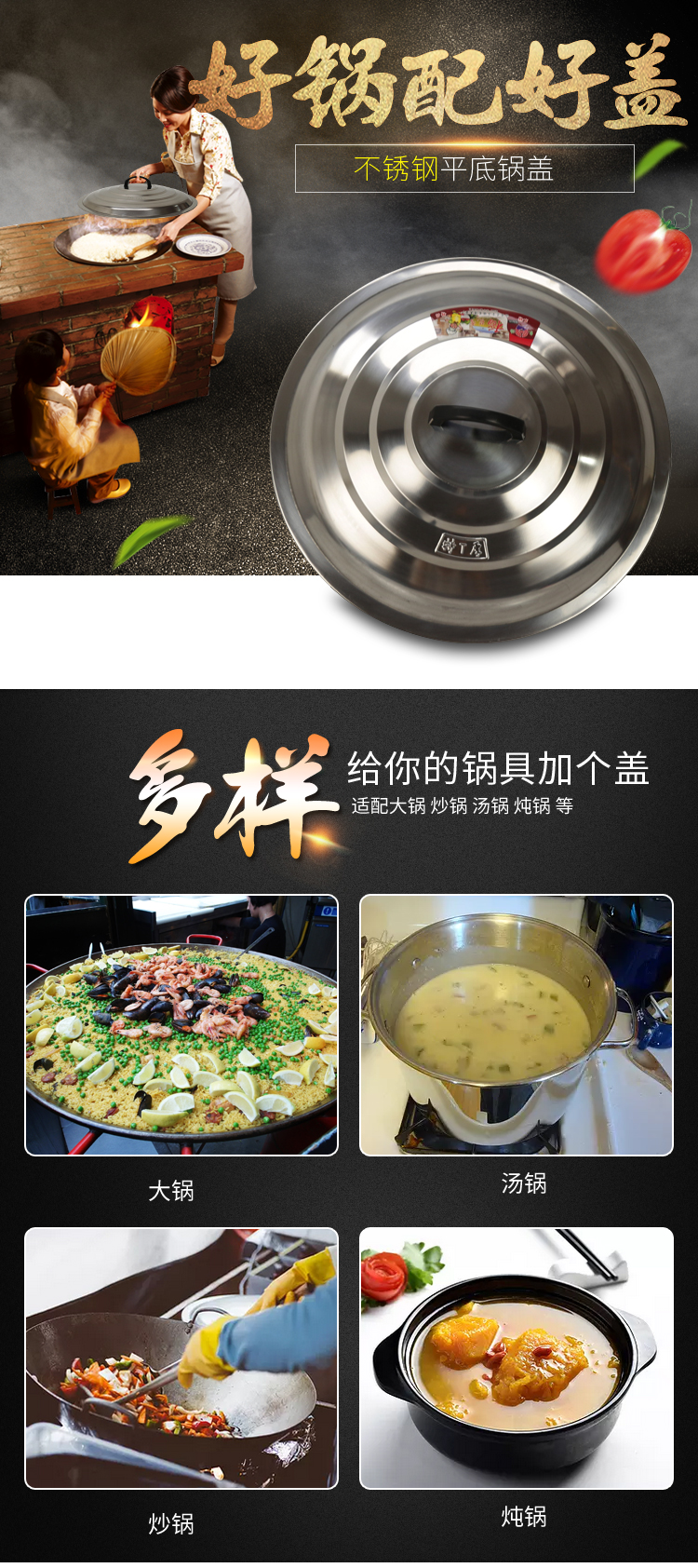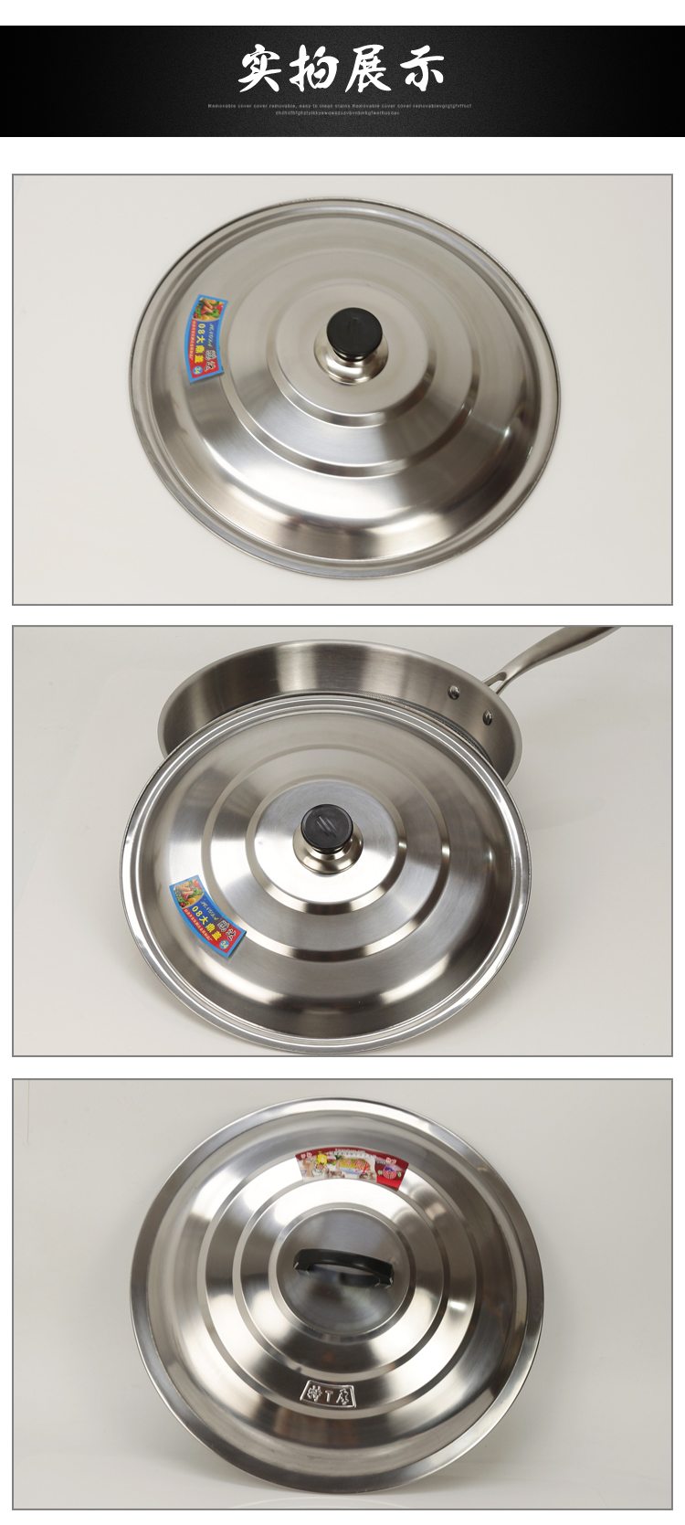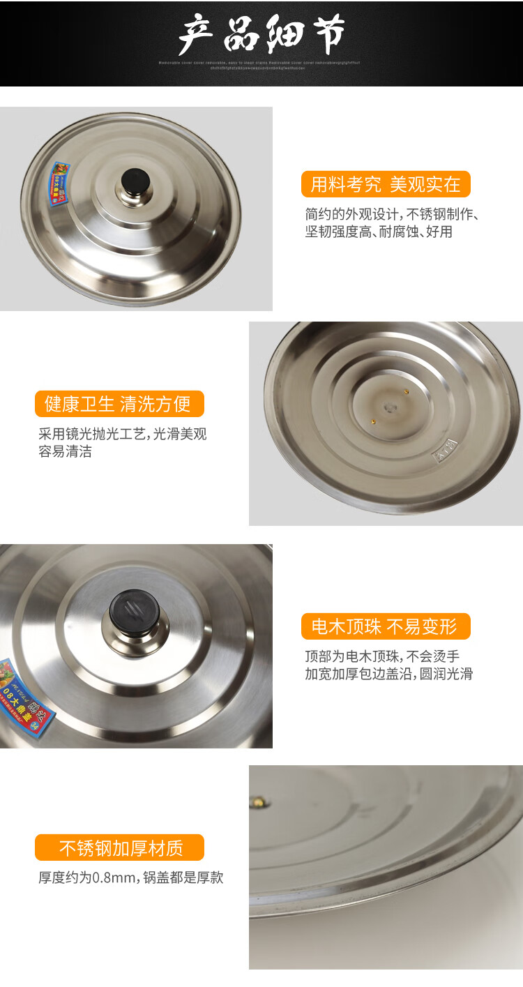 ULKNN pot lid stainless steel iron wok lid frying pan large pot lid pot lid handle thickened steamer pot lid household extra thick 50cm