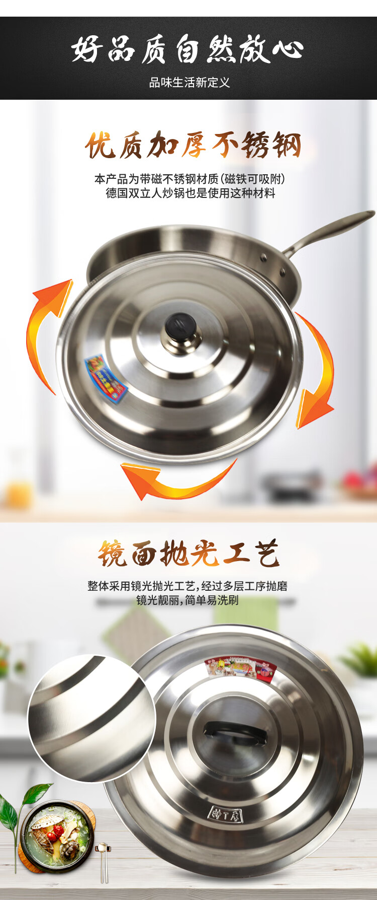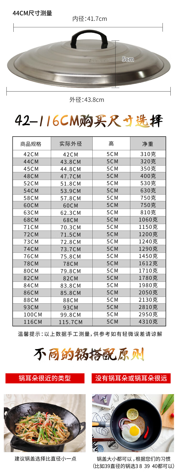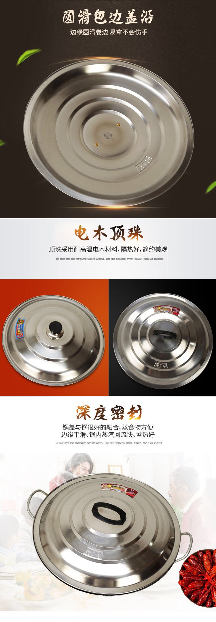 ULKNN pot lid stainless steel iron wok lid frying pan large pot lid pot lid handle thickened steamer pot lid household extra thick 50cm