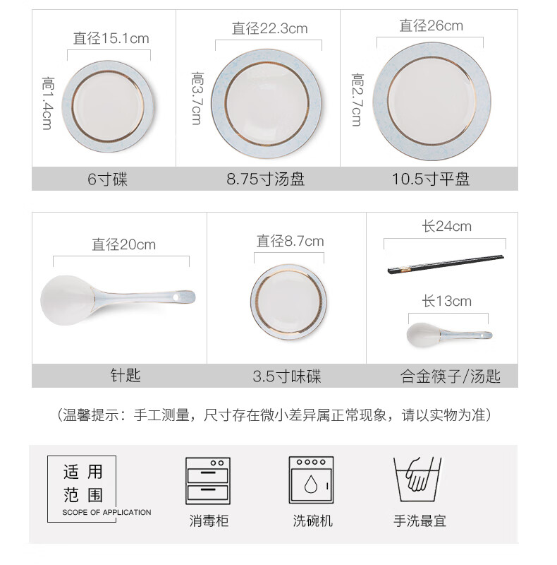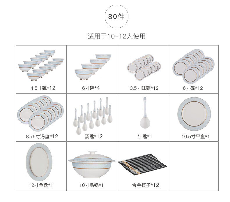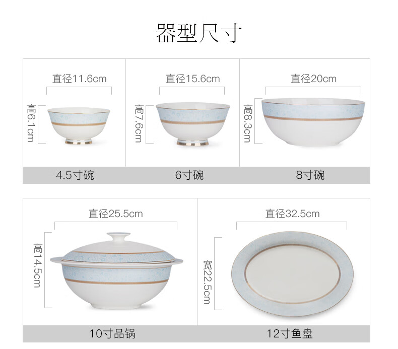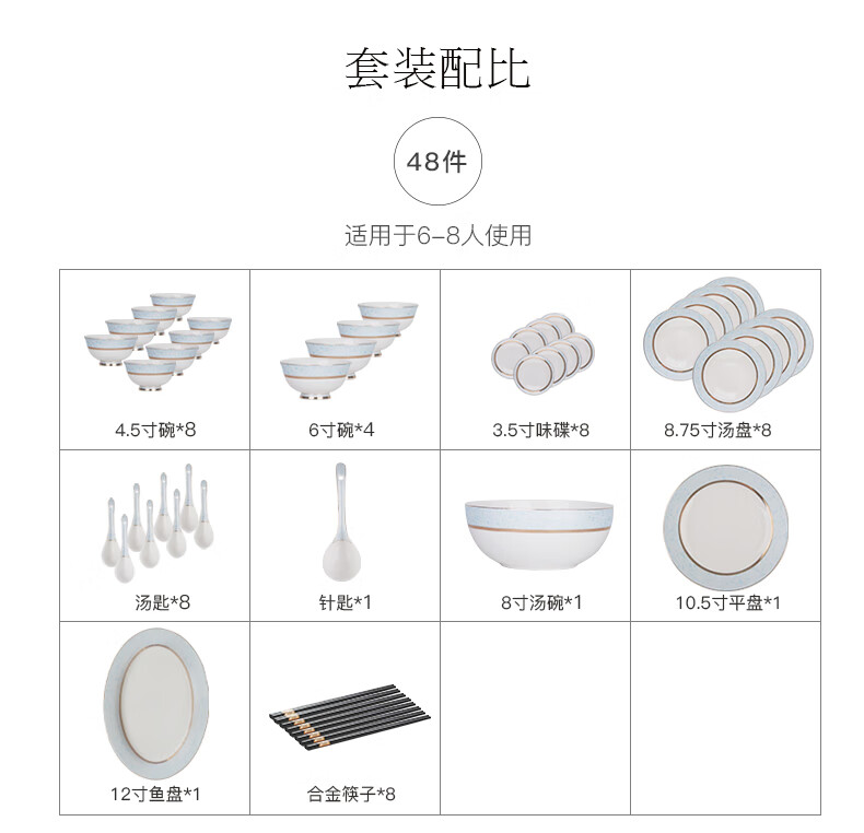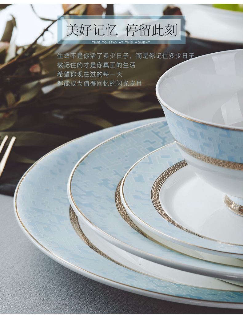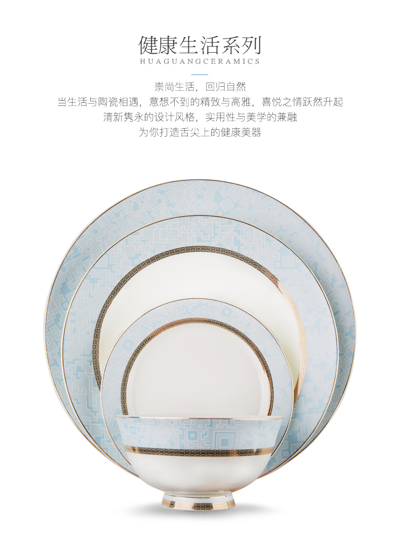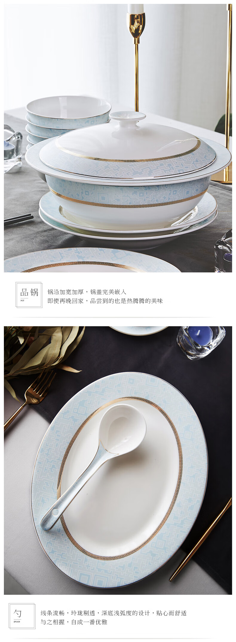 Huaguang National Porcelain Bone China Bowl Set Tableware Bowl Set Light Luxury Wedding Housewarming Gift Santorini 48-head Gift Box