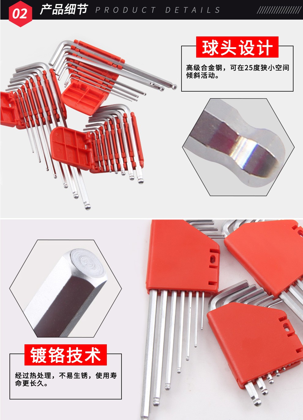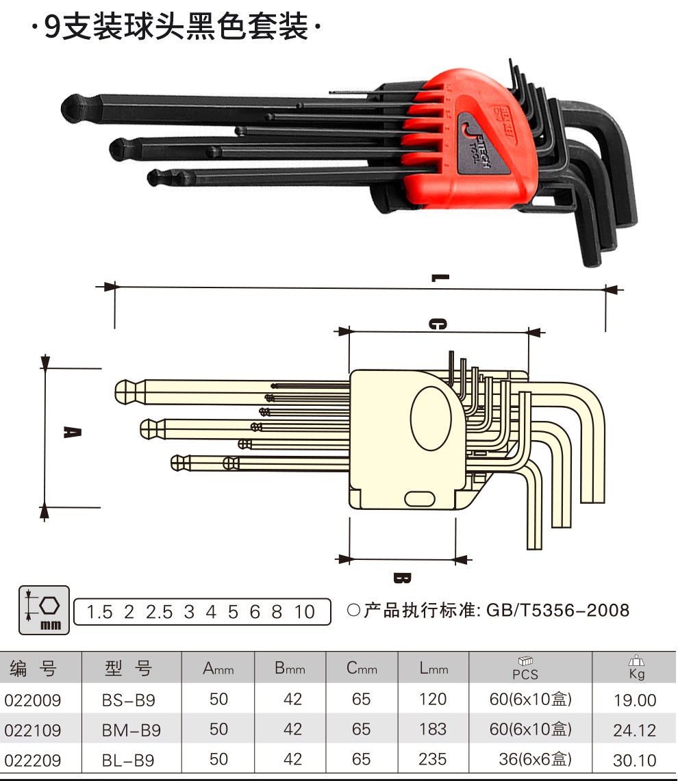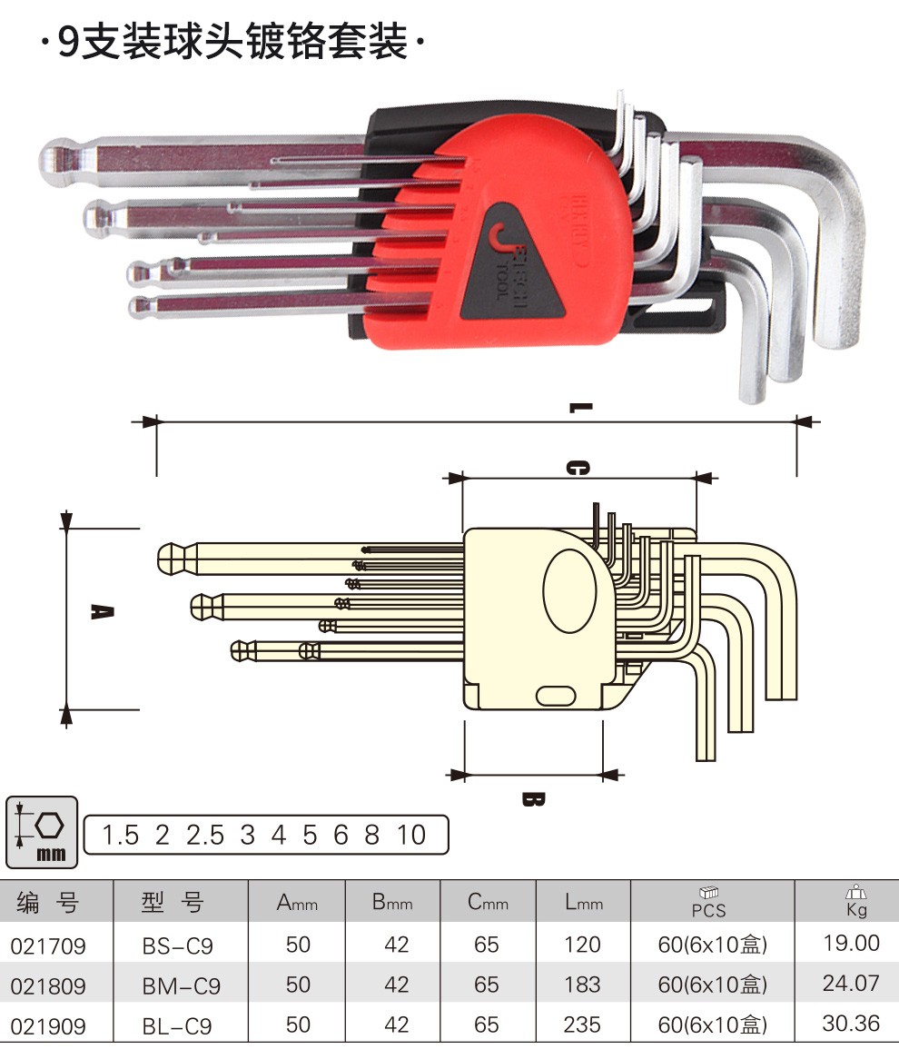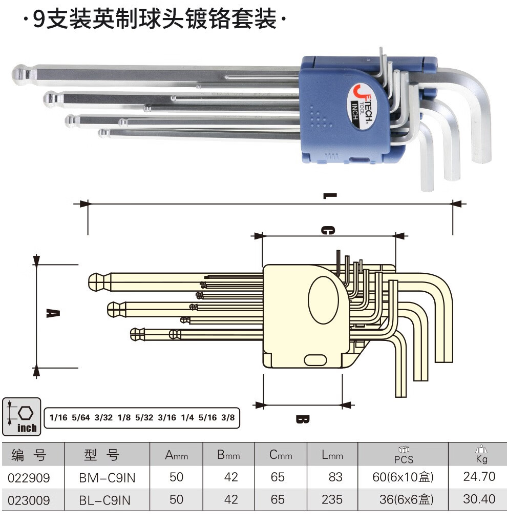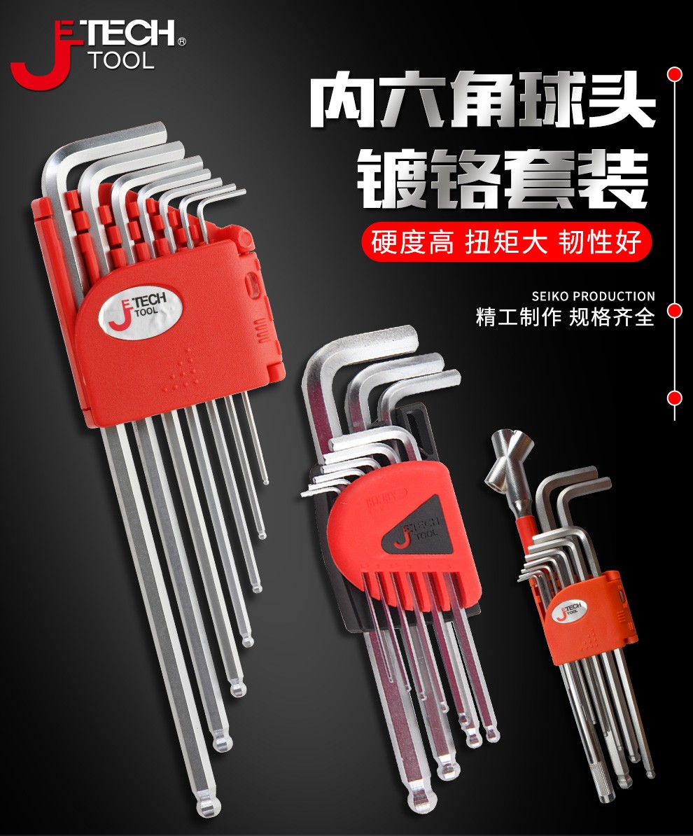 JETECH hexagonal wrench set, hexagonal screwdriver set, ball head hexagonal key, hexagonal set, hardened metric hexagonal wrench, BL-C9 chrome-plated special length, 9 pieces