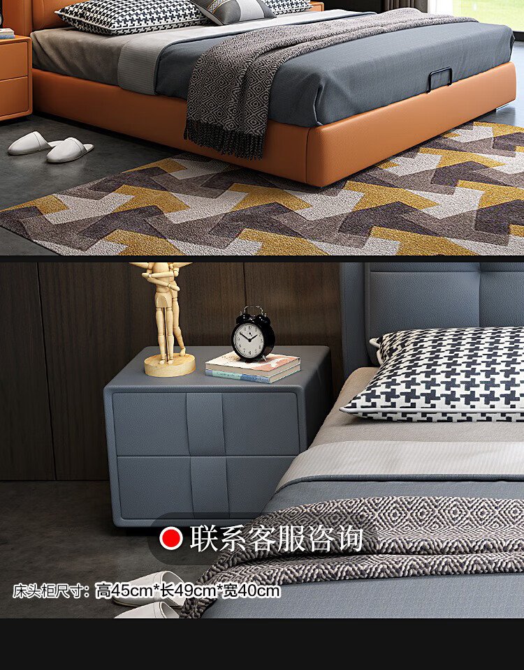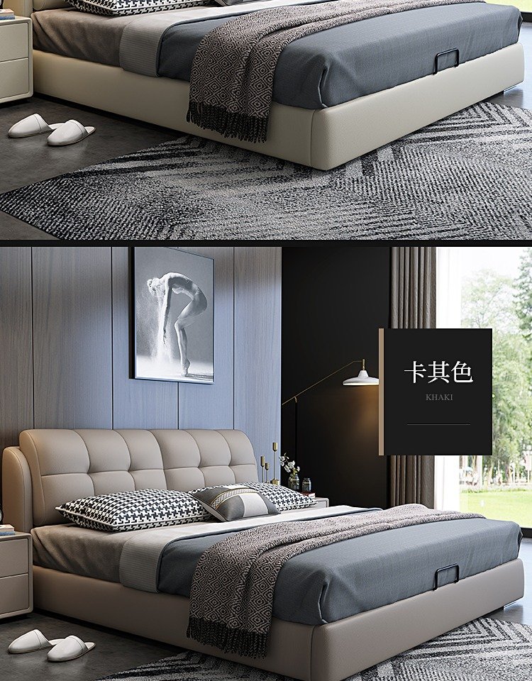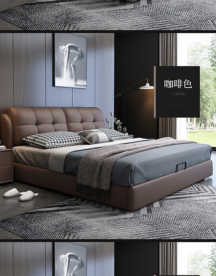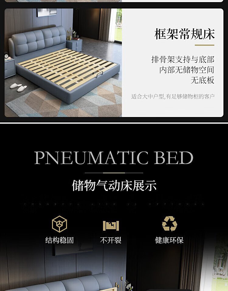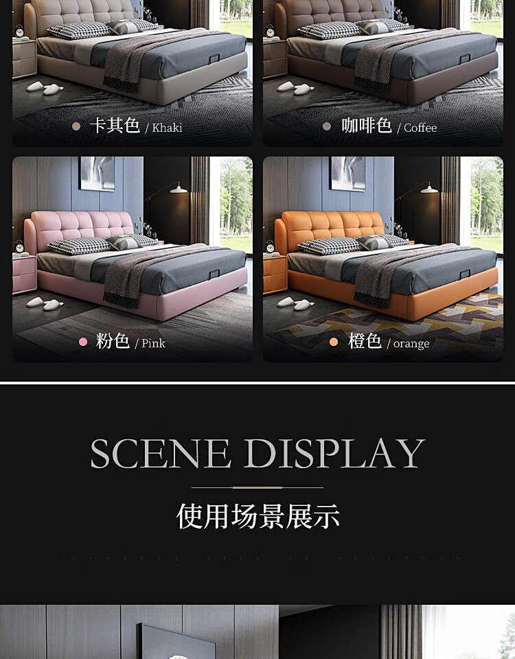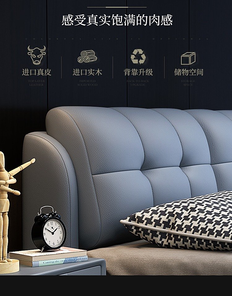 Baiguan Global Bed Leather Bed Bedroom Double Bed Modern Simple Master Bedroom Marriage Bed Solid Wood Soft Back High Box Leather Bed Furniture Bed+Bedside Table*2+Latex Mattress Frame Structure 1800mm*2000mm