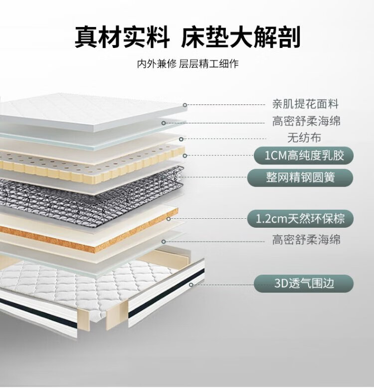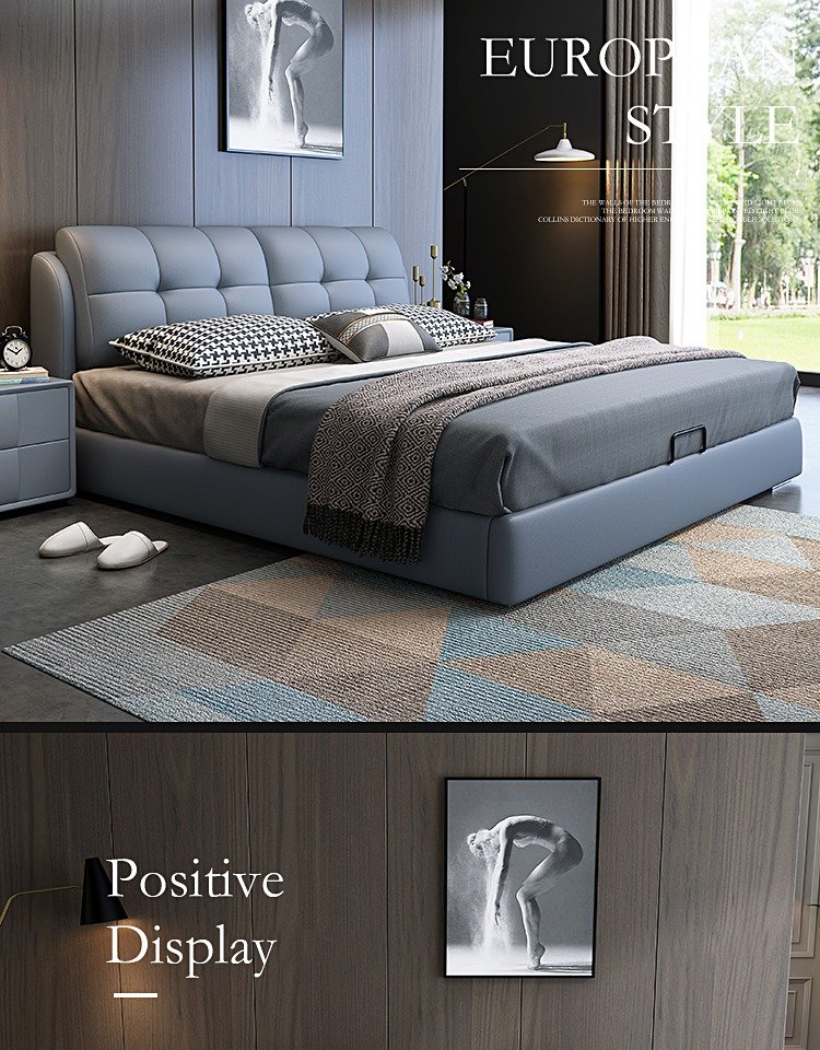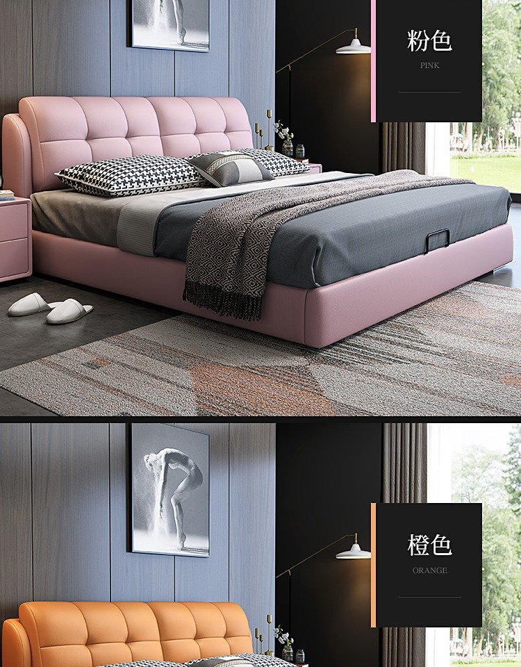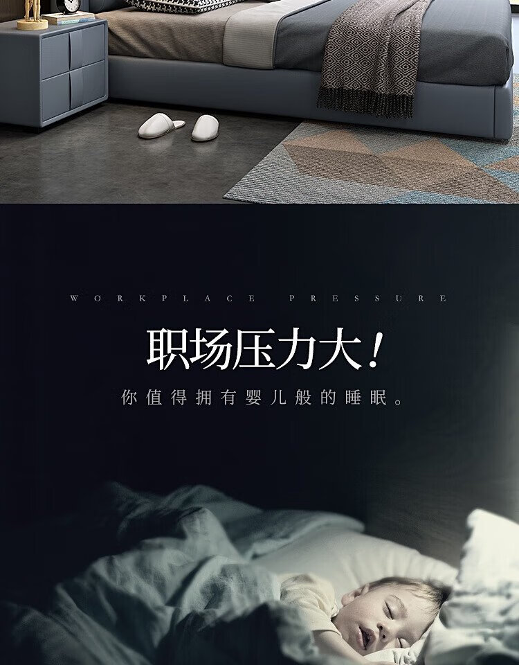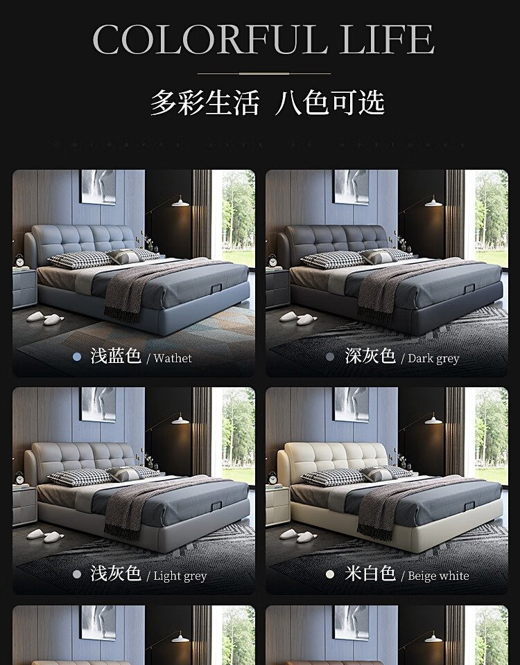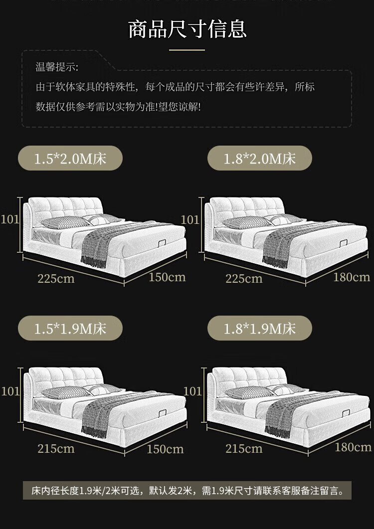 Baiguan Global Bed Leather Bed Bedroom Double Bed Modern Simple Master Bedroom Marriage Bed Solid Wood Soft Back High Box Leather Bed Furniture Bed+Bedside Table*2+Latex Mattress Frame Structure 1800mm*2000mm