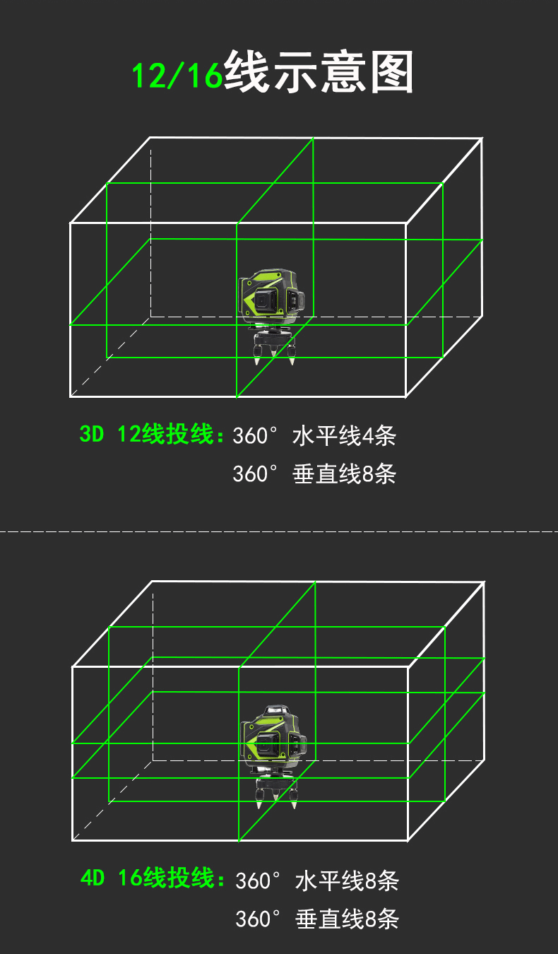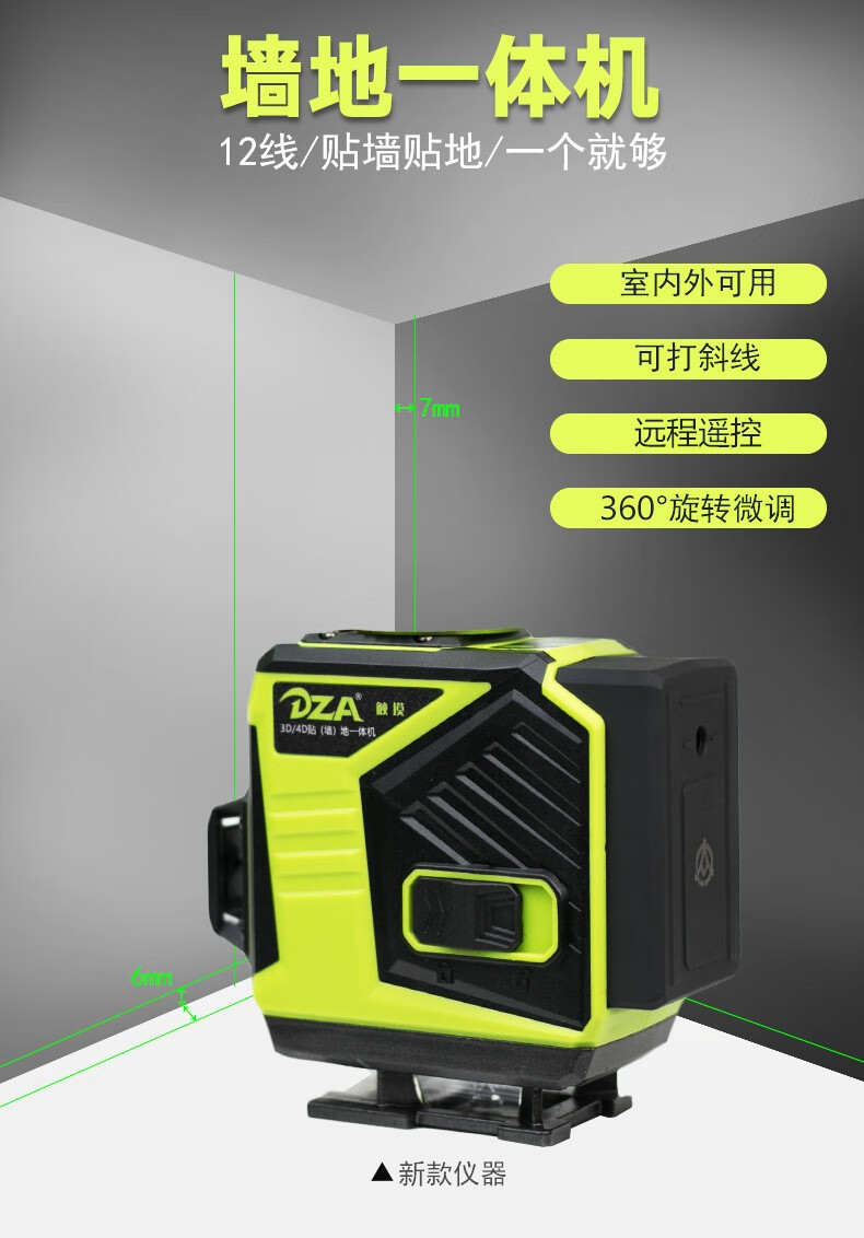 DZA12 line level infrared high-precision strong light thin line automatic leveling blue-green light wall-mounted remote control water leveler 12-line wall-mounted and floor-mounted all-in-one machine complete set