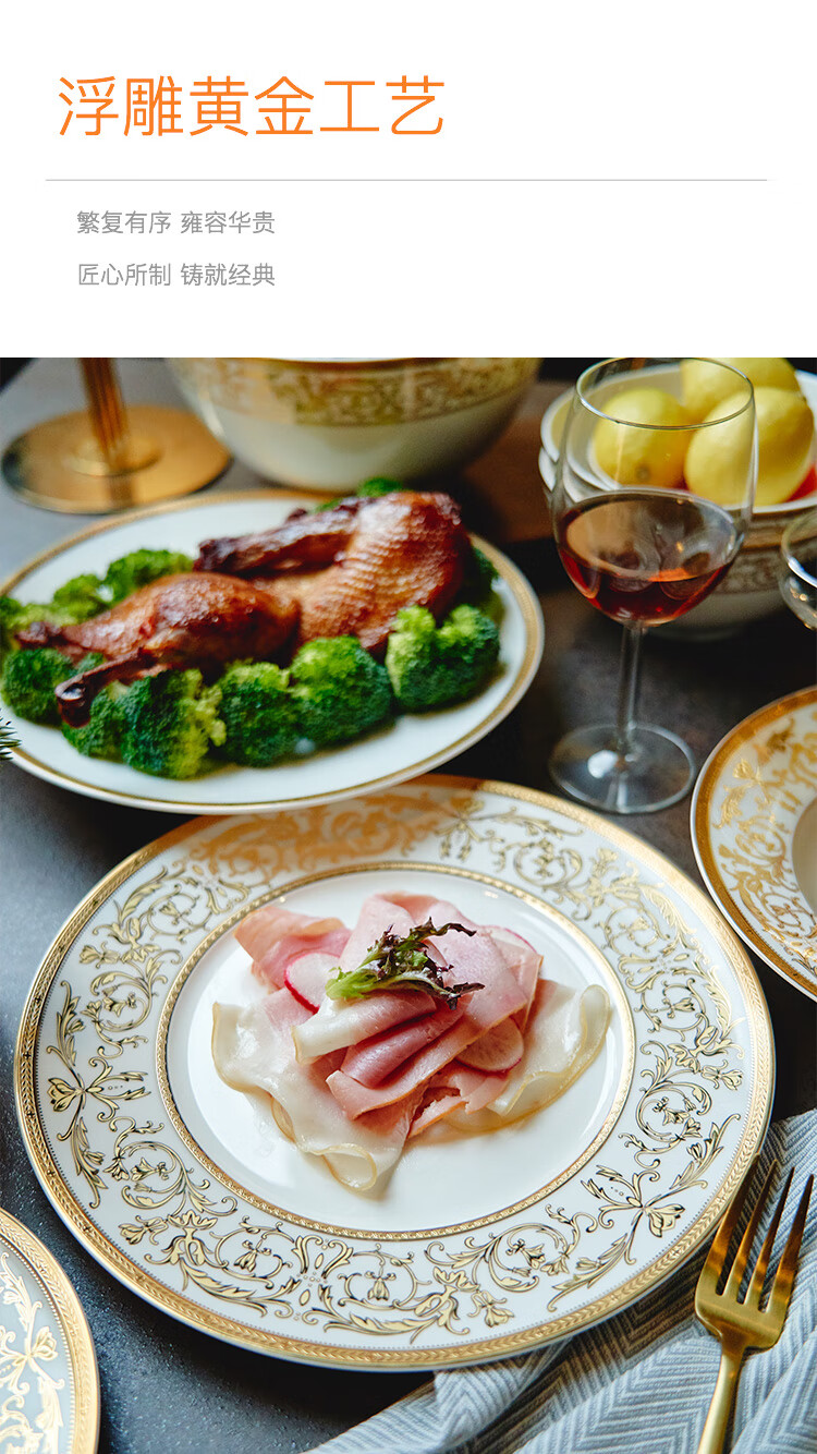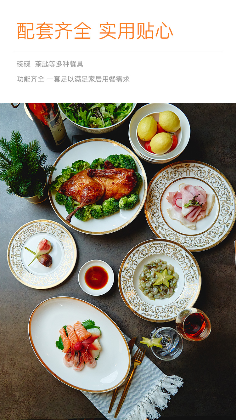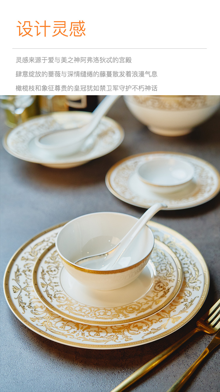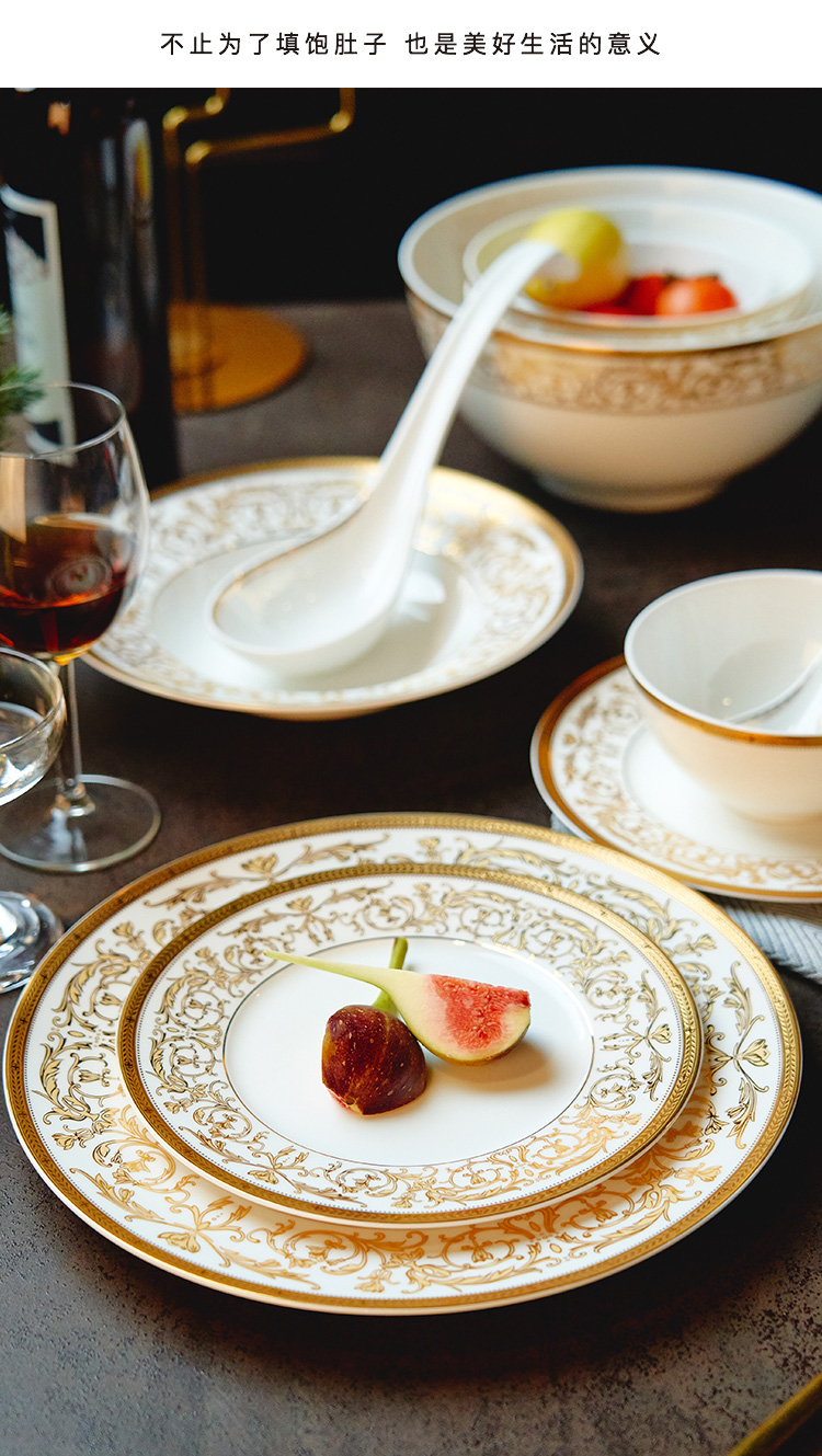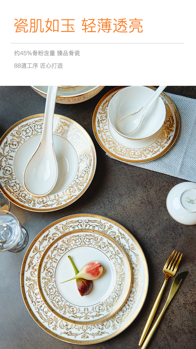 Magalonte Valentine's Day Gift Golden Han Palace Bone China Tableware Set European Light Luxury Banquet Dinner Plate Set for 10 People
