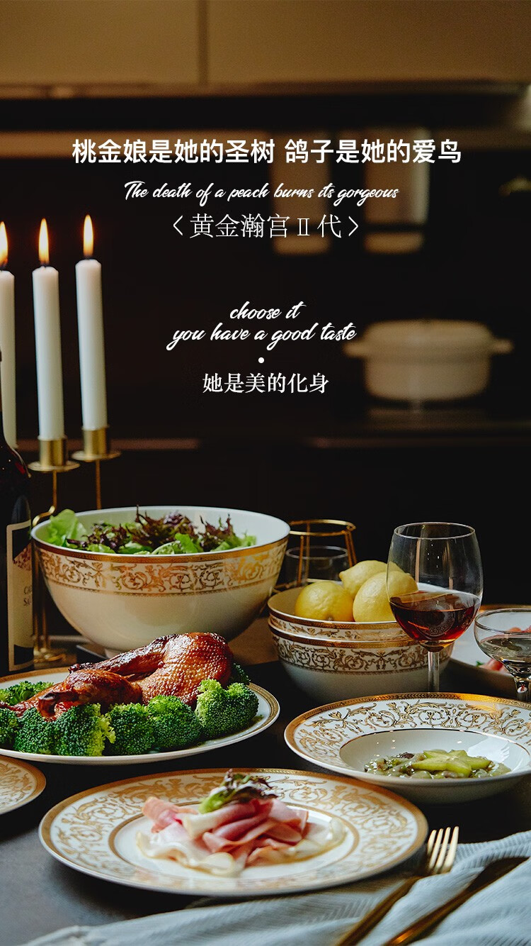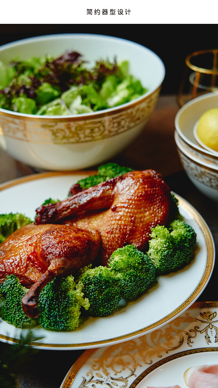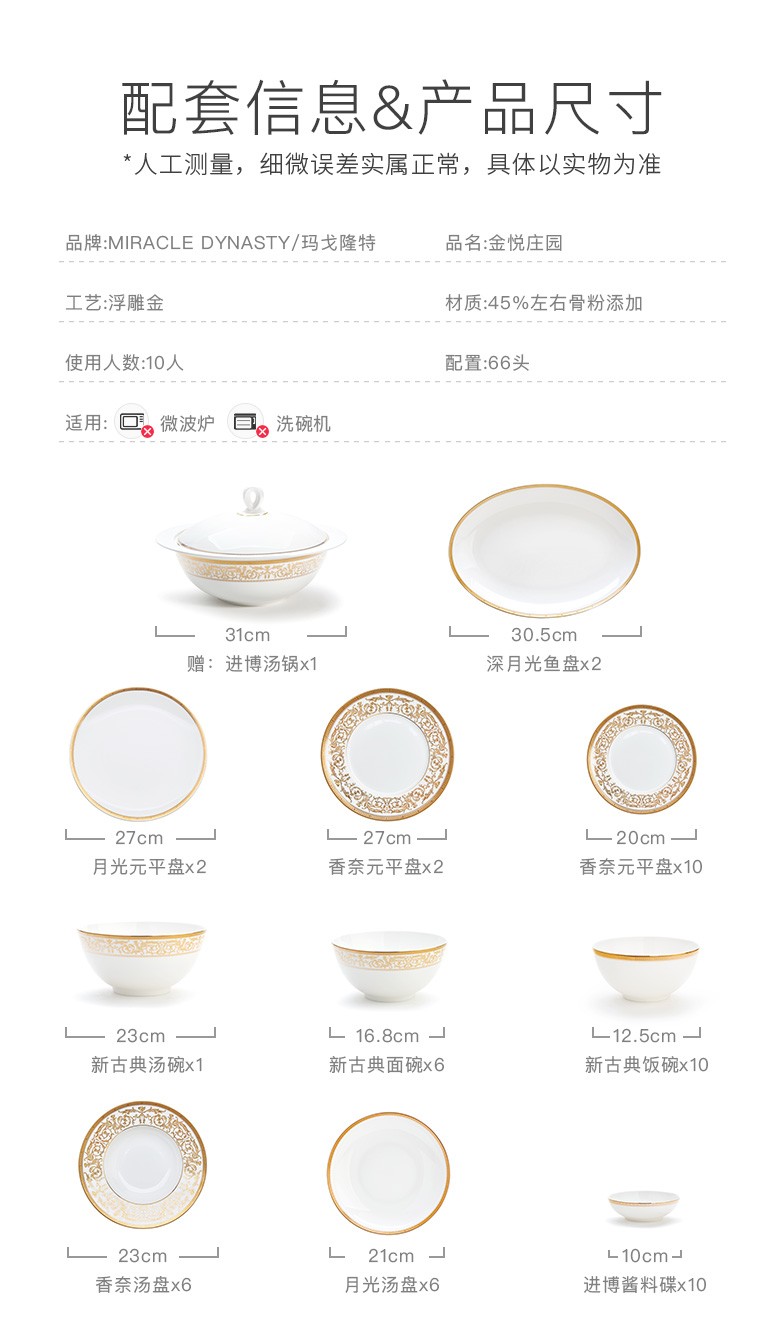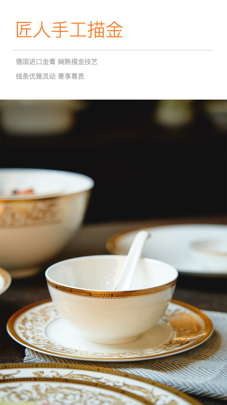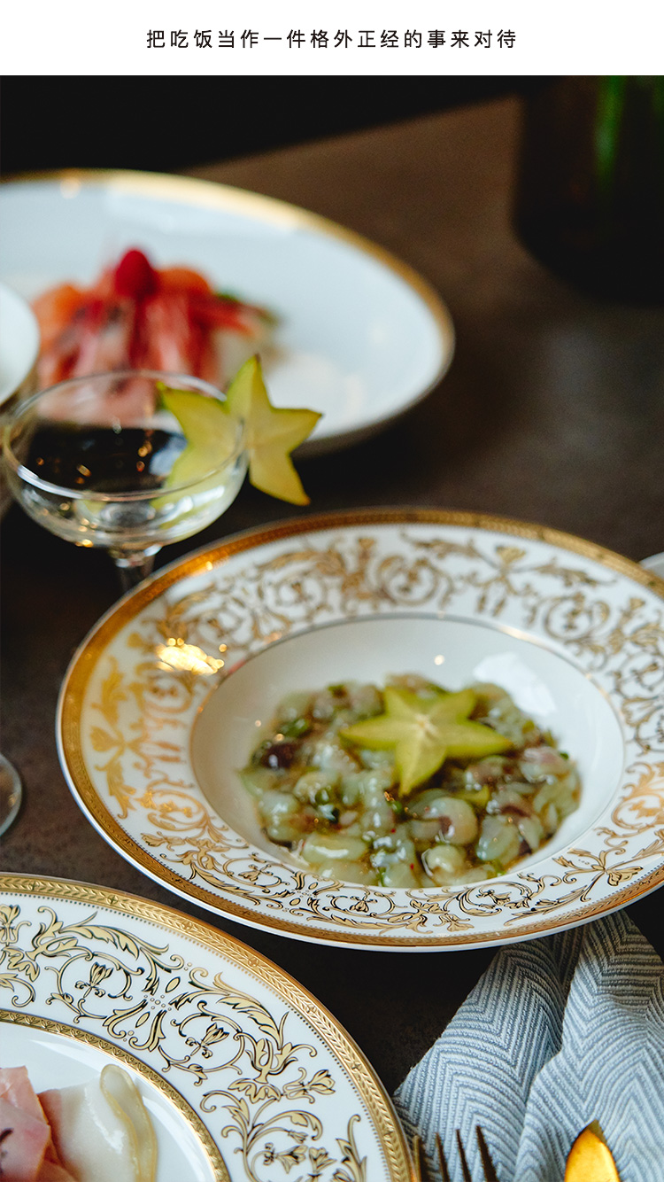 Magalonte Valentine's Day Gift Golden Han Palace Bone China Tableware Set European Light Luxury Banquet Dinner Plate Set for 10 People
