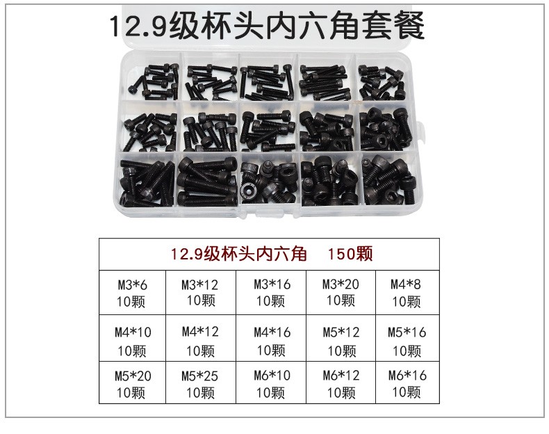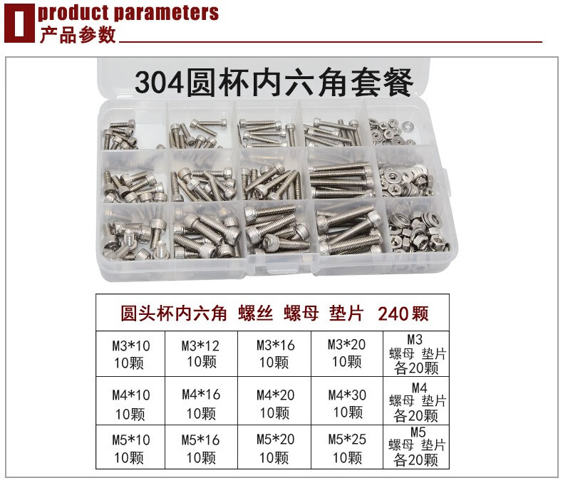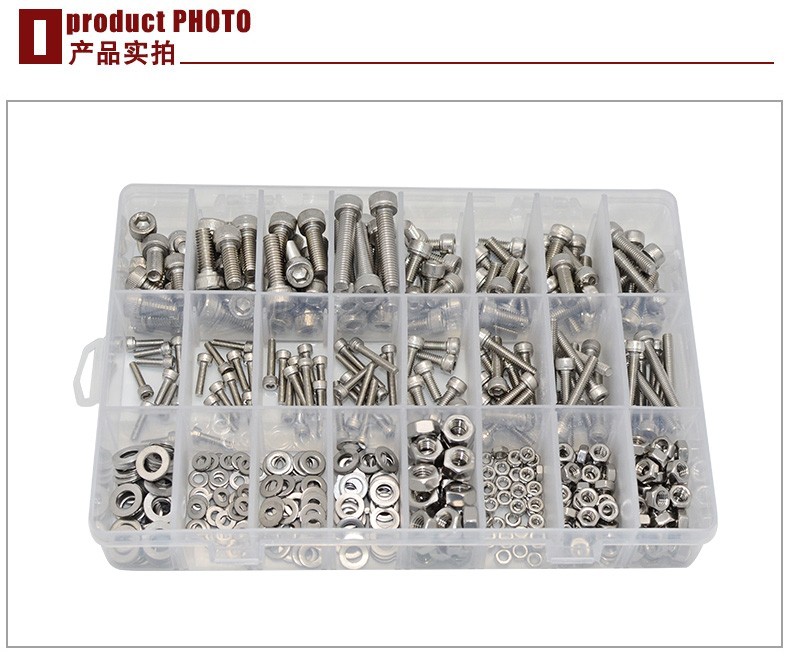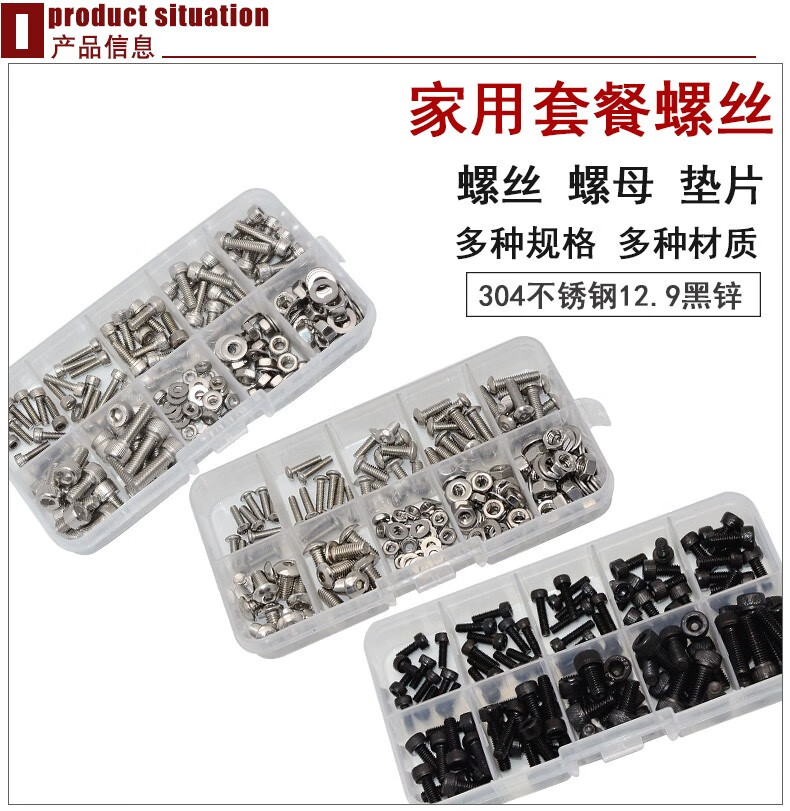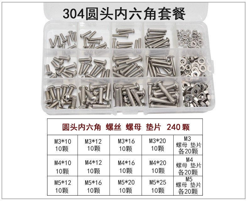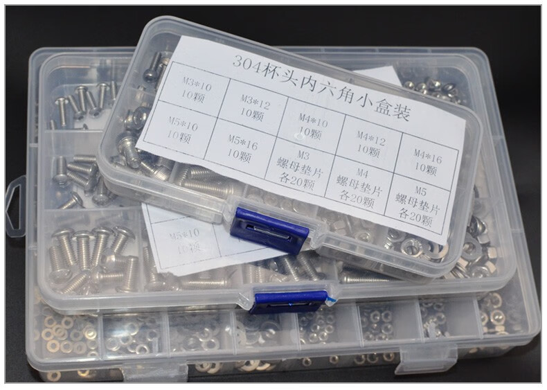 Easy 304 stainless steel hexagonal socket bolts, nuts and gaskets set 12.9 grade hexagonal cup head box screw combination New 304 cup head hexagonal 10-grid small box set