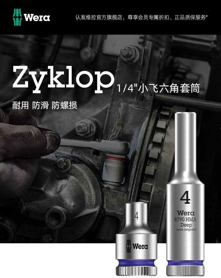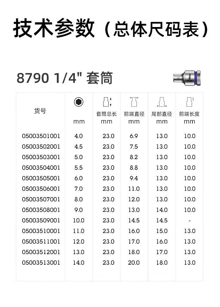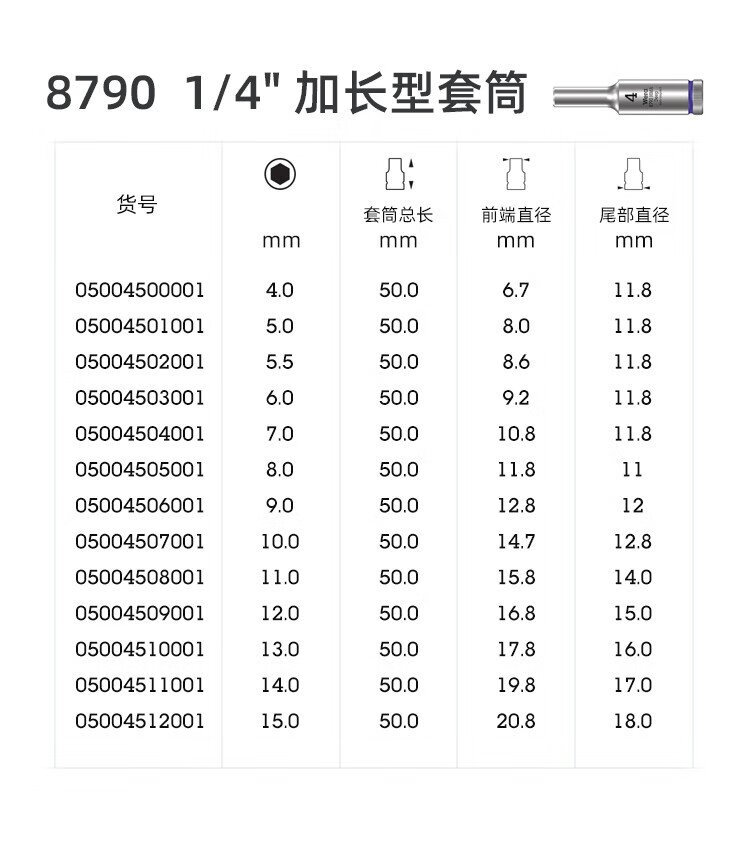 WERA 1/4 external hex socket German 8790 imported auto repair tools Xiaofei deepened extended nut bit set 1/4 extended 10 x50 (05004507001