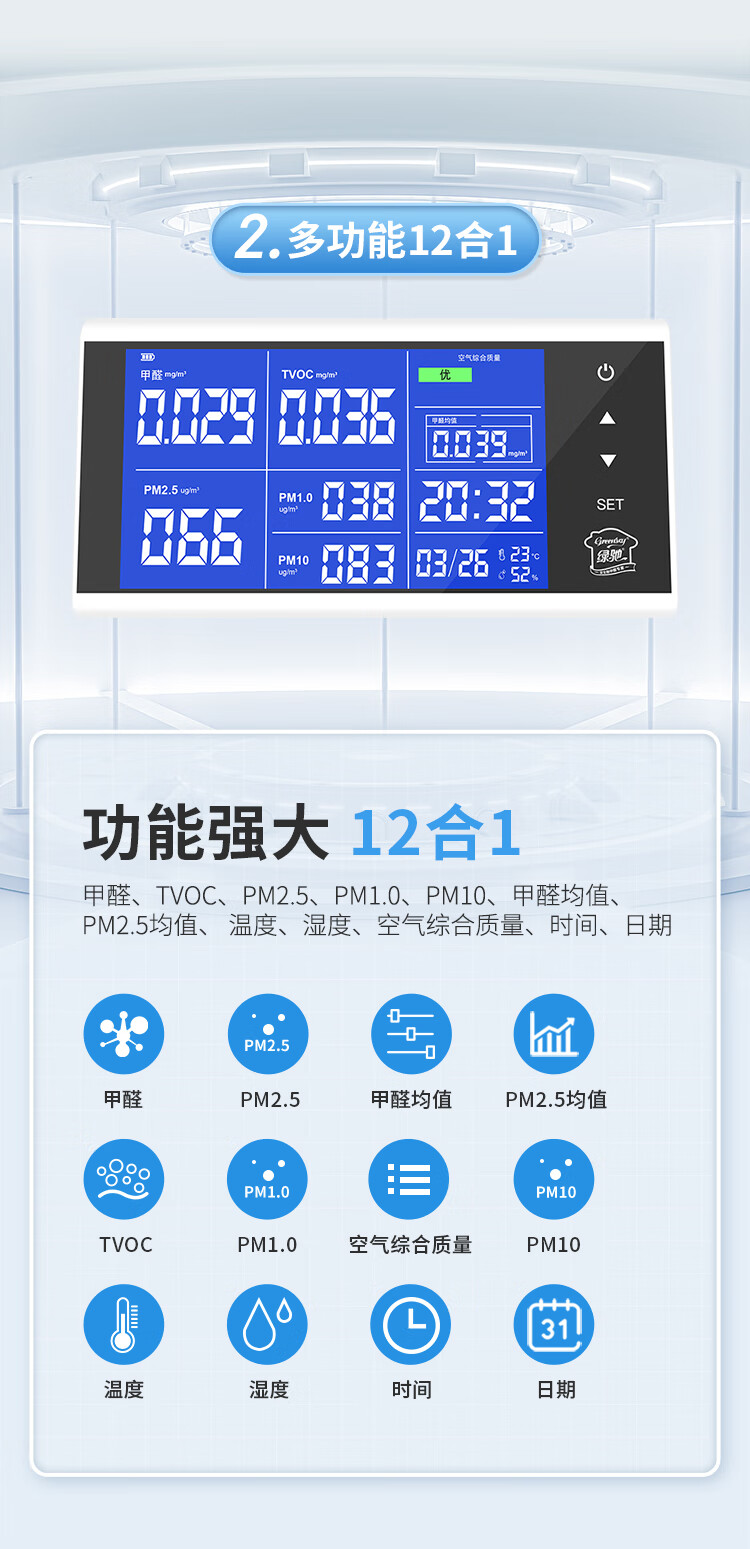 Greenchi 12-in-1 Dart formaldehyde detection instrument professional new home household air quality tester alcohol benzene paper box