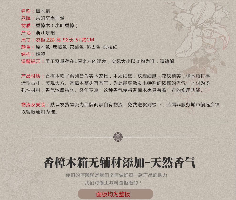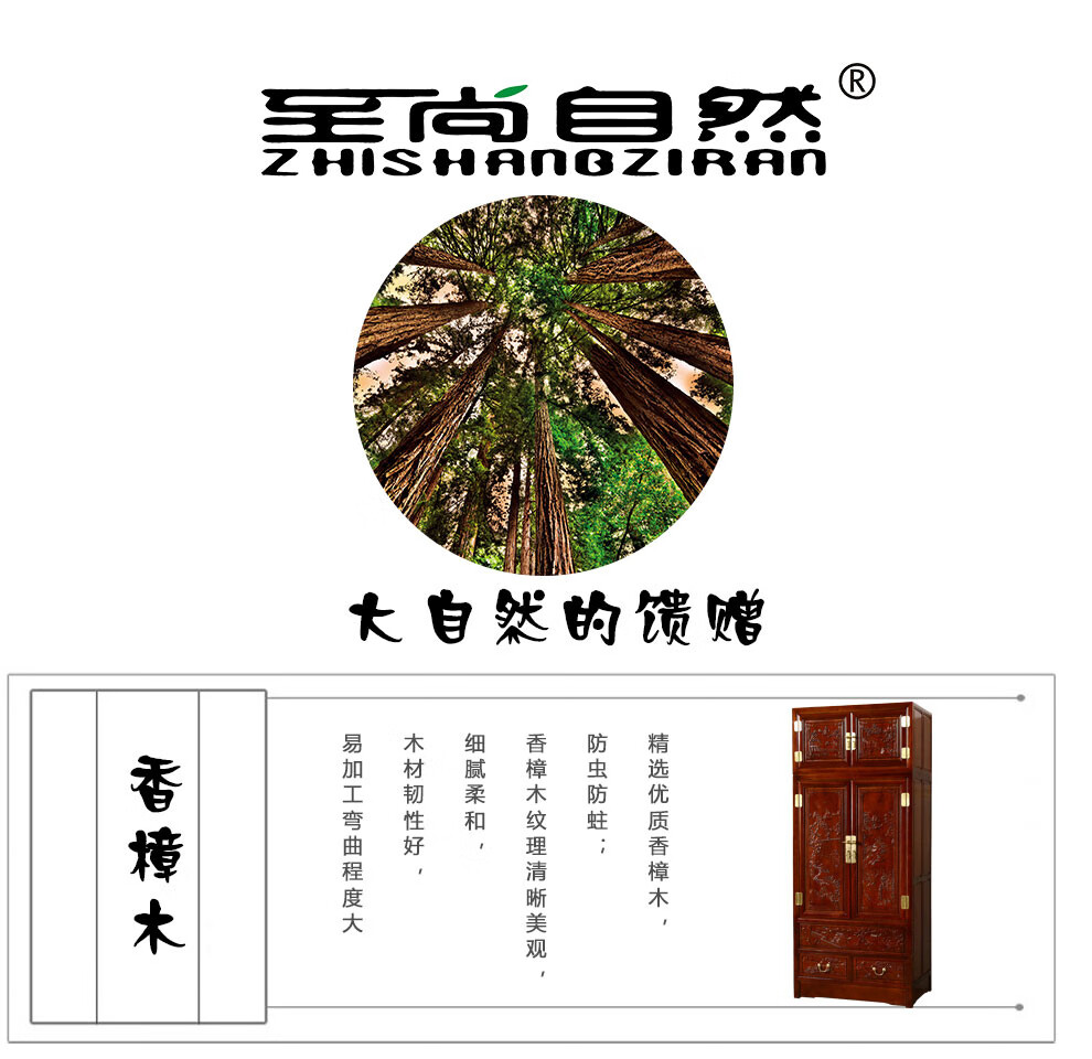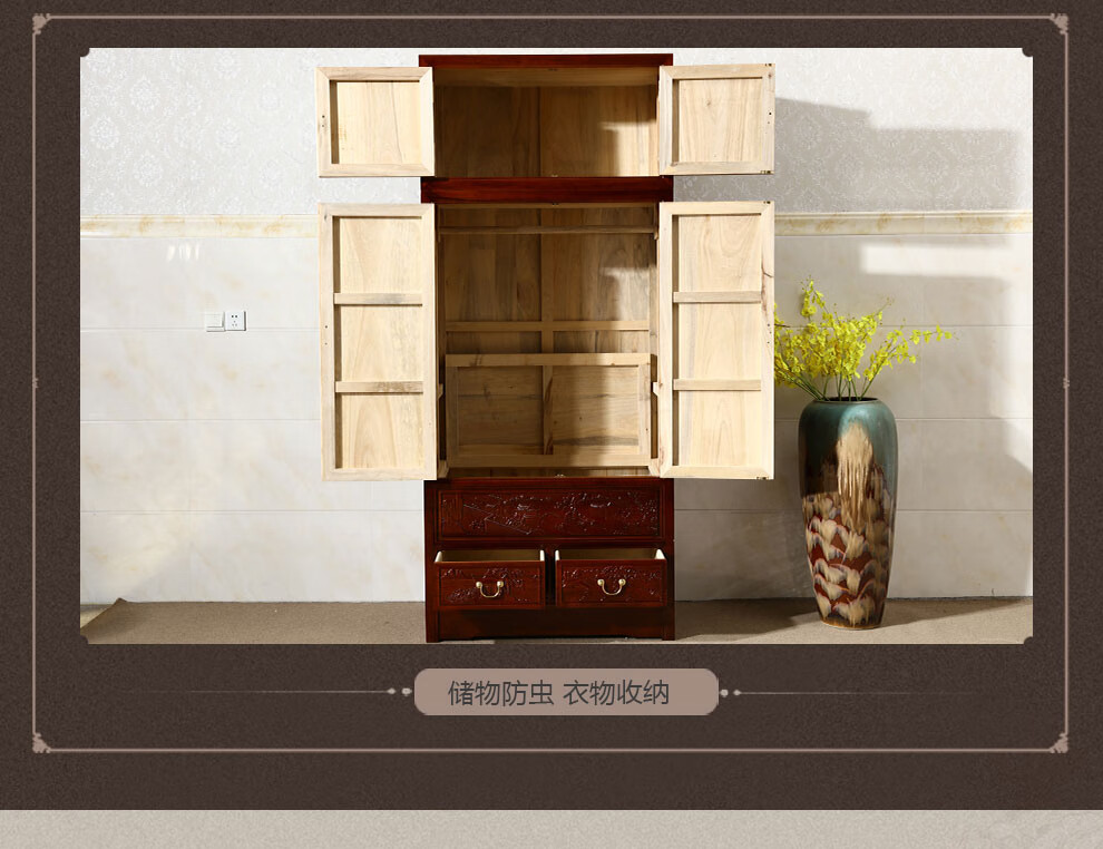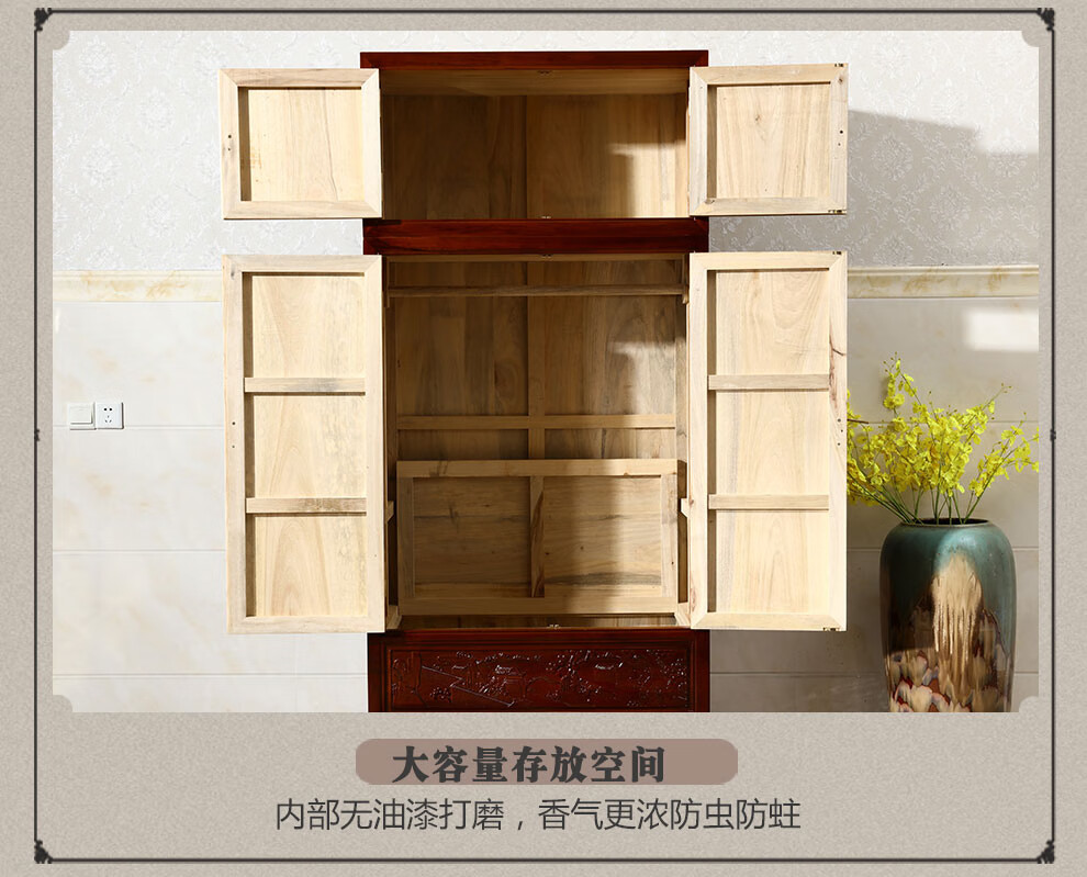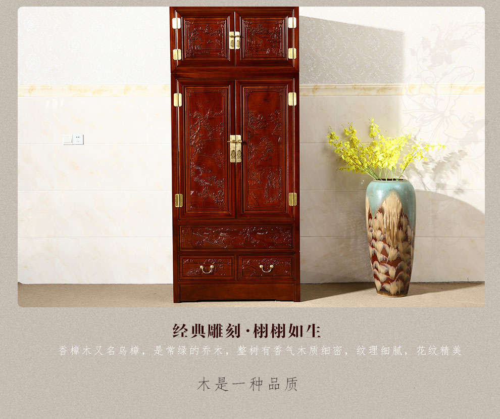 ZHISHANGZIRAN camphor wood wardrobe top cabinet camphor wood solid wood top cabinet storage cabinet collection wardrobe insect-proof and moth-proof carved pattern