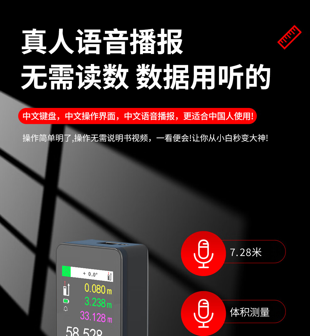 Haotu handheld high-precision laser distance meter electronic ruler infrared measuring instrument laser ruler measuring instrument room measuring instrument type-c charging 50 meters silent accurate measurement + high-definition color screen