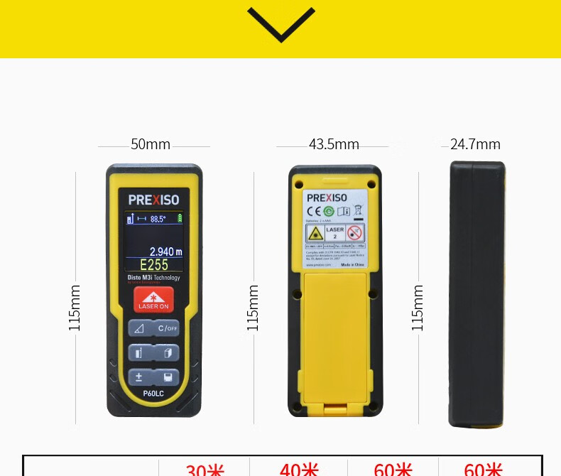 PREXISO laser distance meter high-precision infrared measuring instrument distance measuring ruler room measuring instrument laser ruler electronic ruler PREXISO PM40L0 (40 meters)