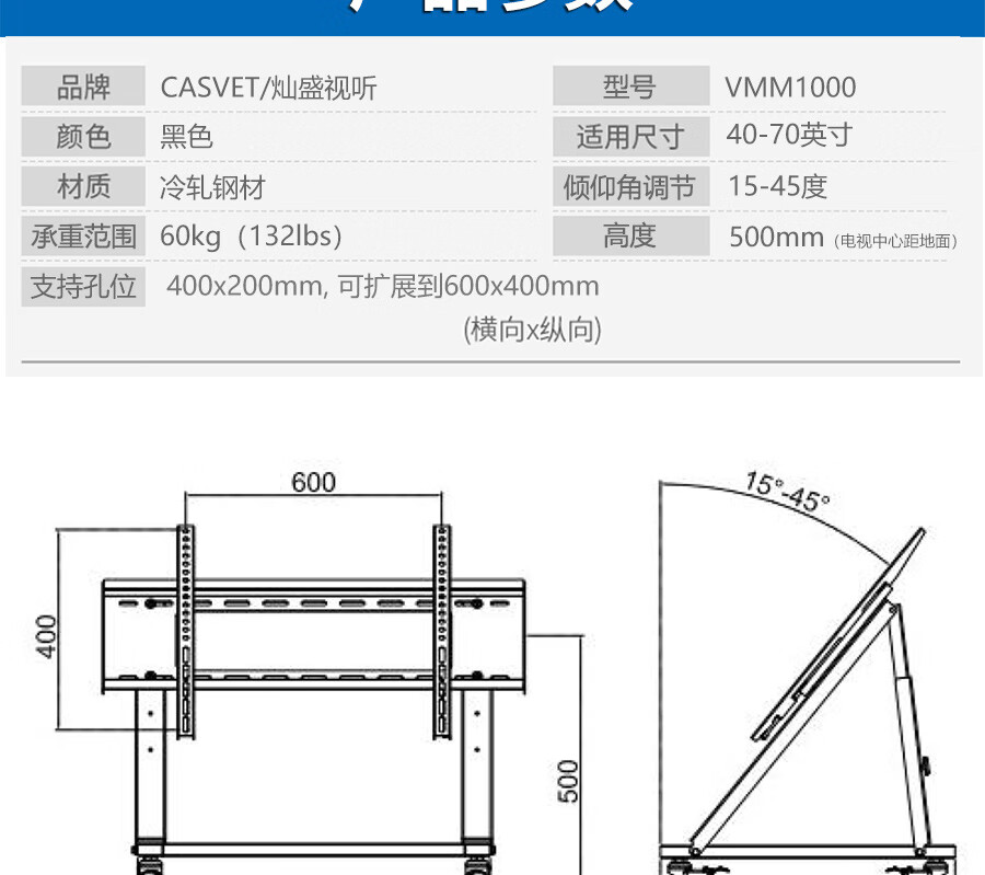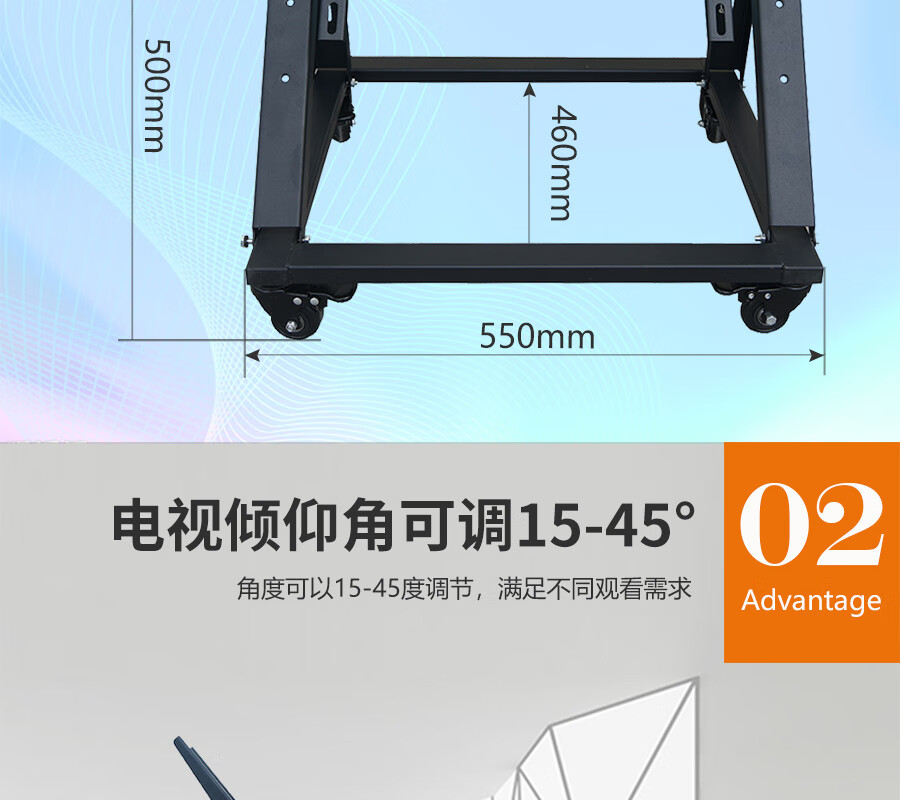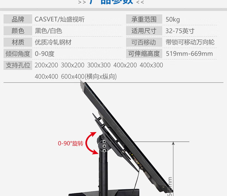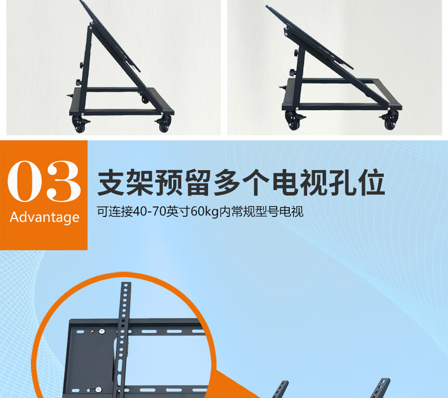 CASVET Cansheng VMM1100 TV Bracket Inclined Stage Display TV Floor-standing Mobile Mount TV Review Trolley Back Stand Stand 32-100 inches Floor-standing Black 32-75 inches Model 11