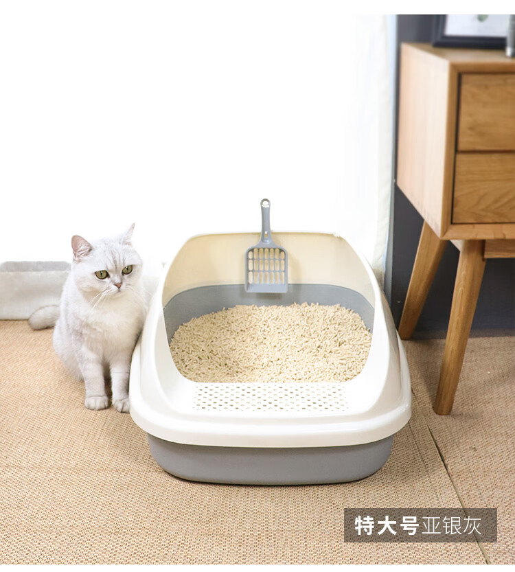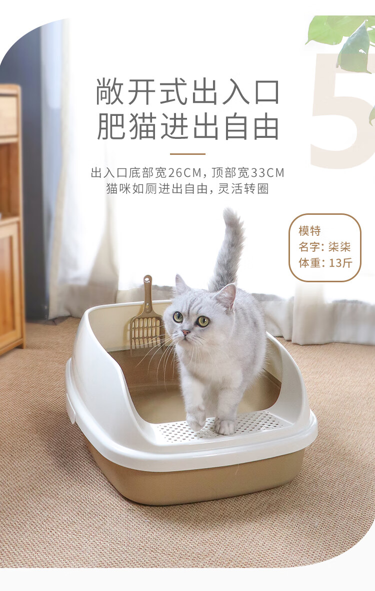 Meika upgraded semi-enclosed cat litter box extra-large pedal open anti-splash and anti-odor cat toilet potty coffee color