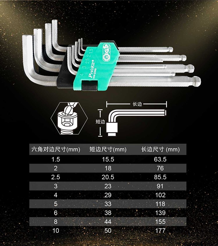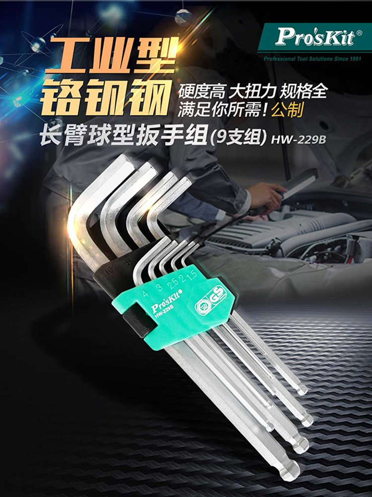 Pro sKit 9-piece long ball head hex wrench set HW-229B