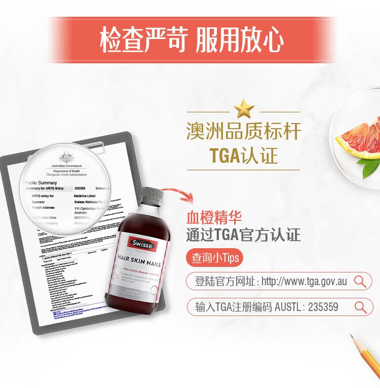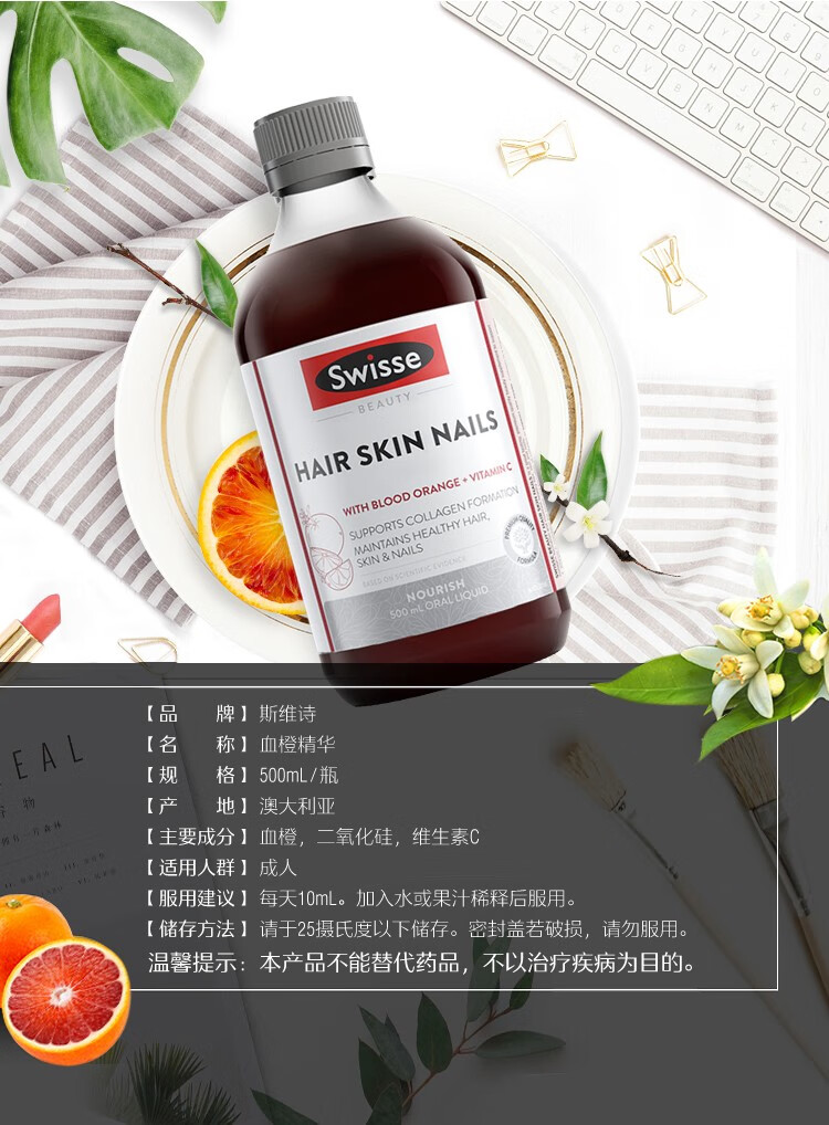Swisse Collagen Oral Liquid Natural Blood Orange Essence VC Skin Hair Nail Strengthening Pro-Collagen Australian Collagen Liquid 500ml * 1 Bottle