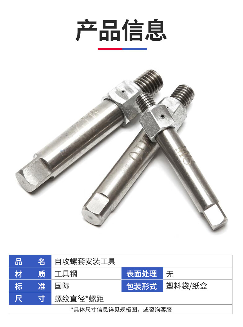 Jinggong stainless steel self-tapping thread tool braces sheath installation wrench black braces thread protective sleeve M2-M16 M2*0.4 1 piece