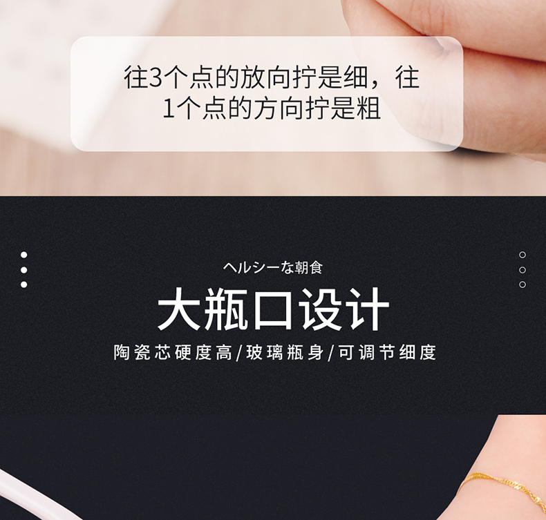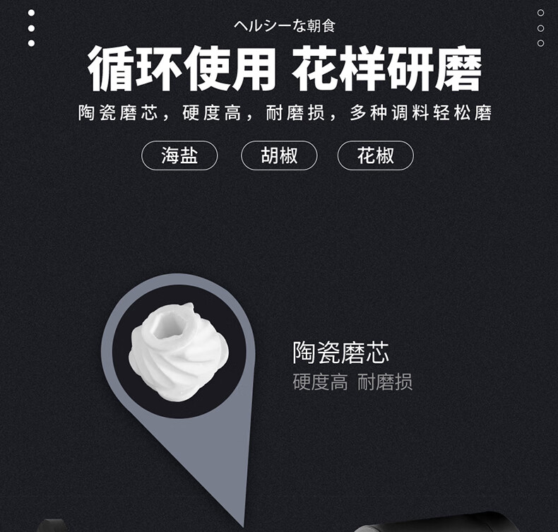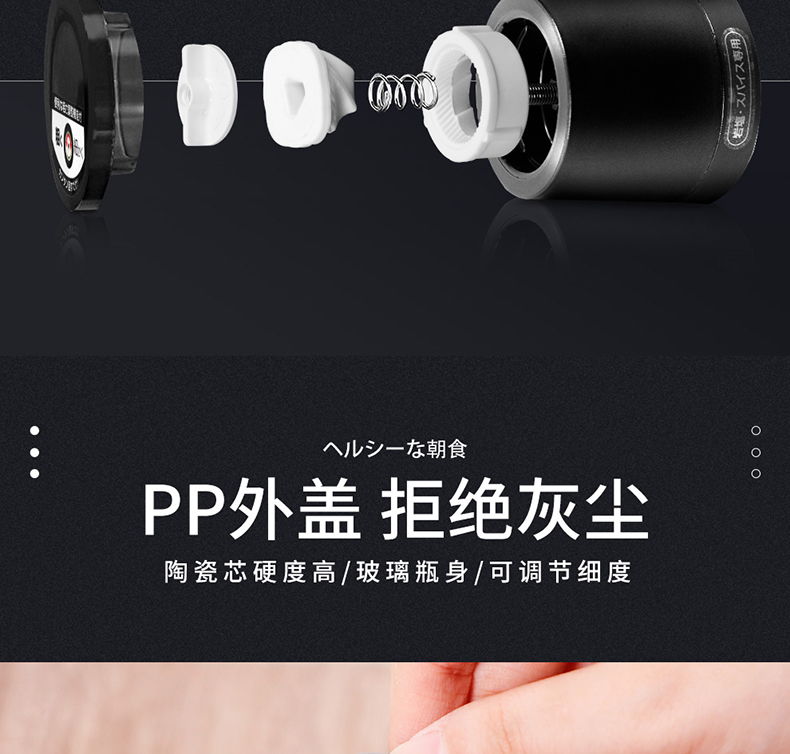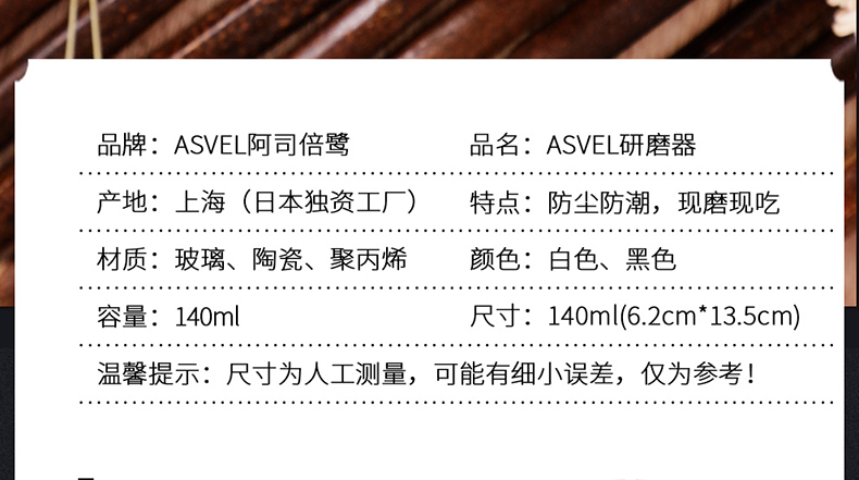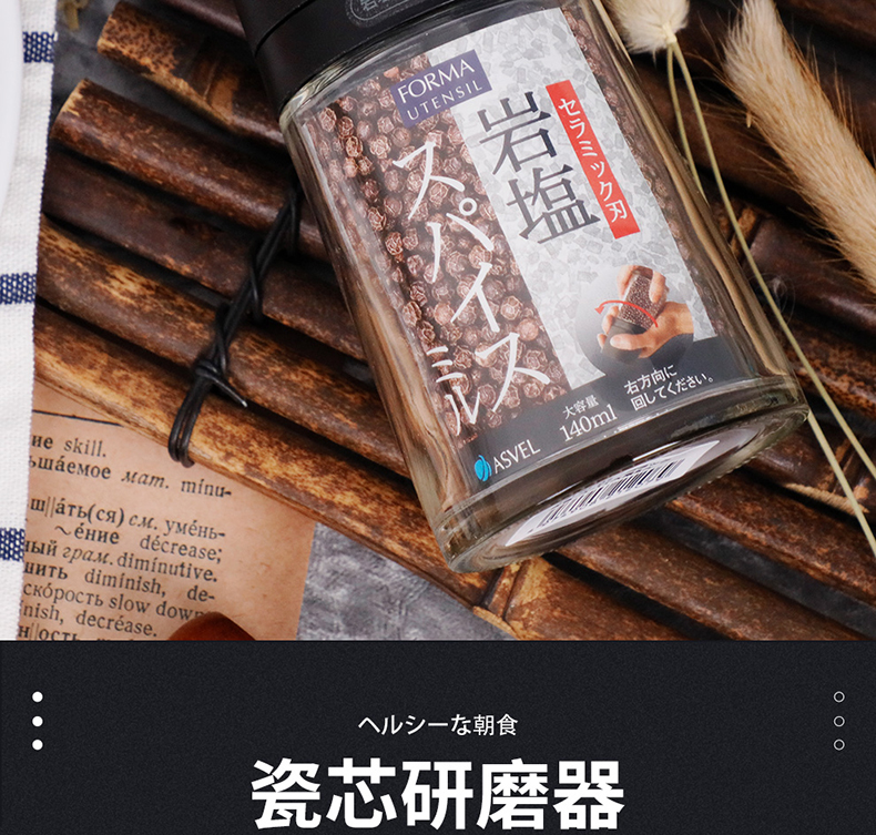 ASVEL pepper grinder ceramic core black pepper grinding bottle manual grinding bottle grinding glass grater 140ml