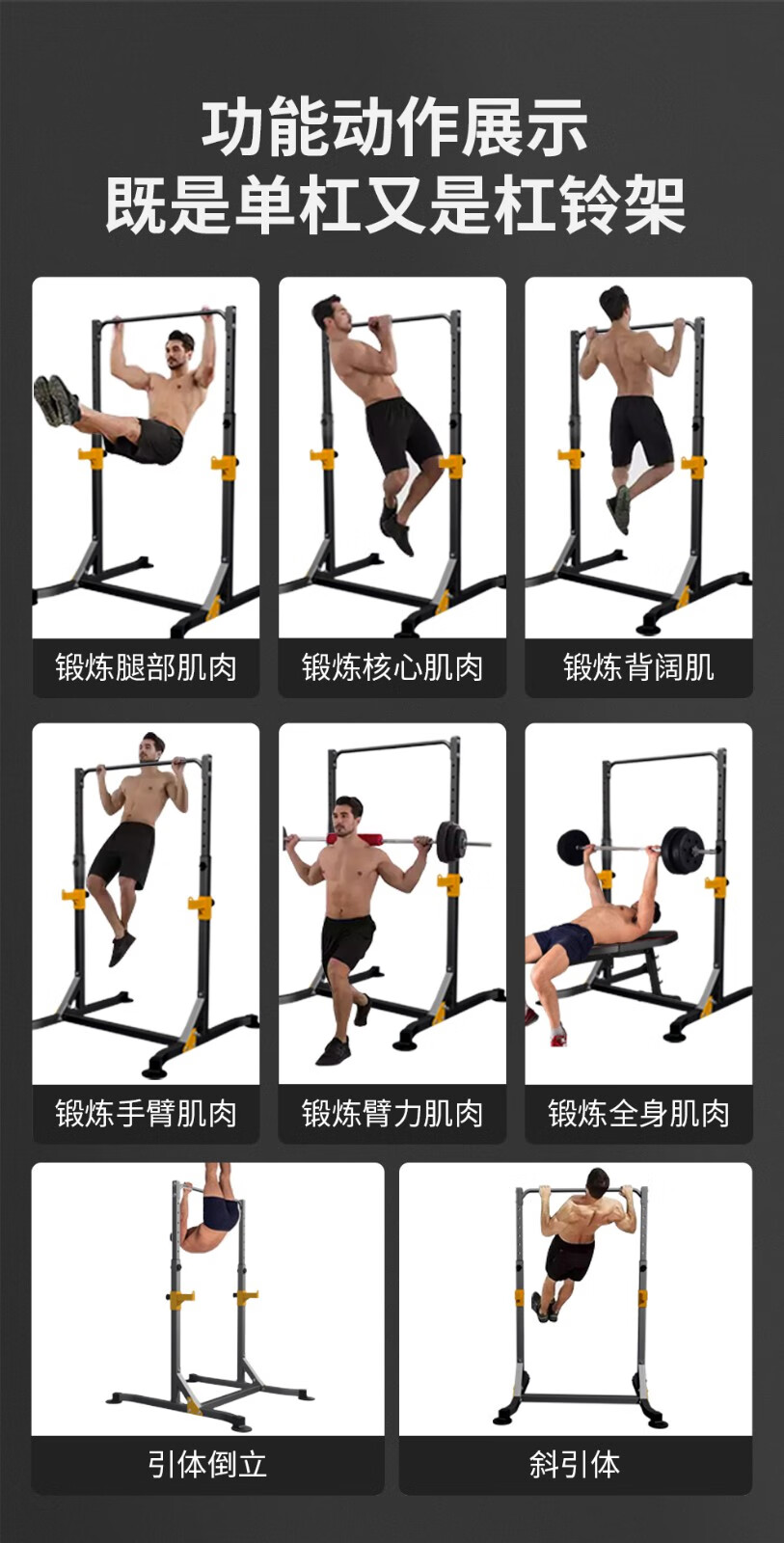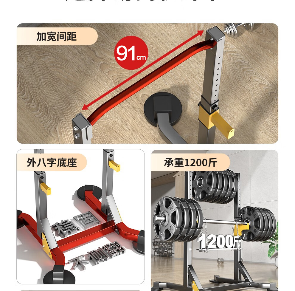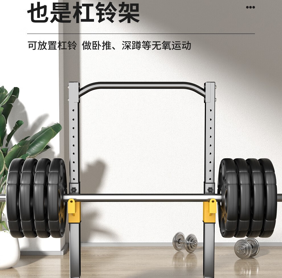 YICHIJIAN horizontal bar indoor pull-up device home multi-functional squat rack bench press rack barbell rack fitness training equipment luxury model + 80 kg barbell