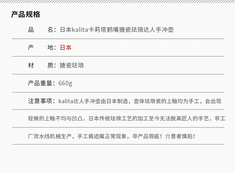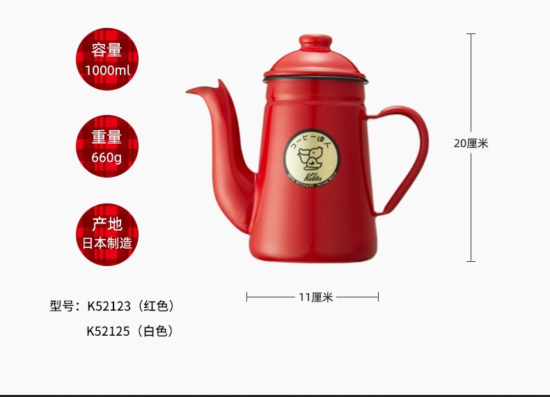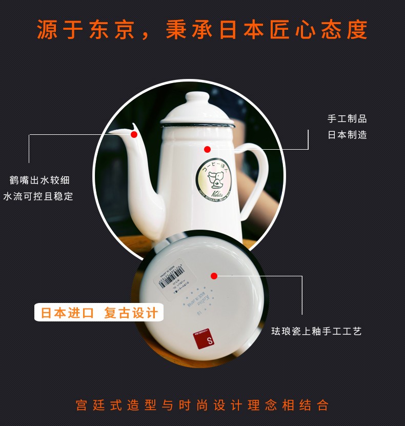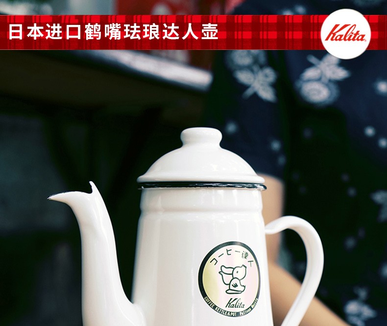 Kalita imported from Japan Kalita hand-pour pot crane mouth thin mouth hand-pour coffee pot enamel enamel coffee kettle 1000ml white