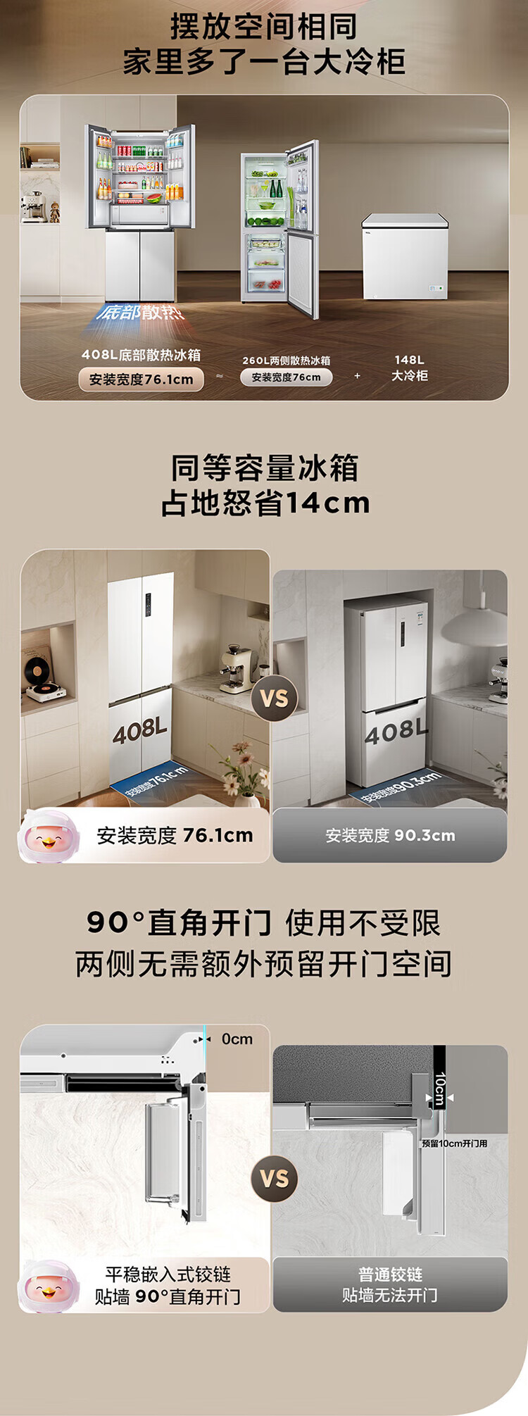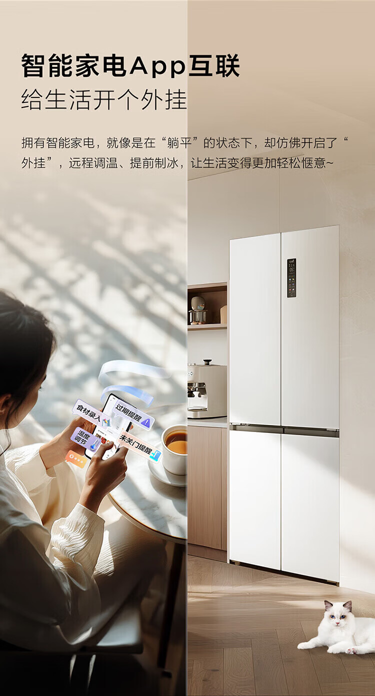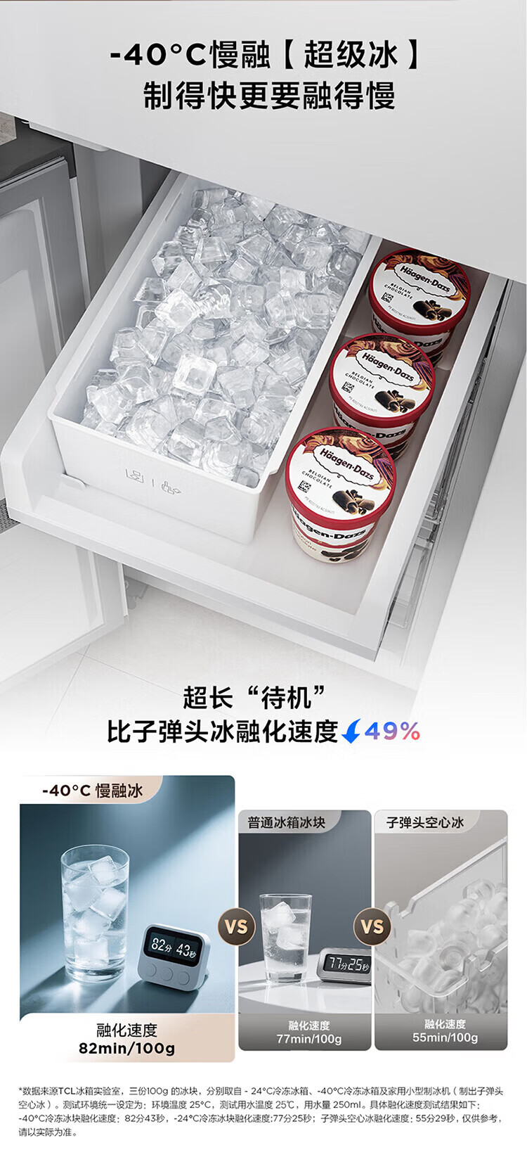 TCL cold pudding 408L cross-door refrigerator ultra-narrow and ultra-thin small apartment zero-embedded fully automatic ice making slow melting ice household refrigerator first-class energy efficiency trade-in R408T7-UQB