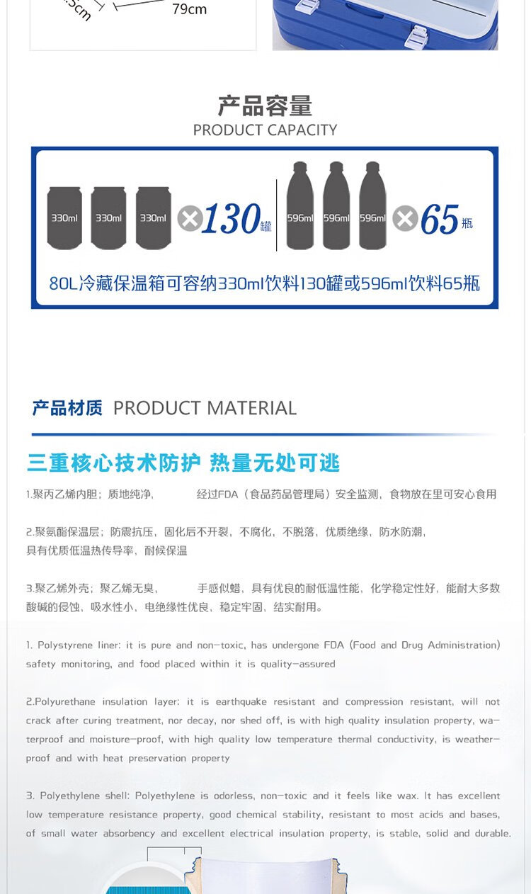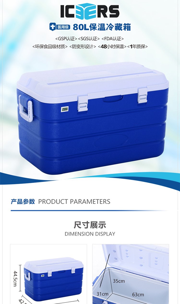 ICERS Eisens PU insulated box 80L medical refrigerator outdoor camping portable fishing box