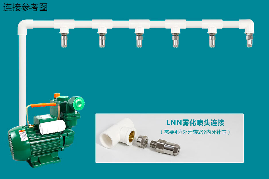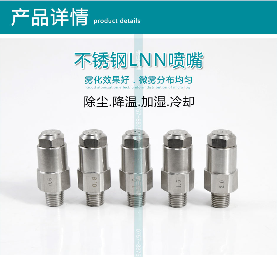 Geqiang direct sales 304 stainless steel atomization nozzle LNN spray head humidification and dust removal low pressure micro mist atomization nozzle water atomization 2 points external tooth 0.6mm aperture