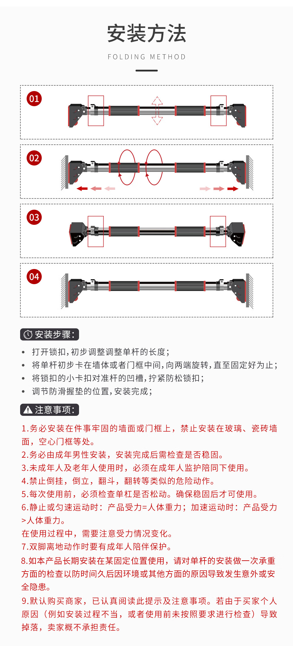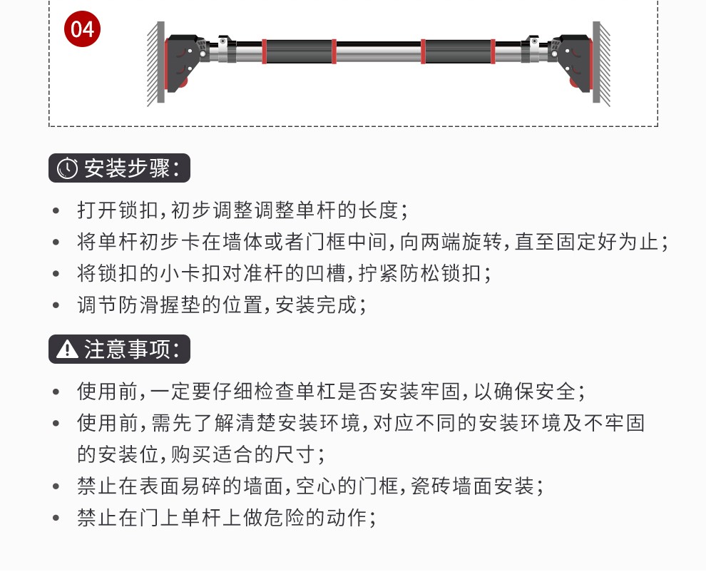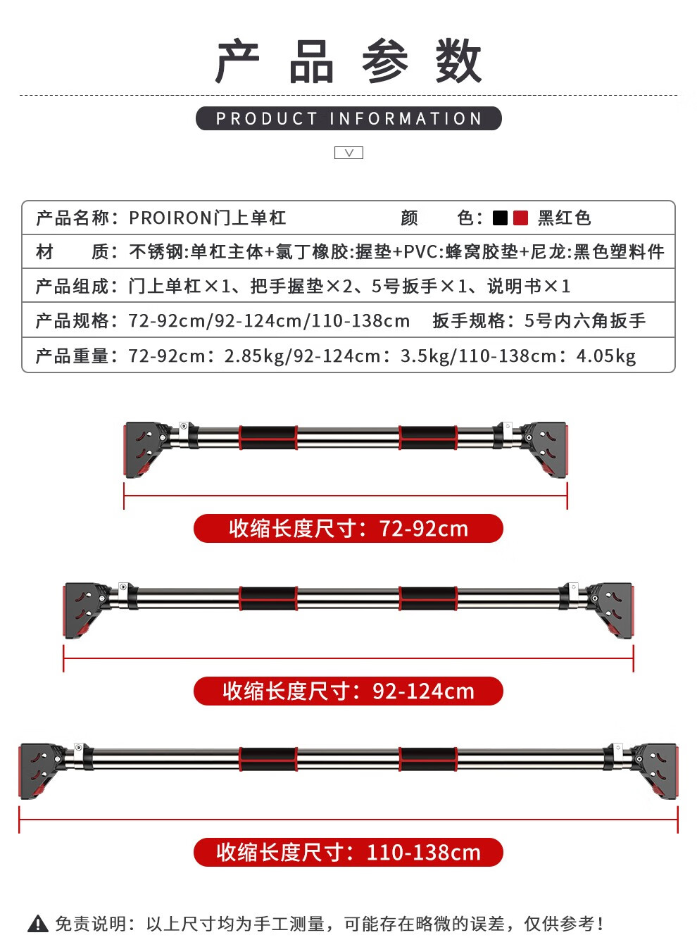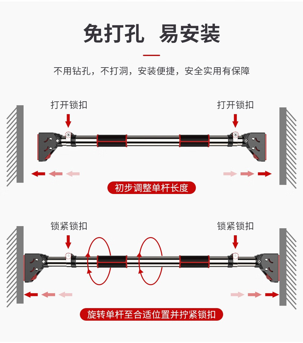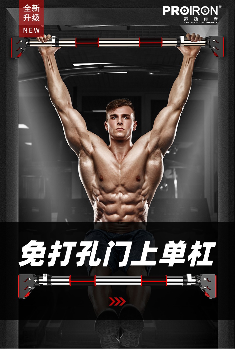 PROIRON door-mounted horizontal bar home indoor pull-up wall punch-free adult and children's sports and fitness patented design 92-124cm installation distance
