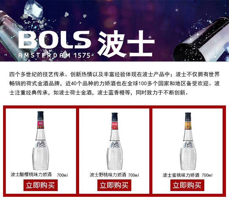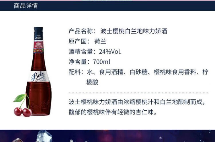 BOLS foreign wine imported from the Netherlands cherry brandy flavored wine 700ml DIY bartending base wine prepared wine baking wine