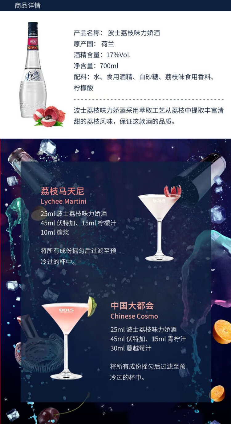BOLS foreign wine imported from the Netherlands, lychee flavored liqueur 700ml DIY bartending, base wine, prepared wine, baking wine