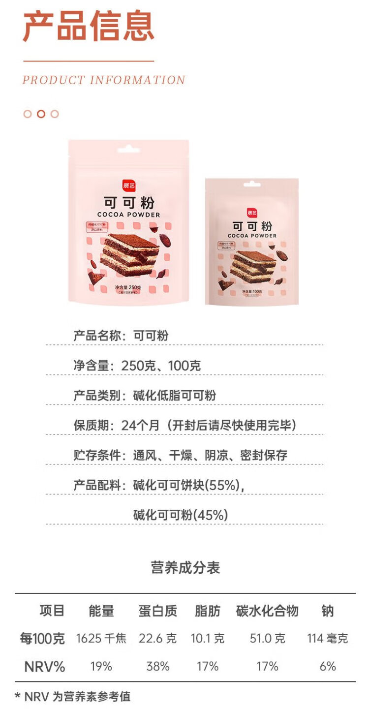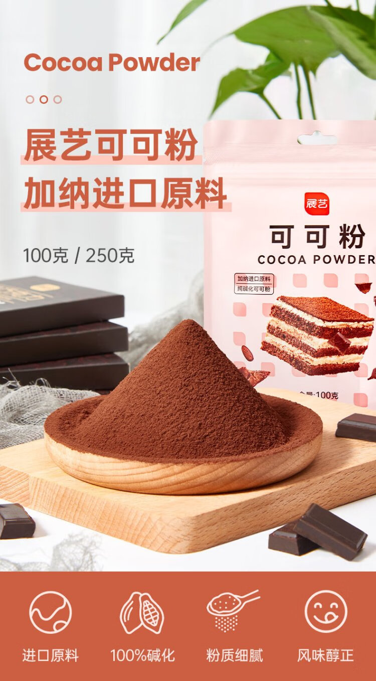 Zhanyi Baking Ingredients Pure Cocoa Powder Chocolate Powder Imported Material Alkalized Drinking Cake Toffee 250g