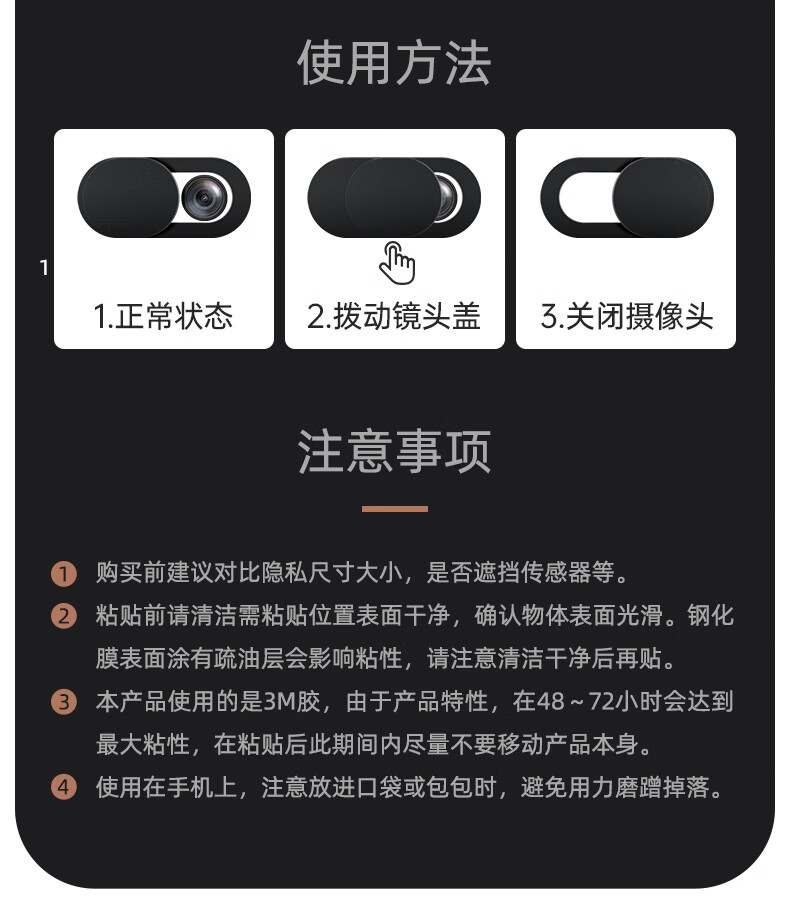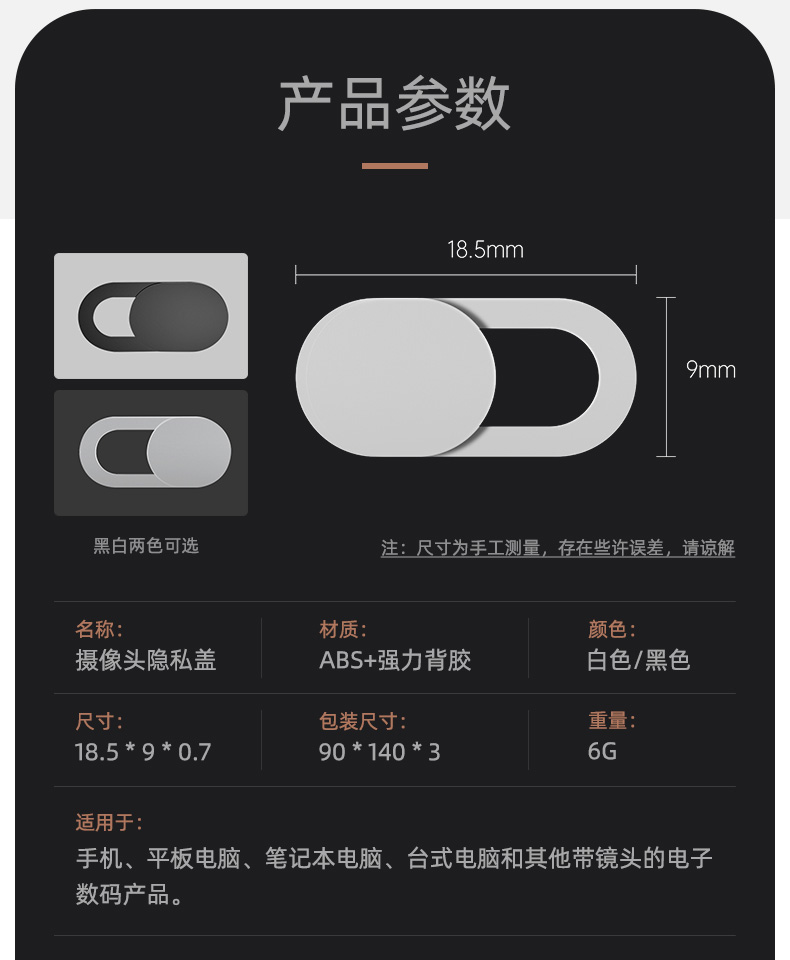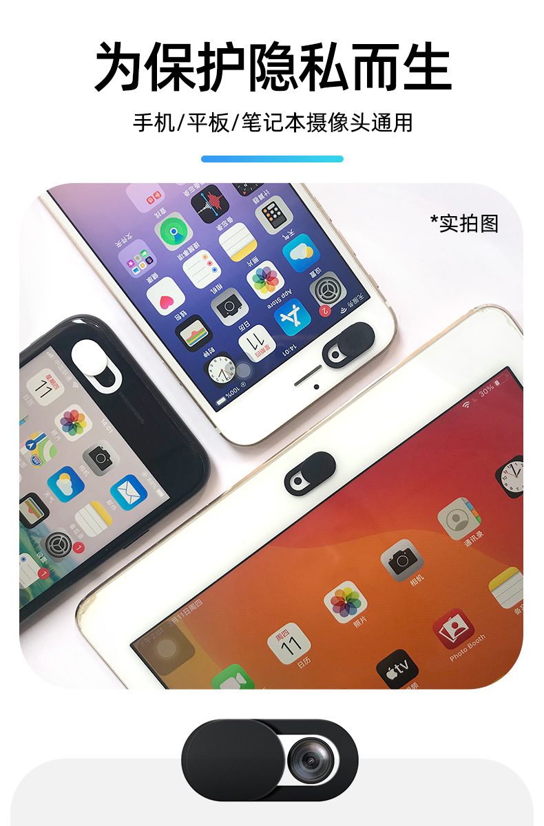 Fanrui camera shielding sticker is suitable for notebooks, mobile phones and tablets live broadcast front lens cover to prevent hackers, peeping, monitoring, privacy protection, Mac conference confidentiality Book lens shielding cover, black one