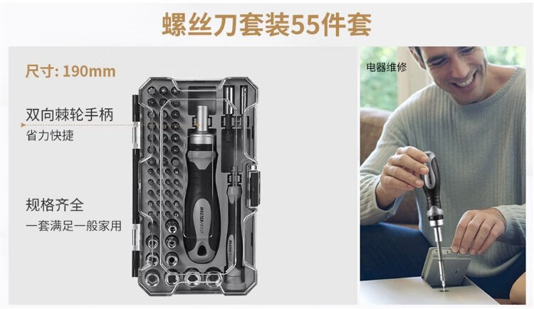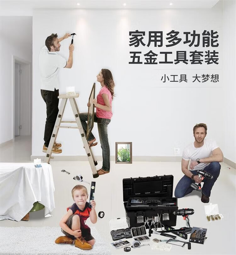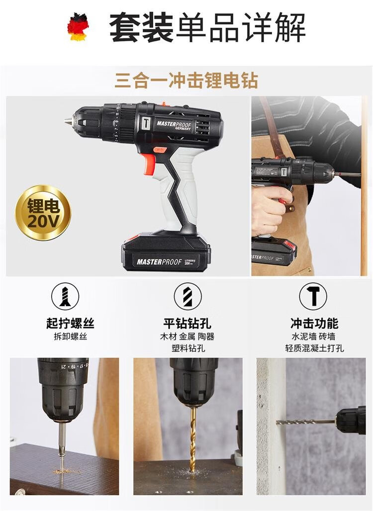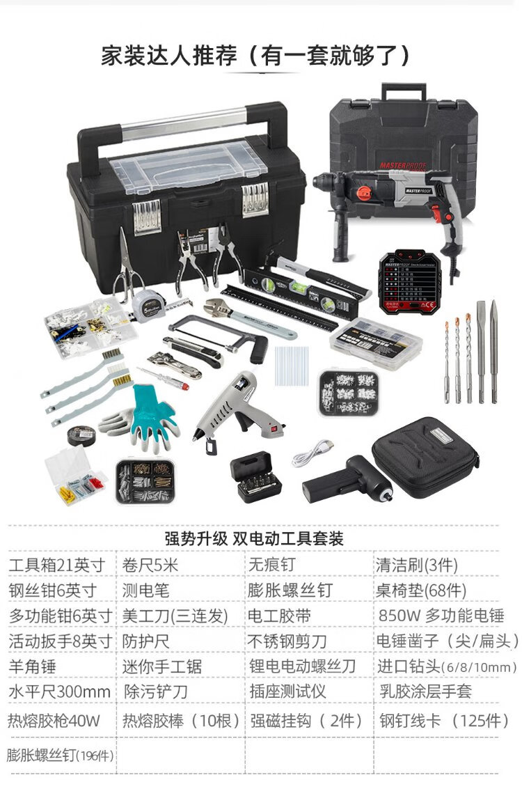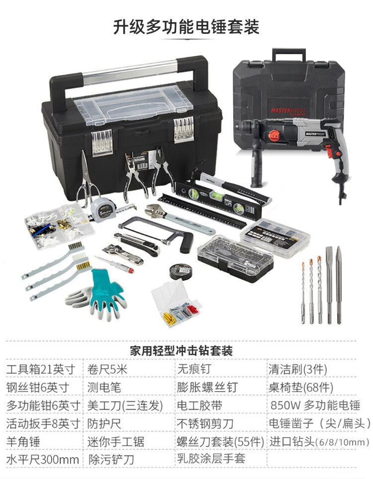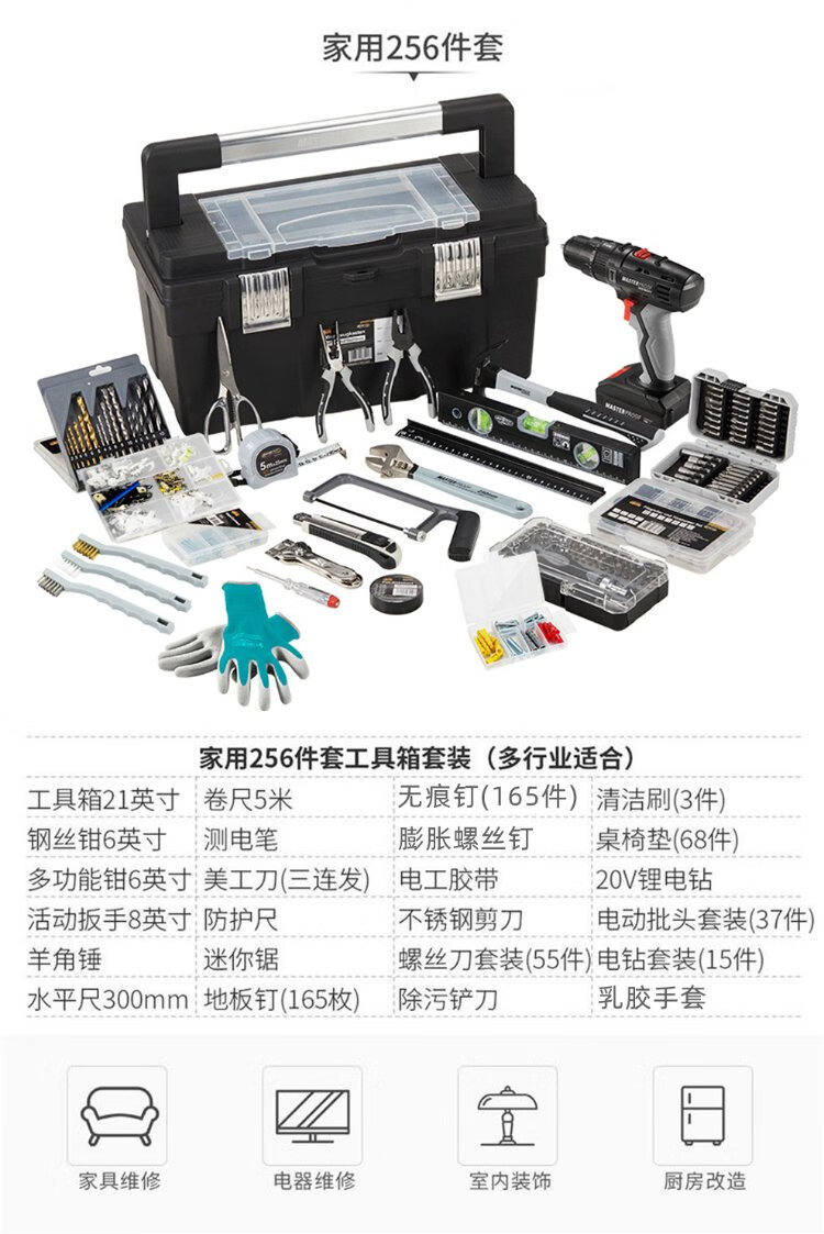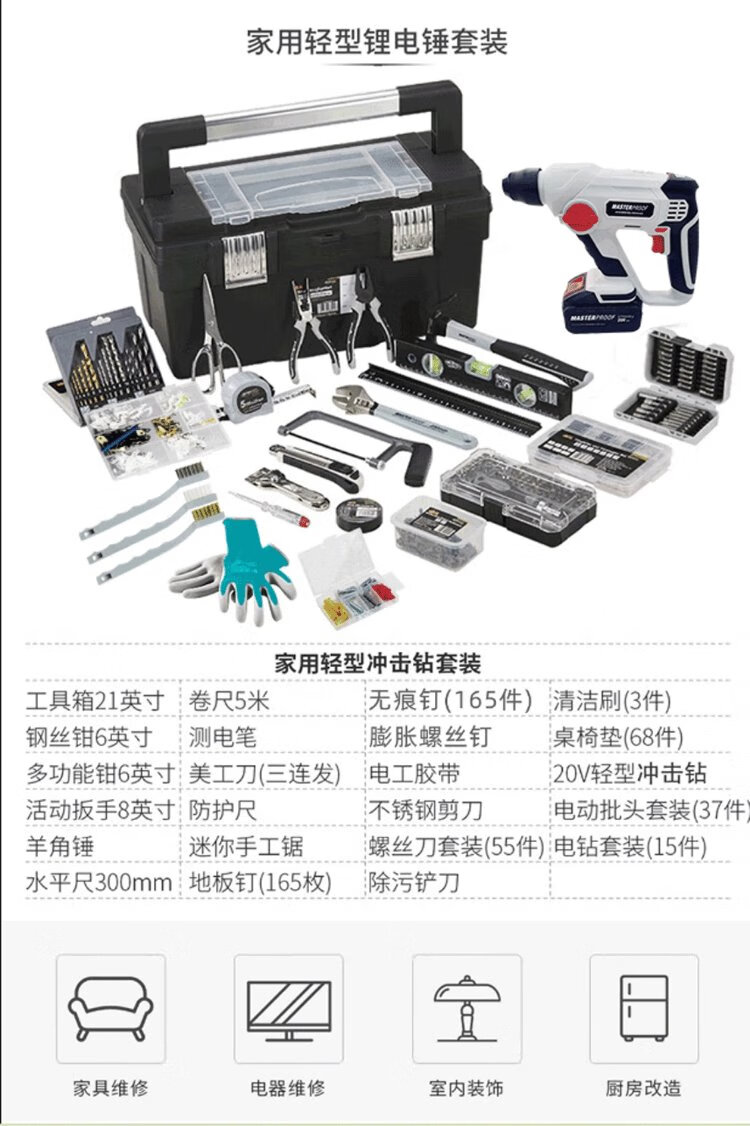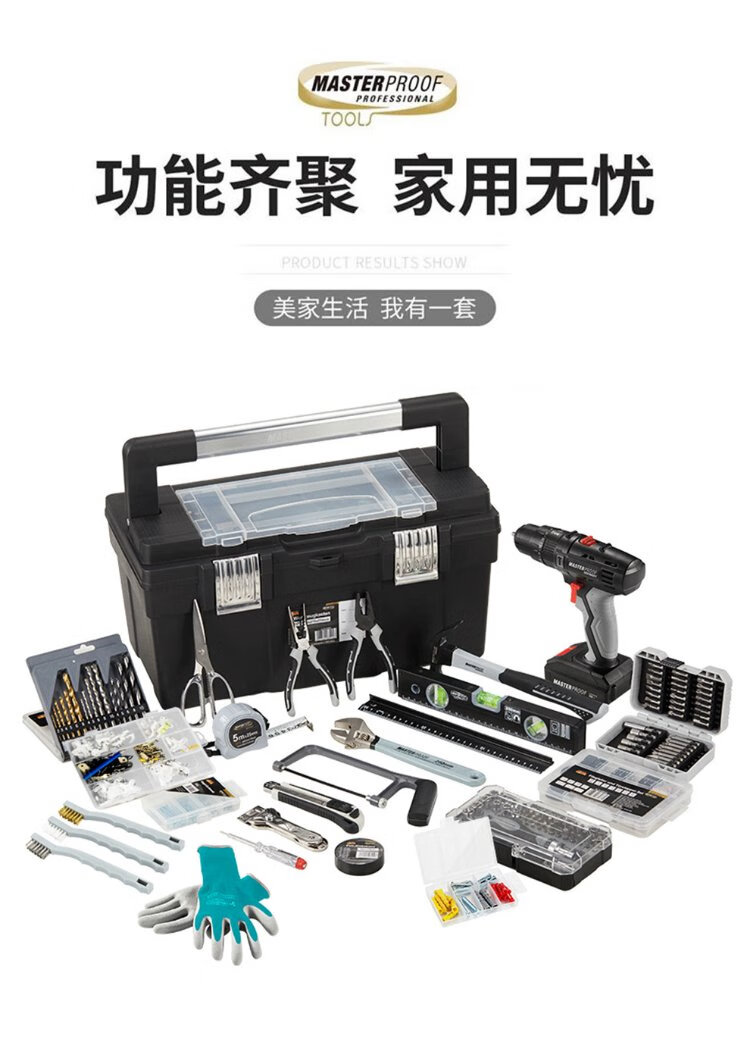 MASTERPROOF complete set of household tool boxes, household tool box sets, multi-function electric drill tool boxes, household tool boxes A set (21V electric drill) suitable for many industries