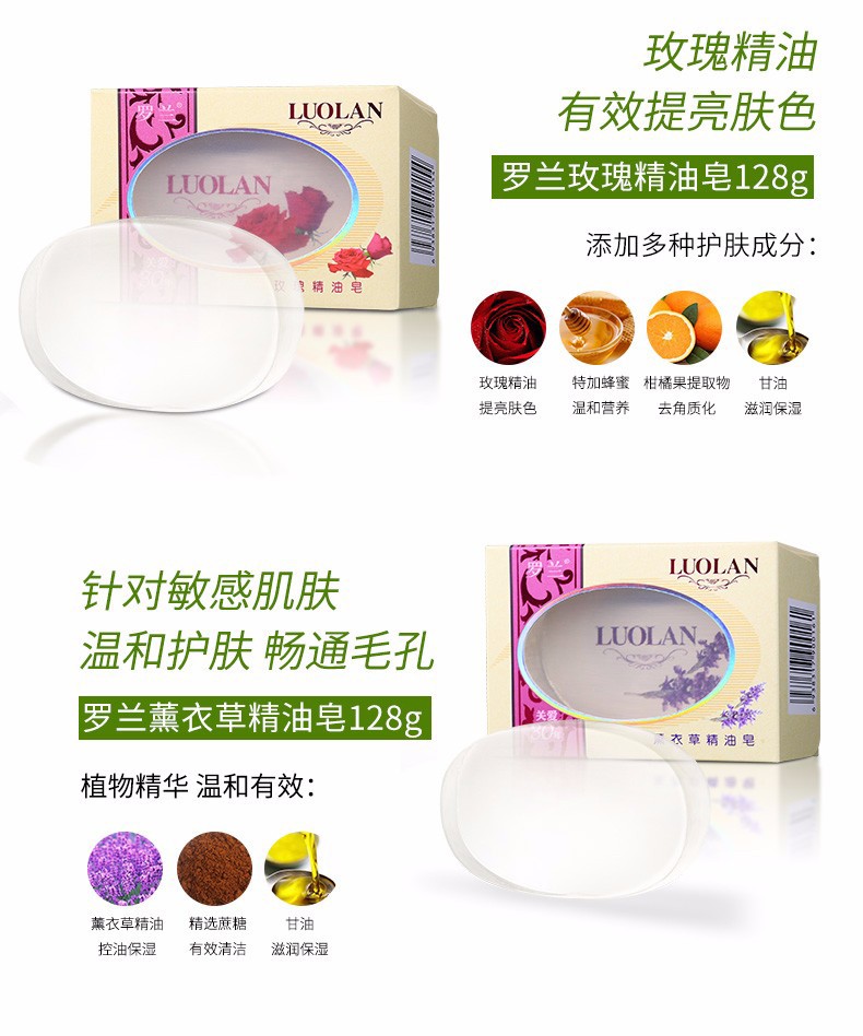 Roland Rose Transparent Essential Oil Soap Long-lasting Fragrance Deep Decontamination Bath Facial Soap Easy-to-Rinse Universal Soap 128g Lavender Essential Oil Soap 128g*4 Box