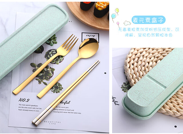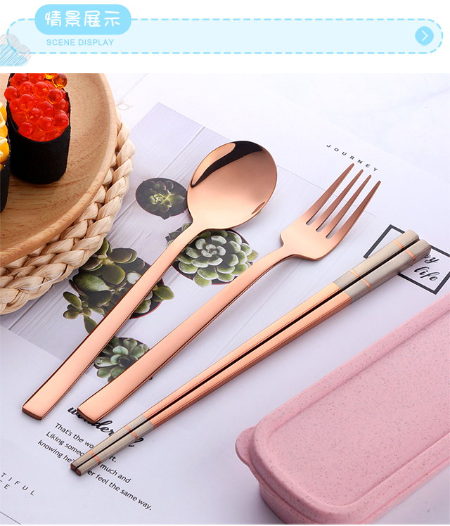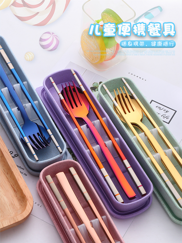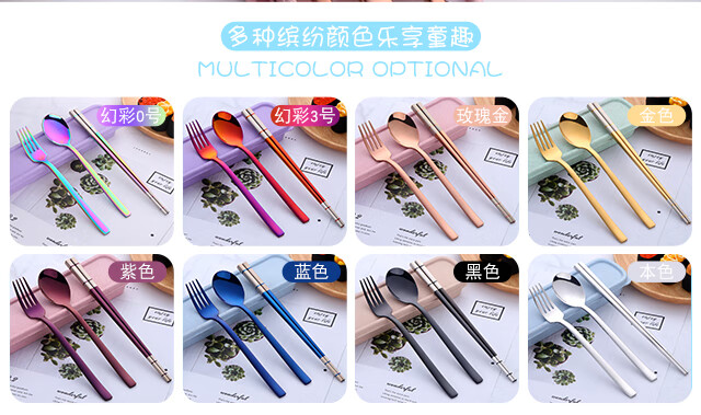 Buyer Star 304 Stainless Steel Chopstick Set Student White-Collar Portable Tableware Spoon Chopsticks Fork Portable Box Four-piece Set Symphony No. 0 (Purple Box)